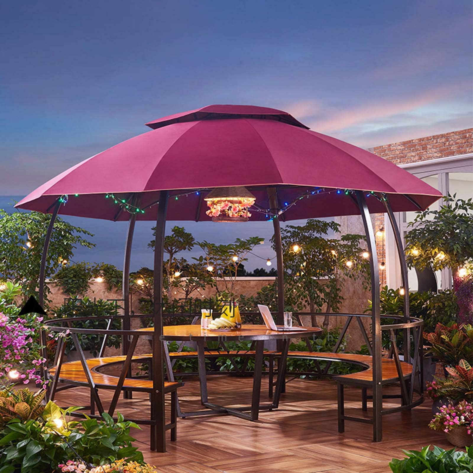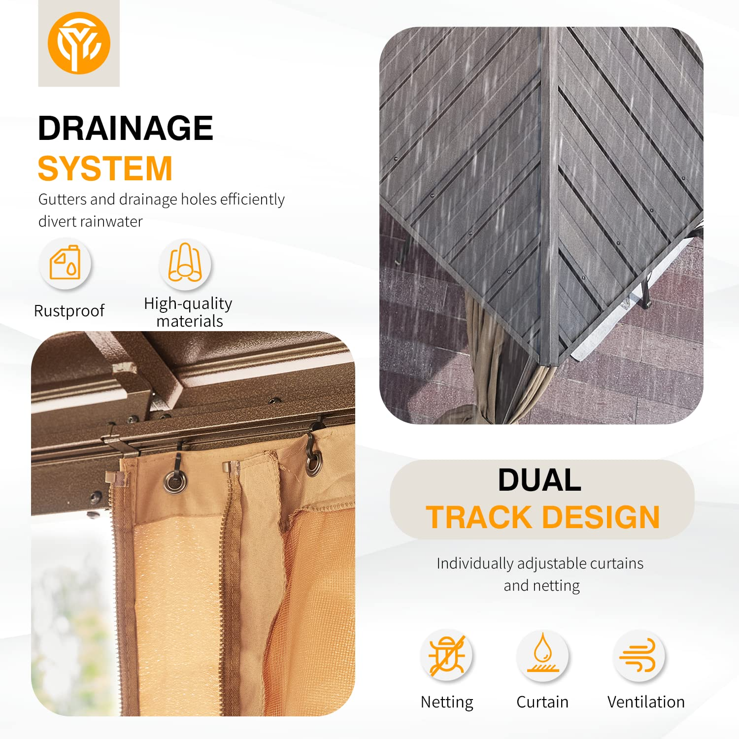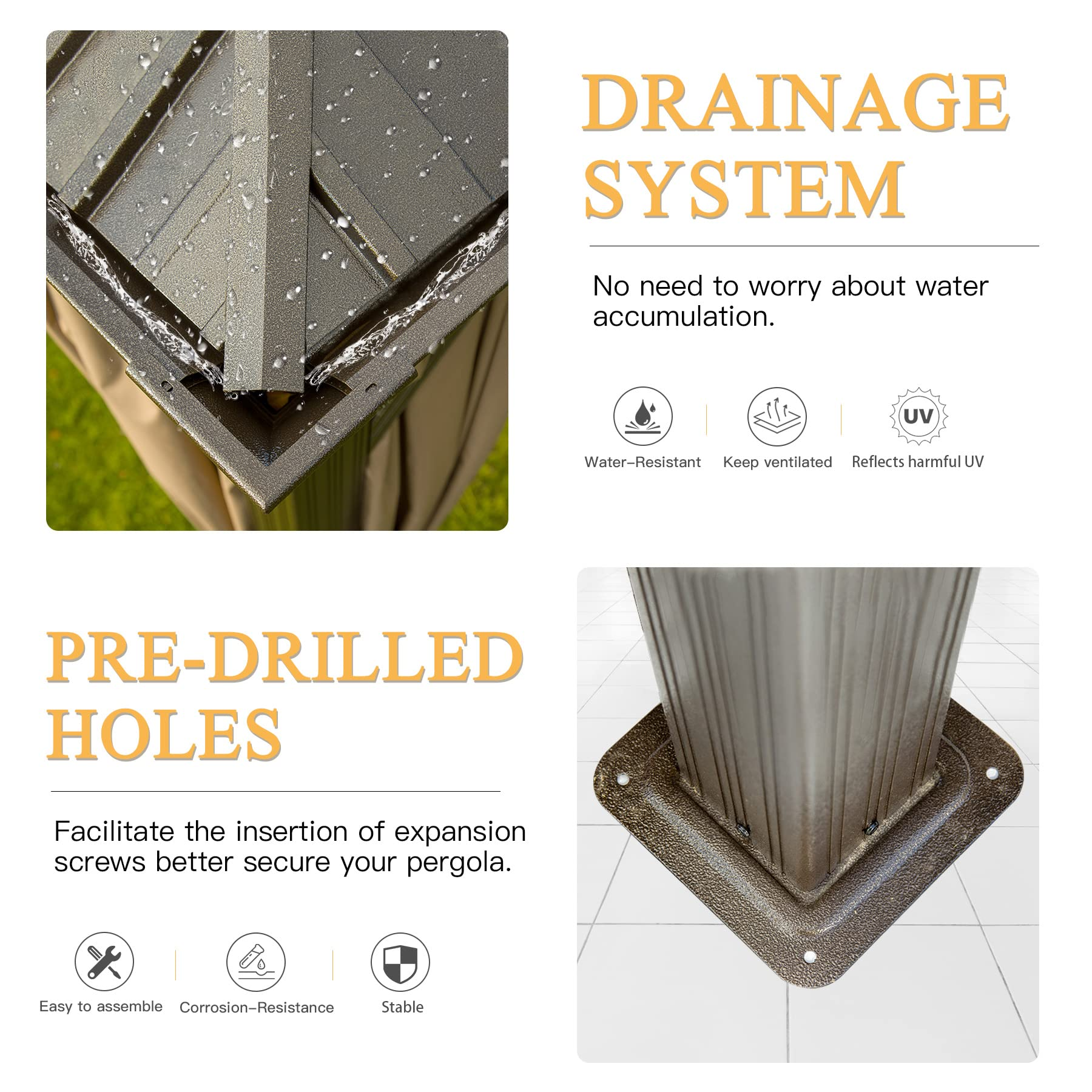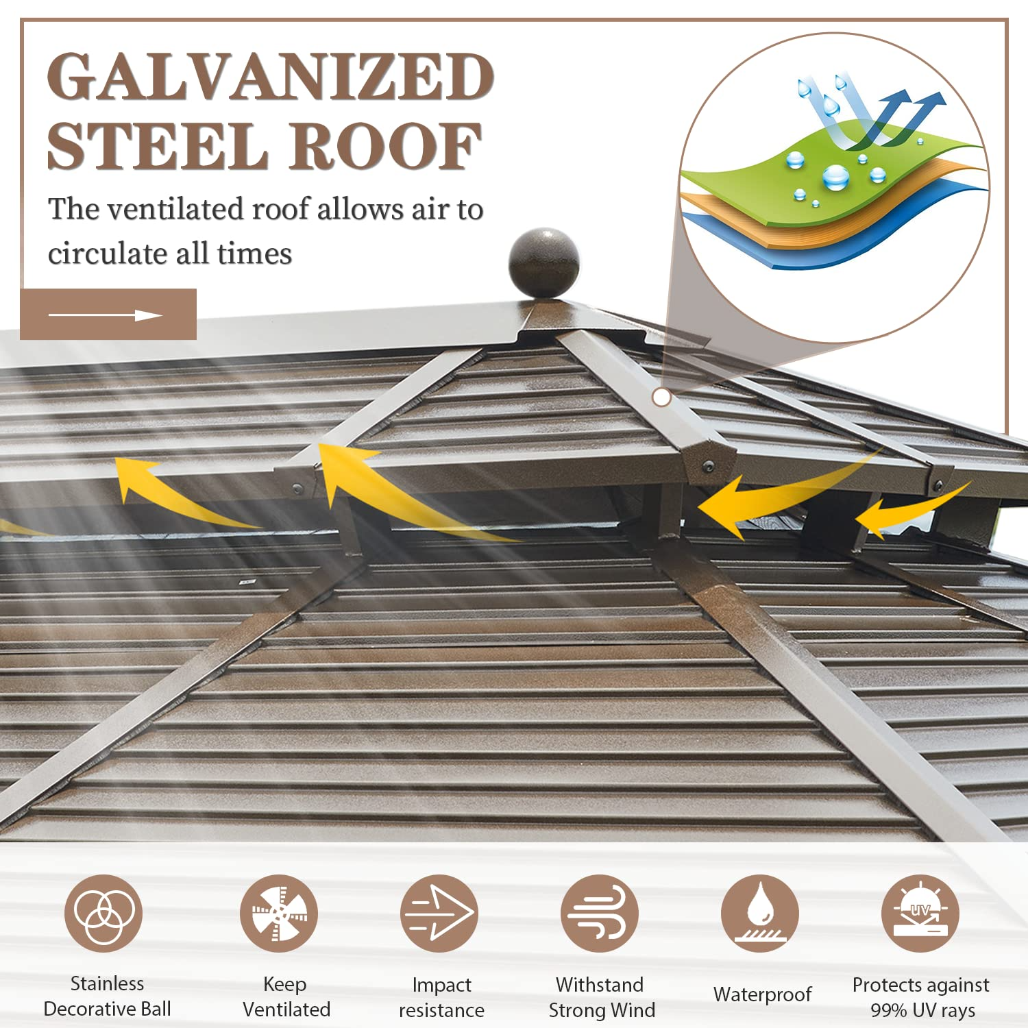 【Gazebo】10'x13' Hardtop Gazebo Galvanized Steel Outdoor Patio Gazebo Canopy Double Roof Pergolas