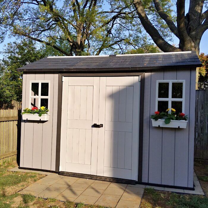 【Storage Shed】【BS】 8' x 6' Plastic Garden Shed with Foundation Kit - Ivory - 15 Years Warranty