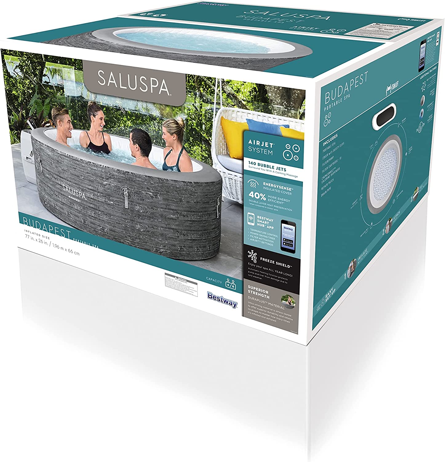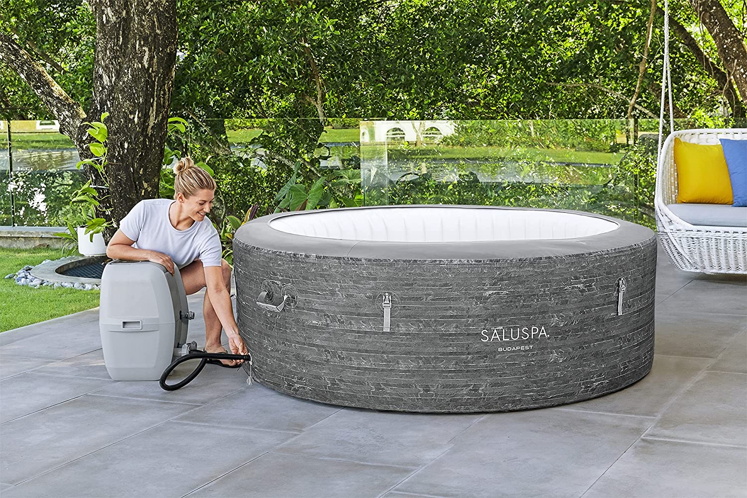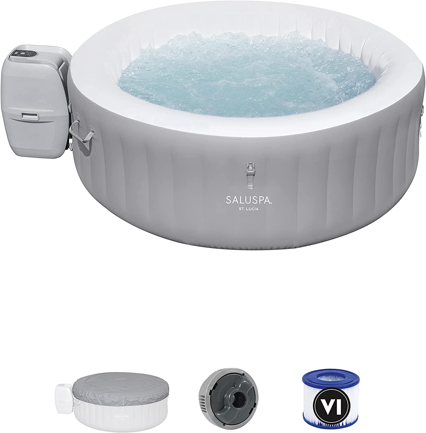 Intex 28409E PureSpa 6 Person Home Inflatable Portable Heated Round Hot Tub Spa 85-inch x 28-inch with 170 Bubble Jets and Built in Heat Pump, Blue
