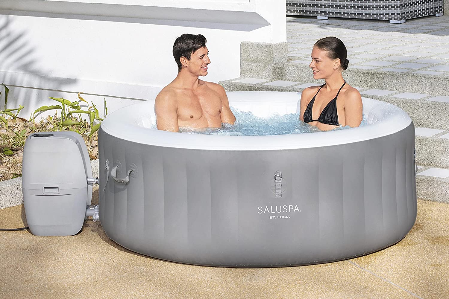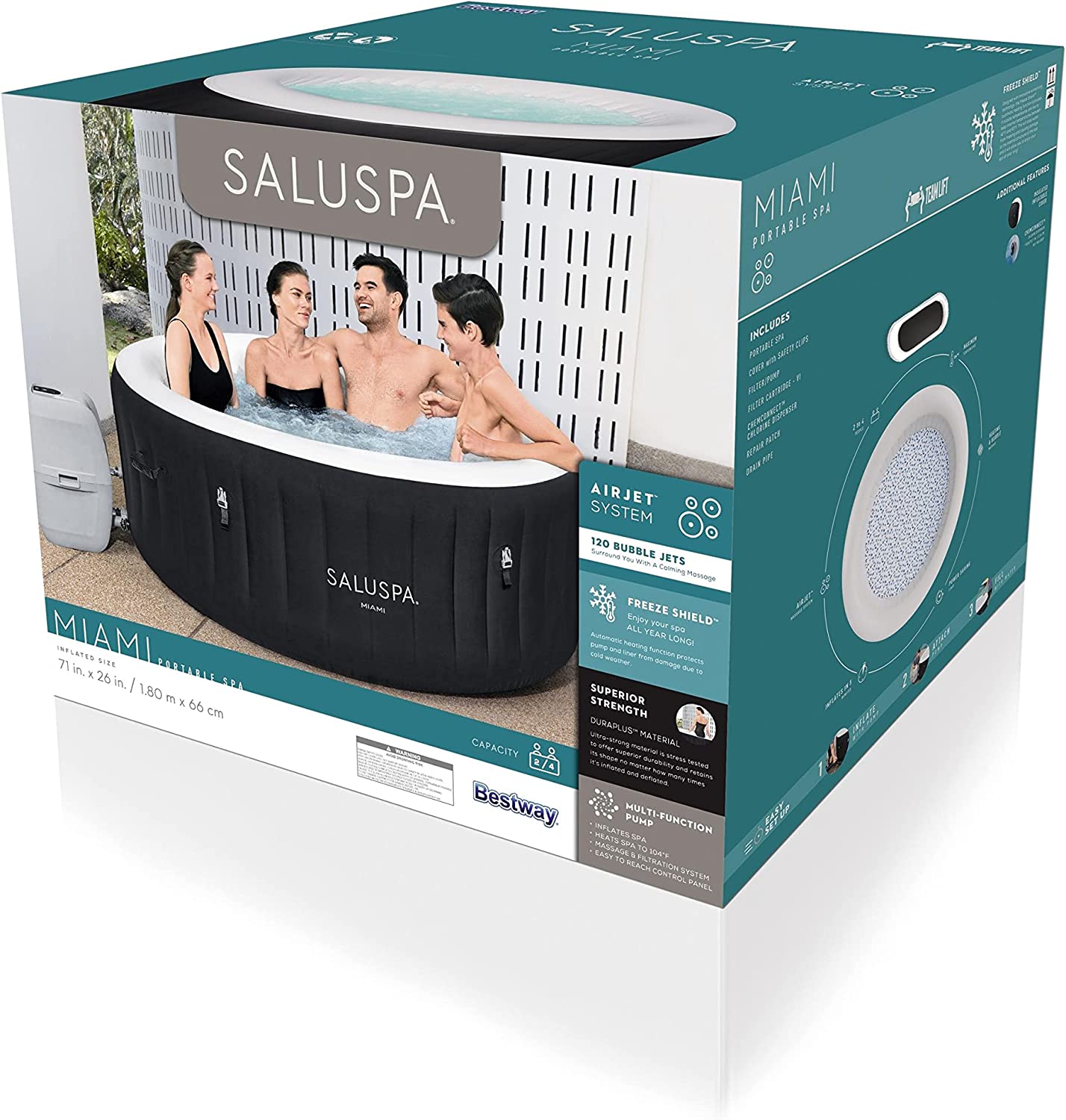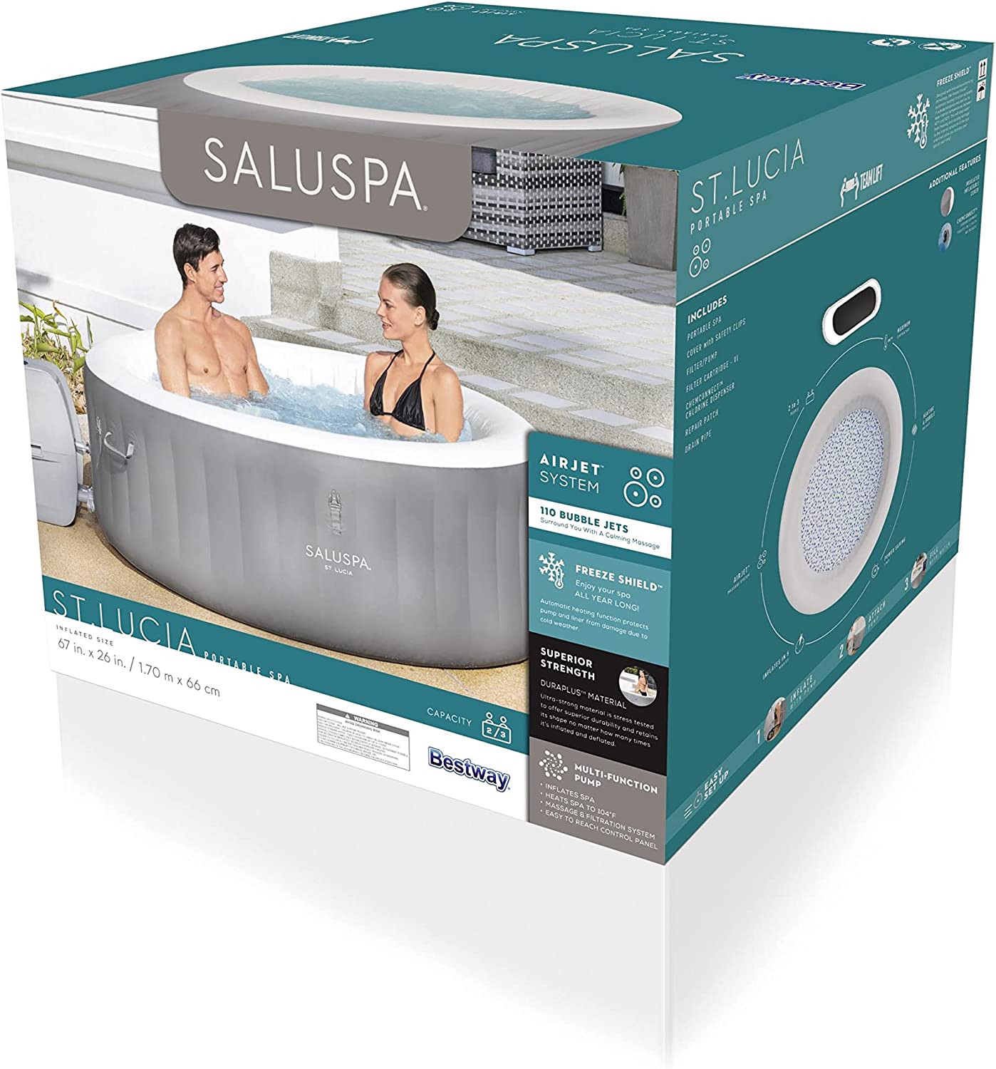 Intex 28409E PureSpa 6 Person Home Inflatable Portable Heated Round Hot Tub Spa 85-inch x 28-inch with 170 Bubble Jets and Built in Heat Pump, Blue
