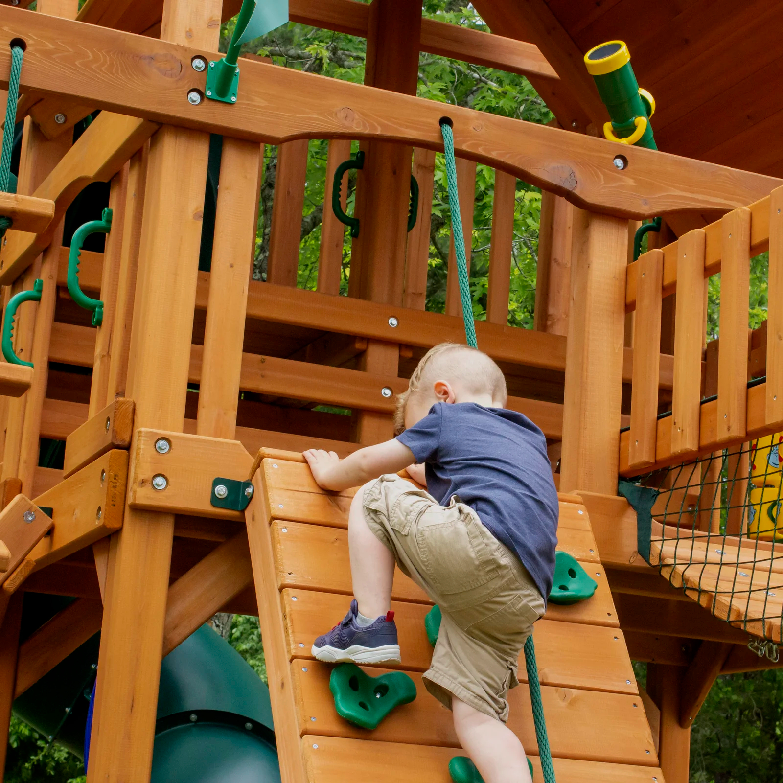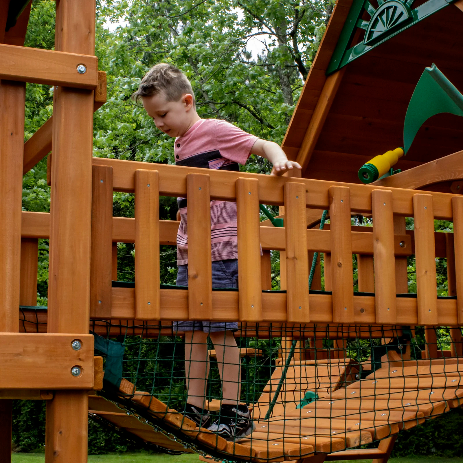 【Sports & Outdoor】Woodridge Elite All Cedar Wood Swing Set, Upper and Lower Deck, Sandbox, Vented Tunnel