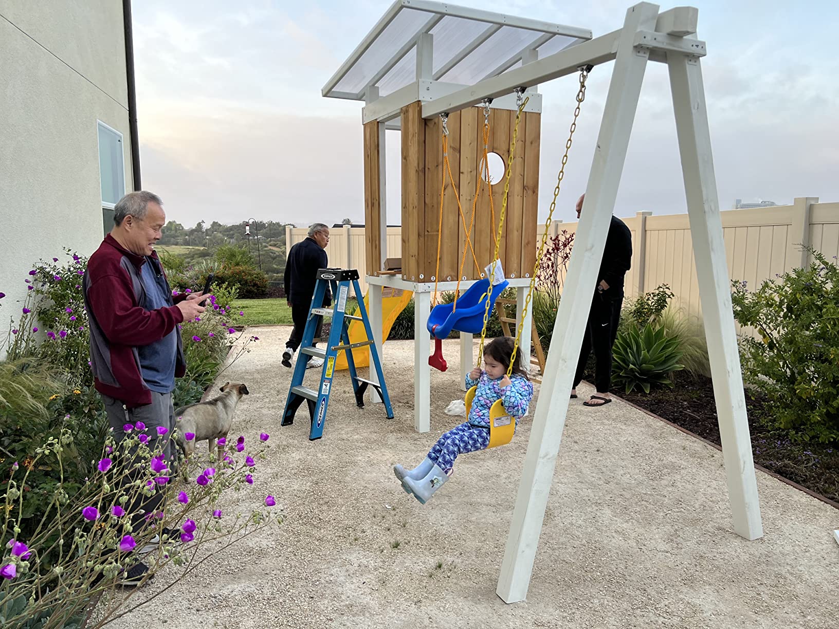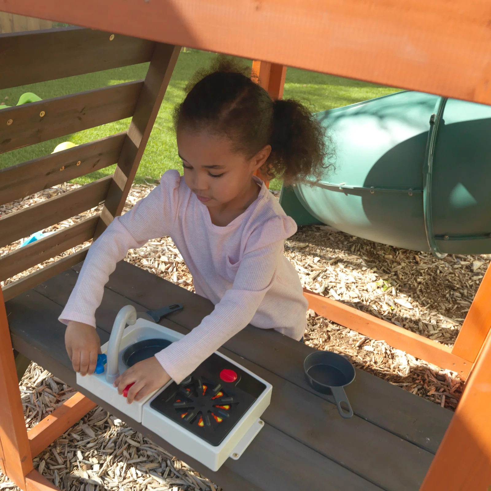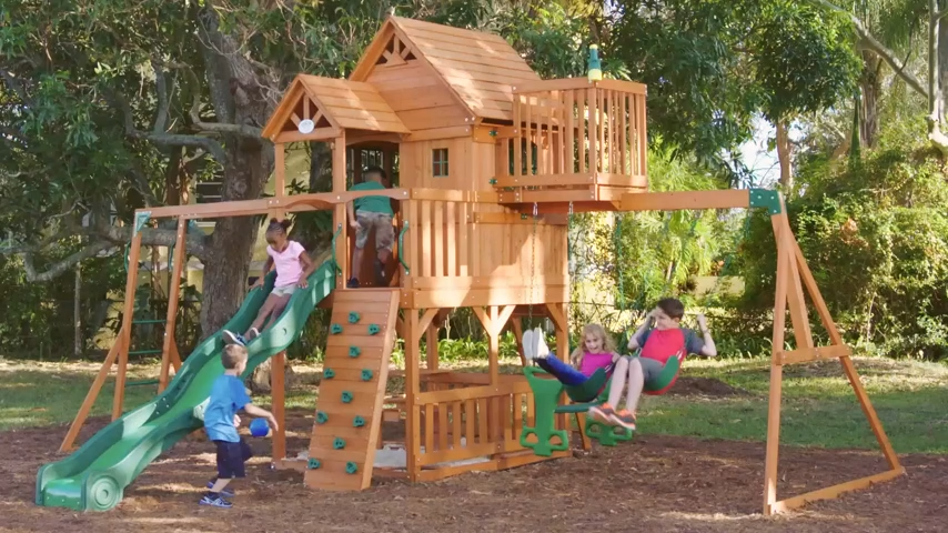 【Sports & Outdoor】Skyfort II Playground Cedar Wood Swing Set with Playhouse Fort, Sandbox, Picnic Table, Slide