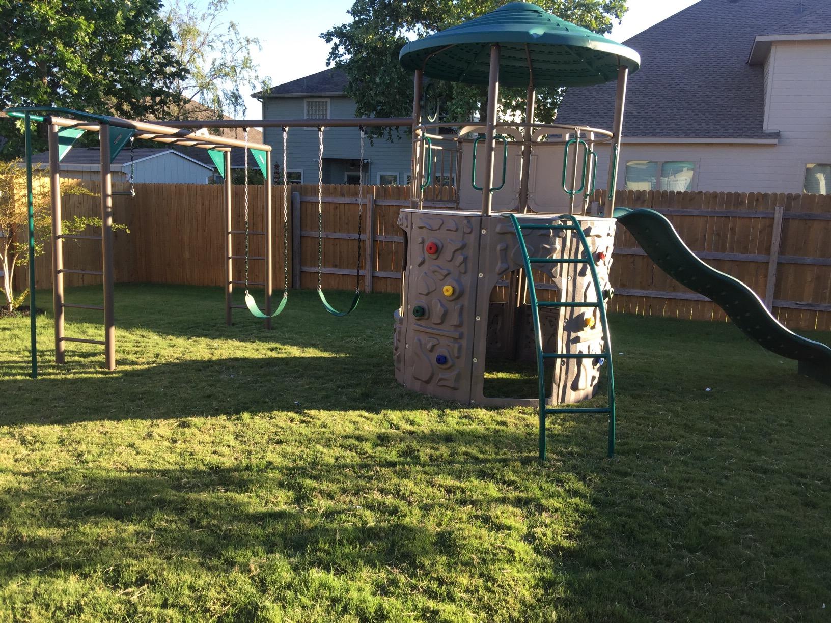 【Sports & Outdoor】Modern Outdoor Backyard Swing Set Children's Rock Climbing Wood Playground Playset 2 Belt Swings