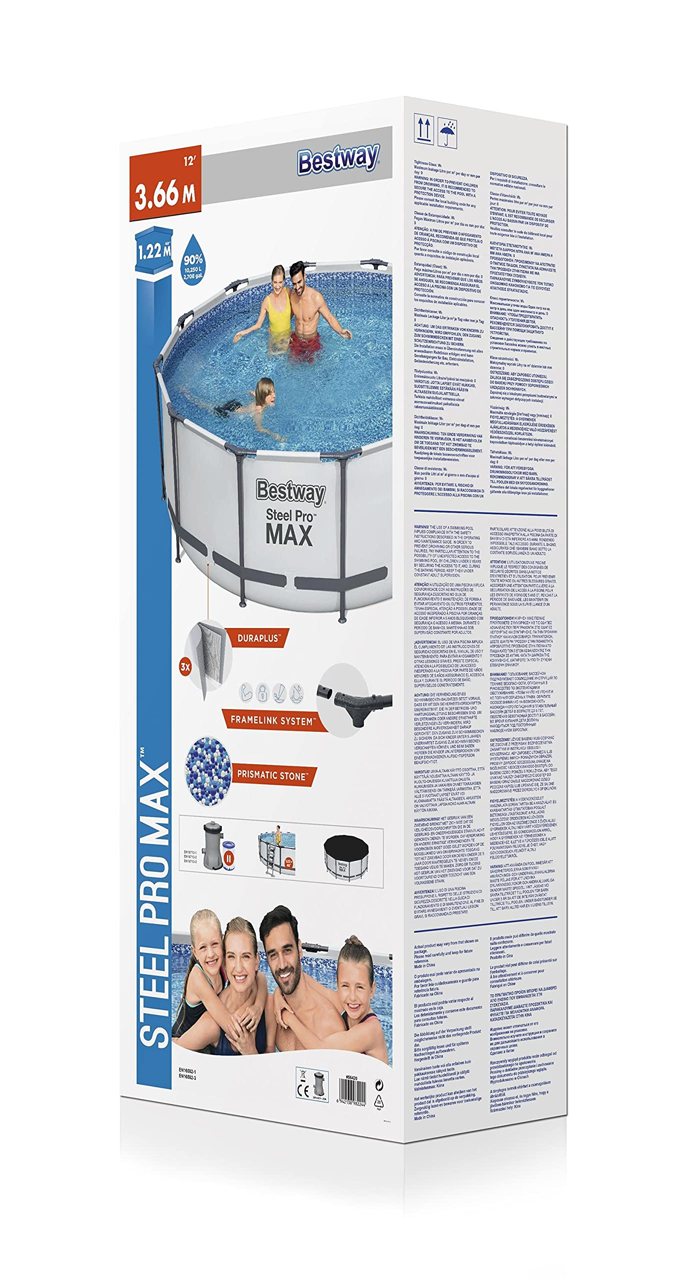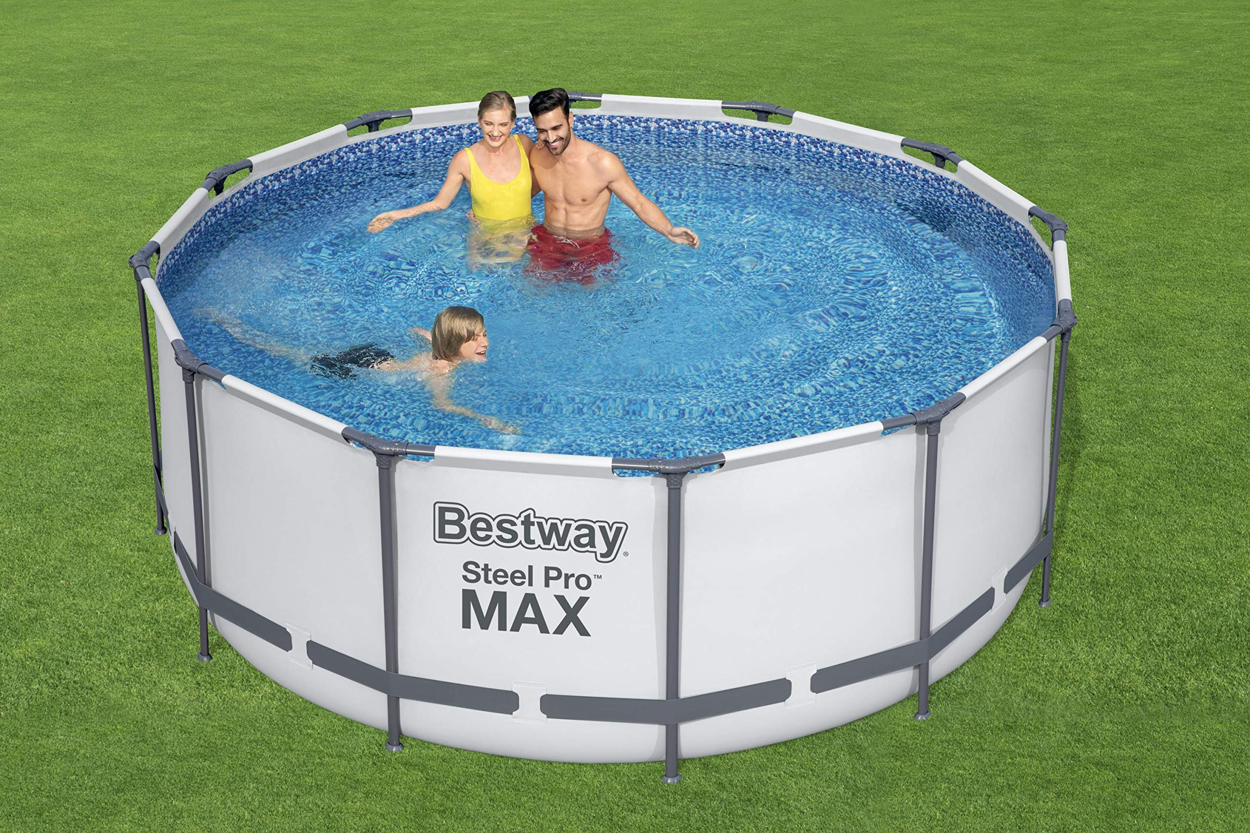 【Sports&Outdoors】Steel Pro Max Round Frame Swimming Pool with Filter Pump, Grey, 12 ft
