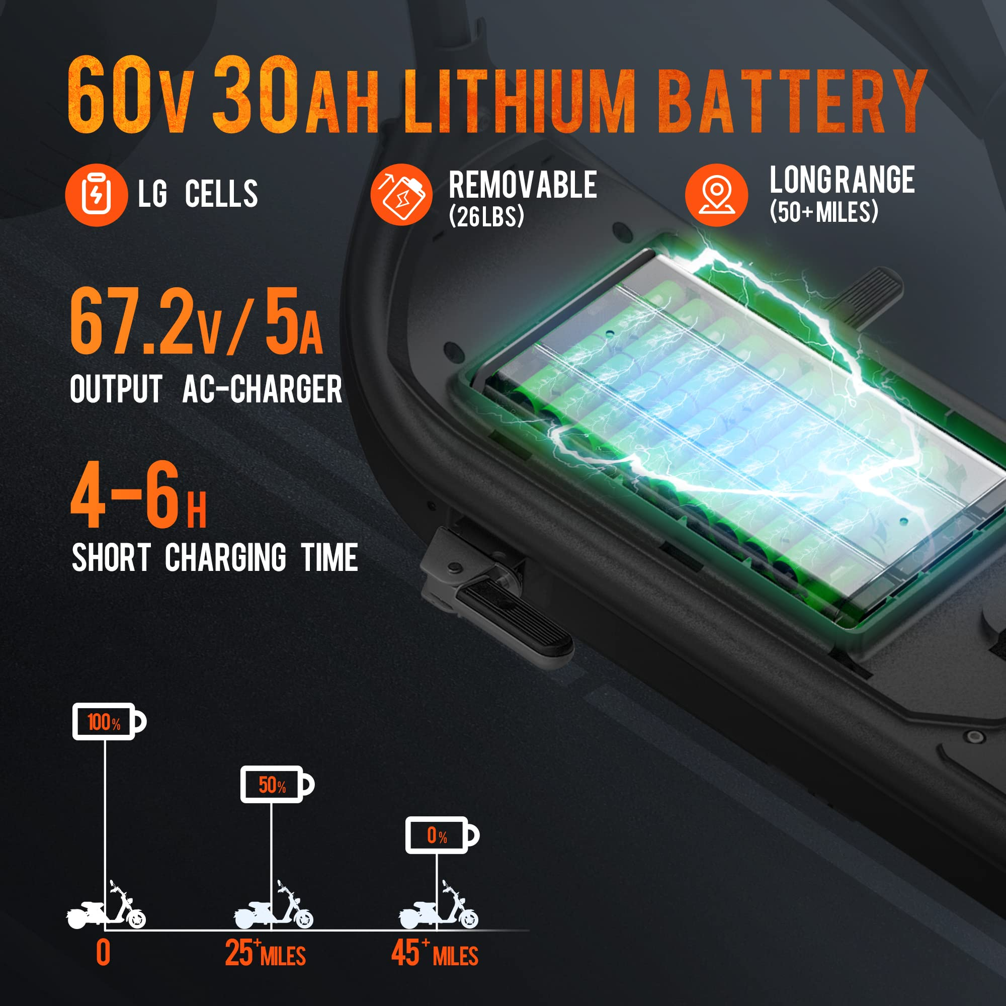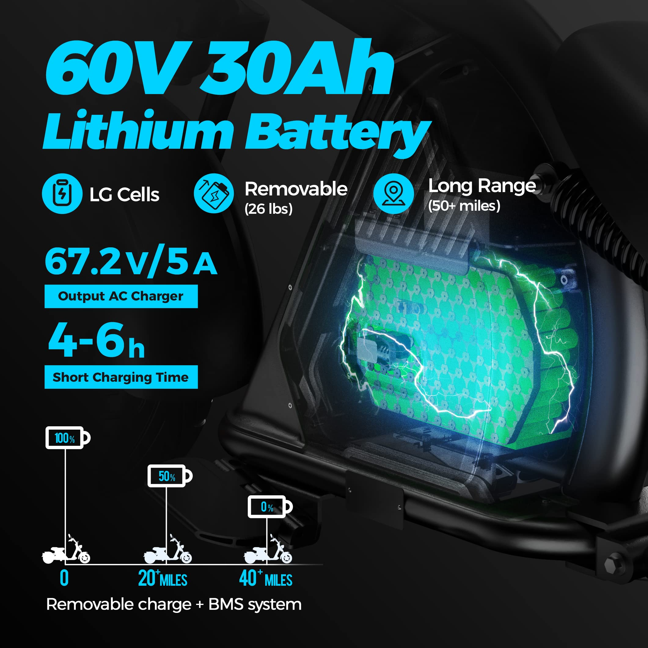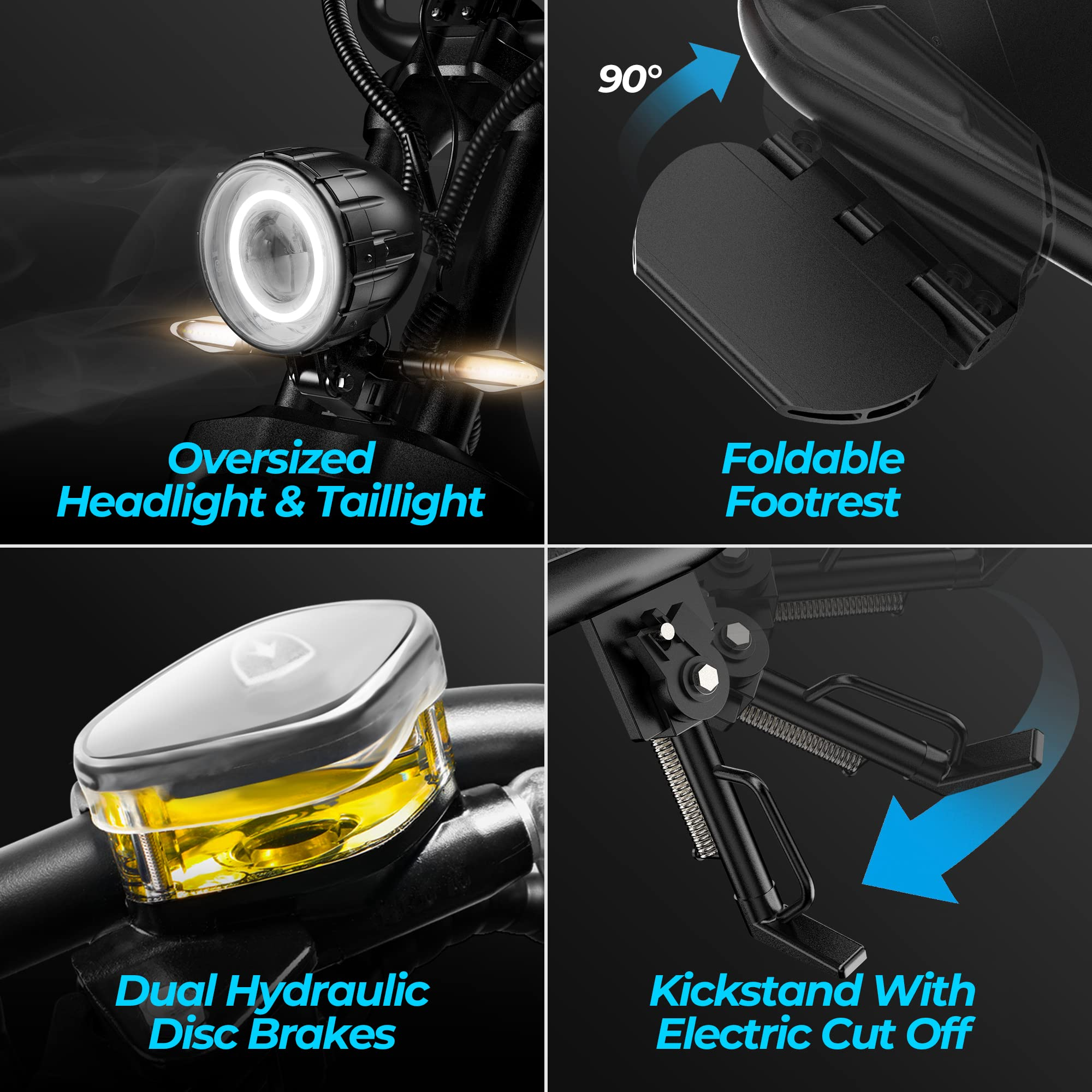【Sports&Outdoors】eAhora M1P 37Mph 2000W Electric Motorcycle for Adults, 60V 30ah Lithium Battery Rear Motor