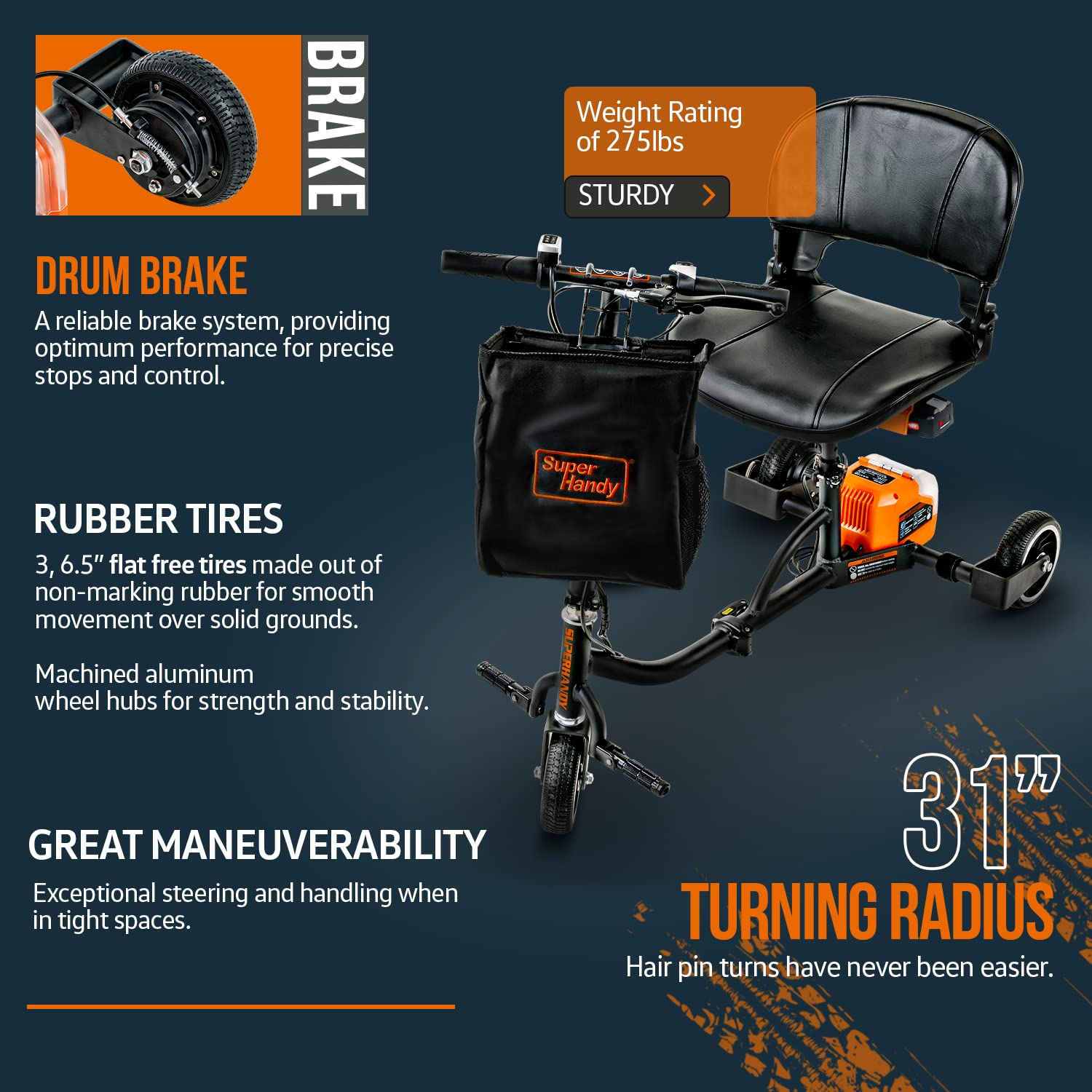 【Sports&Outdoors】SuperHandy 3 Wheel Folding Mobility Scooter - Electric Powered, Lightest Available, Airline Friendly