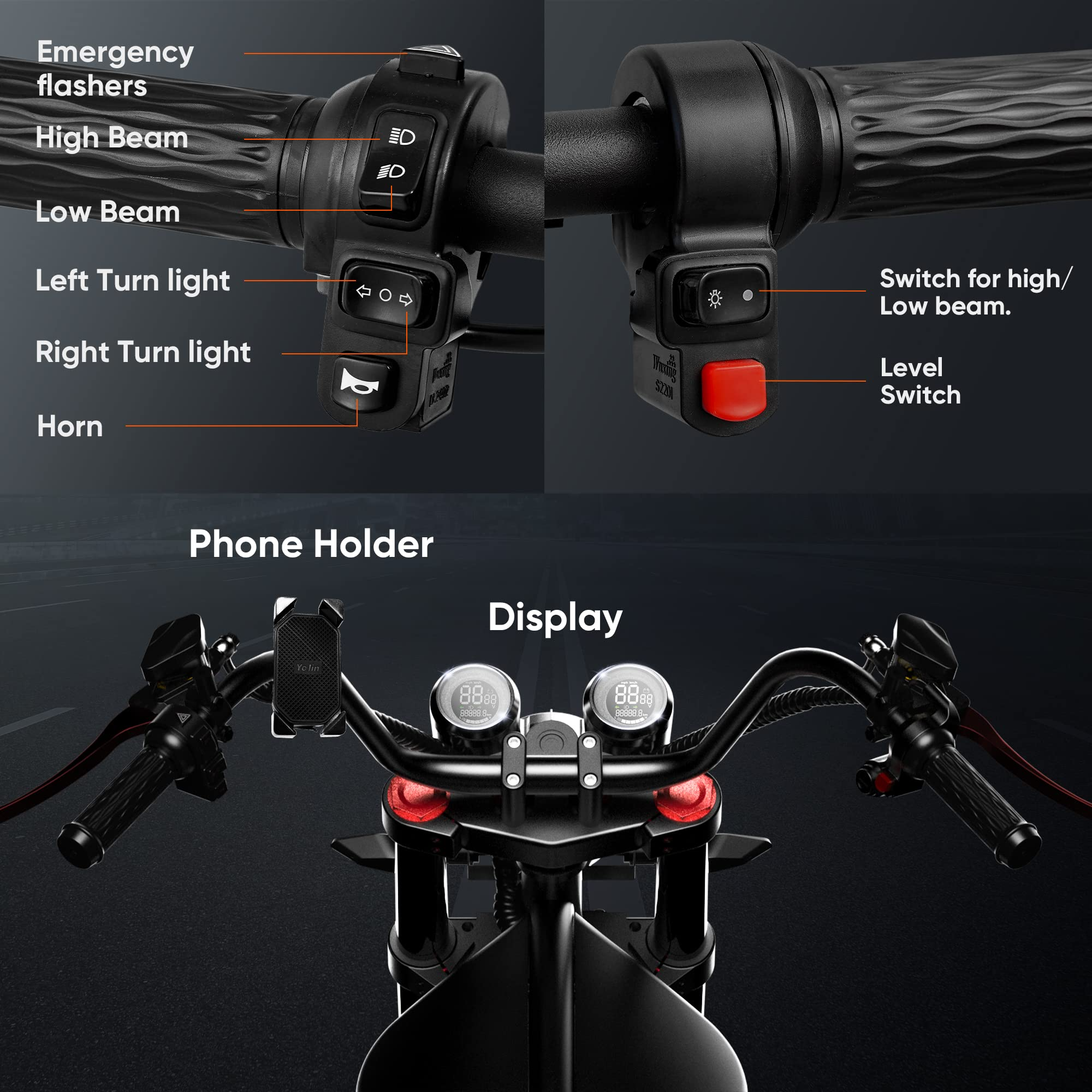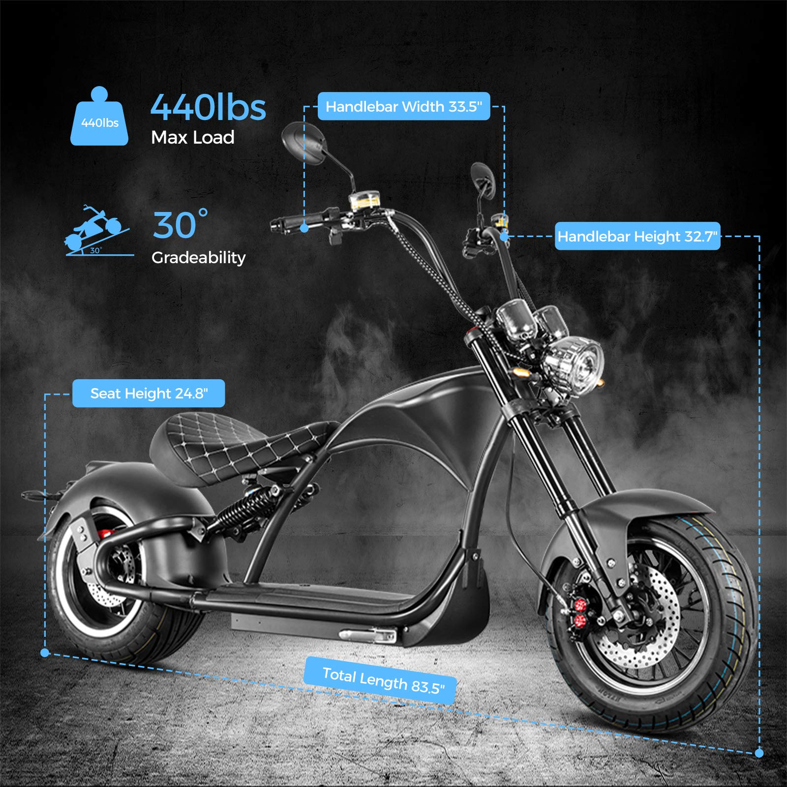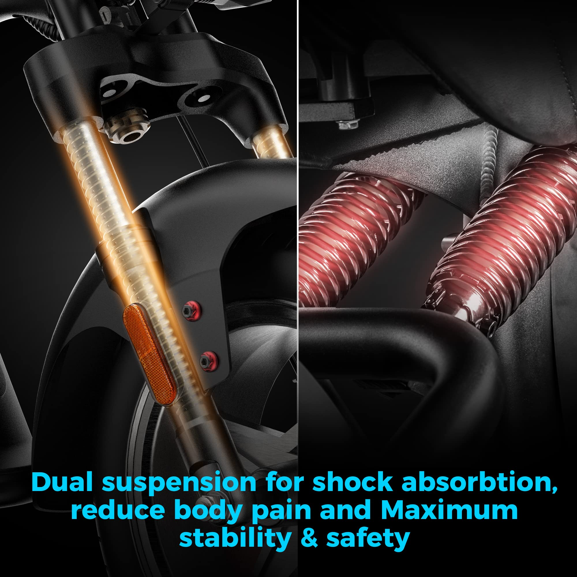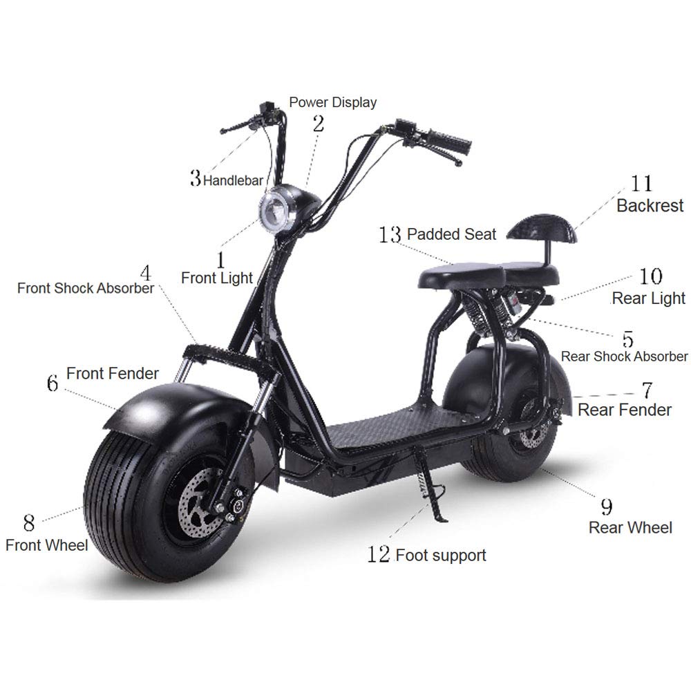 【Sports&Outdoors】Electric 60V 1000W Fat Tire Scooters, Adult Citycoco with 2 Seat Power Scooter