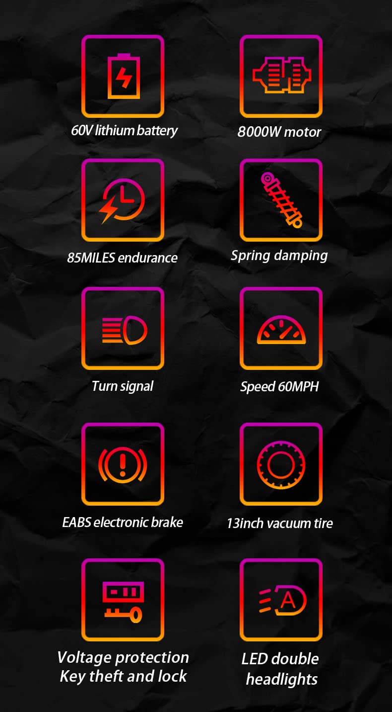 【Sports&Outdoors】Electric Scooter, Max Speed 60MPH, Total Power 8000W, 90 Mile Long Range Battery
