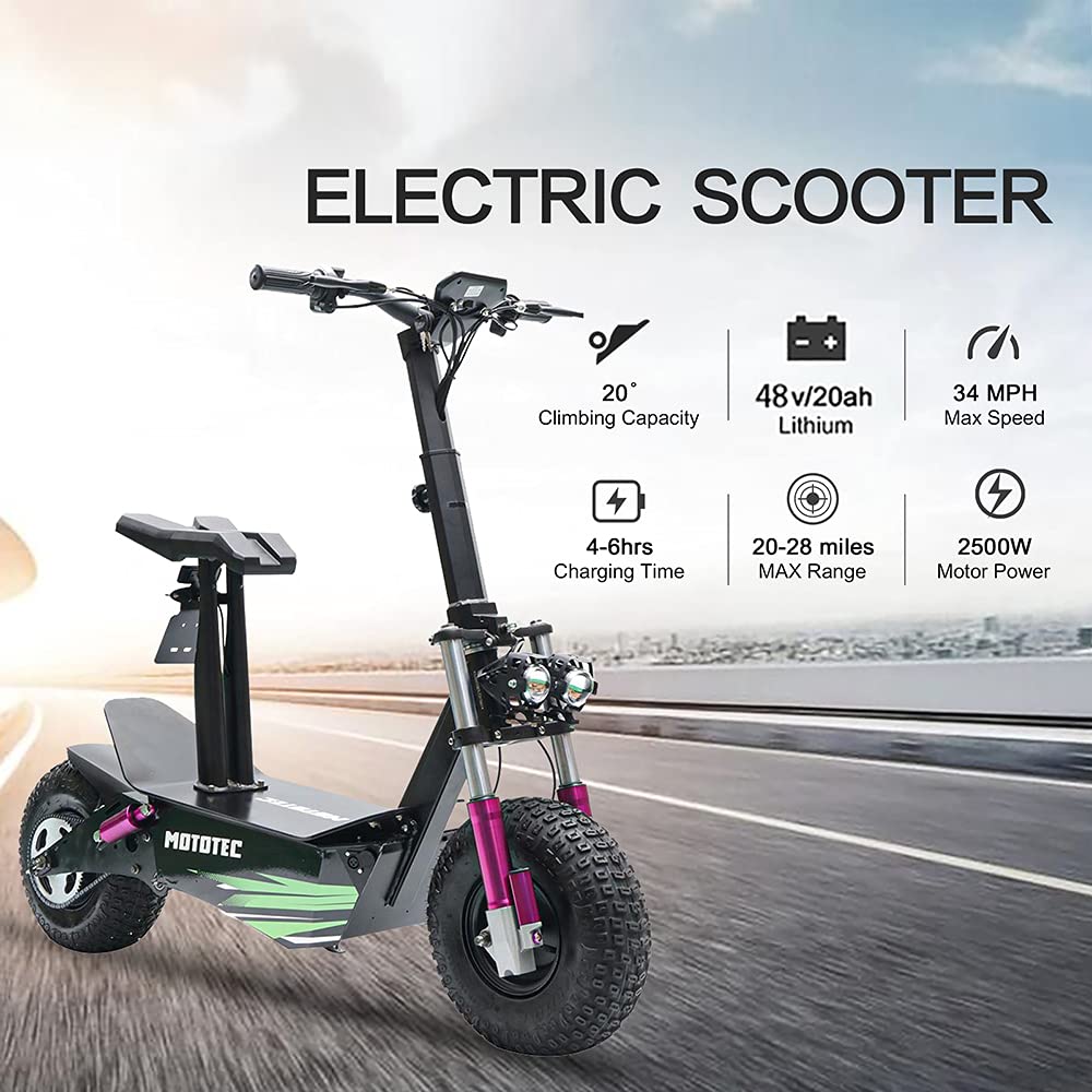 【Sports&Outdoors】Electric Fat Tire Scooter - Foldable 2500W Motor Adults Off Road Scooters - 48V20Ah Lithium Ion