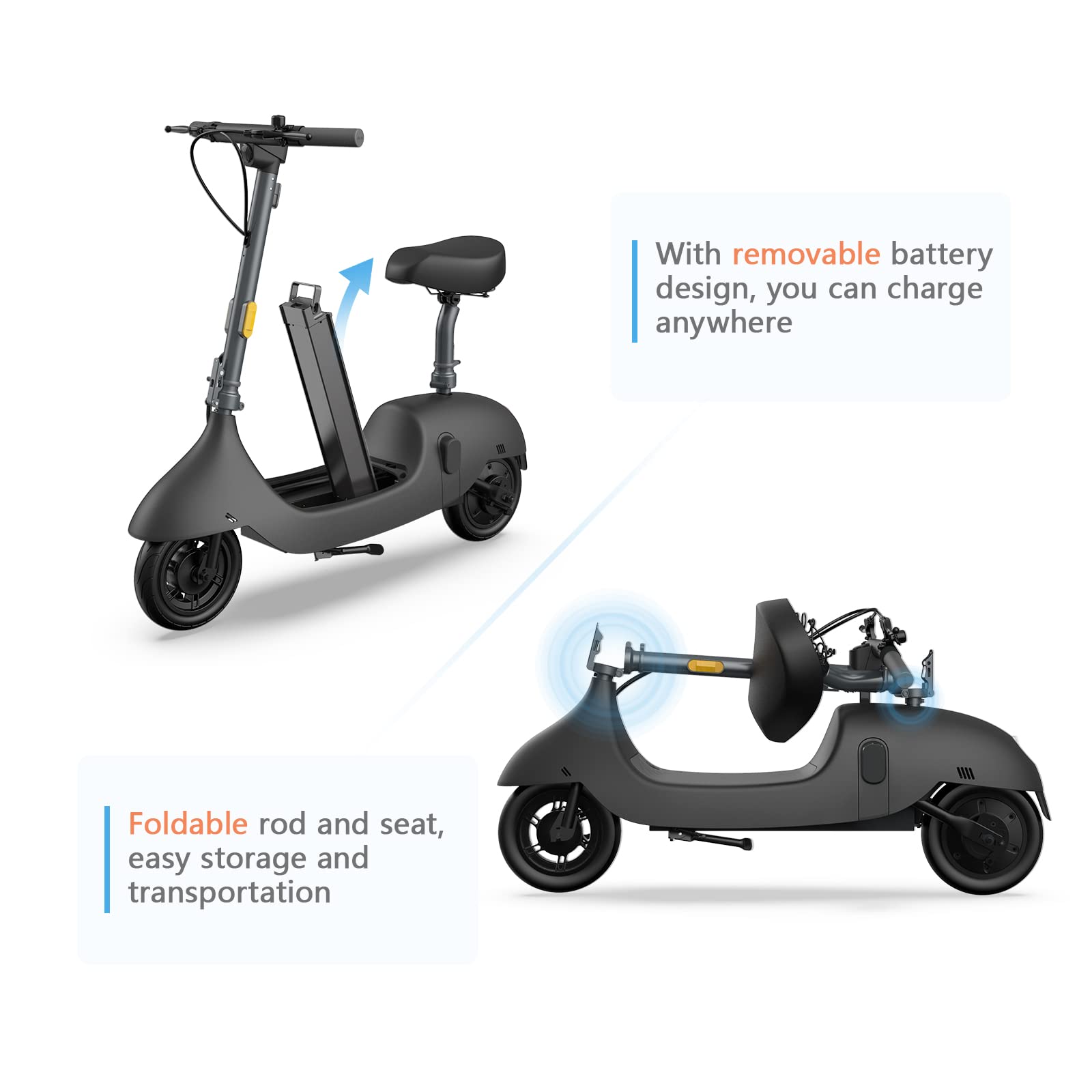 【Sports&Outdoors】Electric Scooter for Adults - Foldable Scooter with Seat & Carry Basket - 450W Brushless Motor 36V
