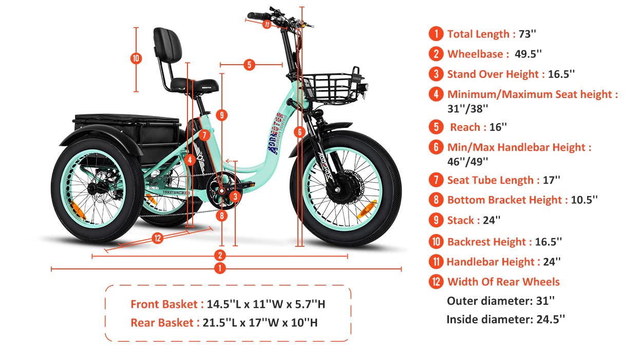 【Sports&Outdoors】Electric Fat Trike 750W Motor & 48V Lithium Rechargeable Battery - Etrike 24 Inch Fat Tire