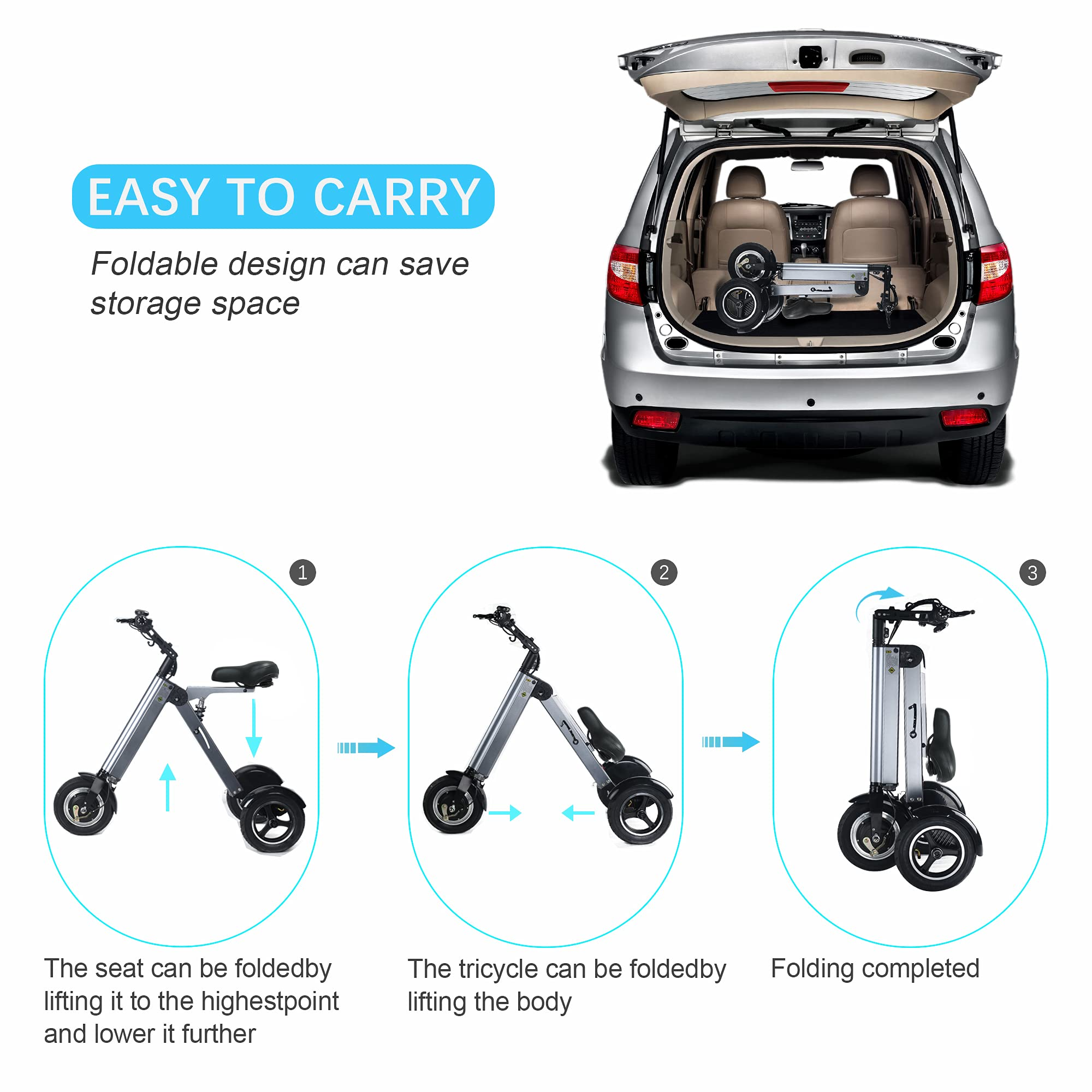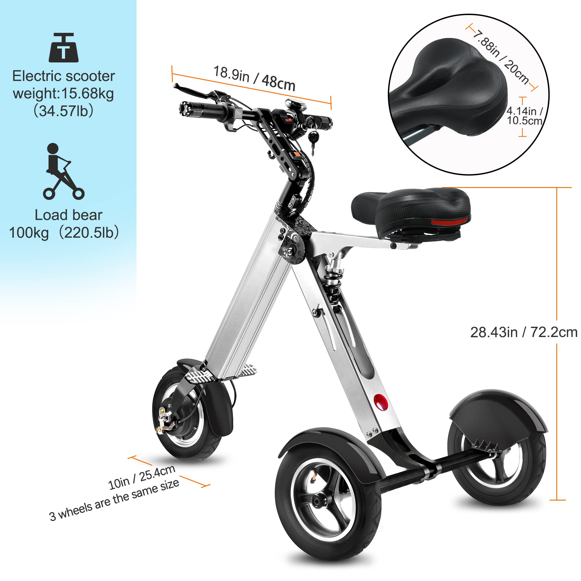 【Sports&Outdoors】Electric Scooter Mini Tricycle for Adult, Folding Electric Mobility Scooter