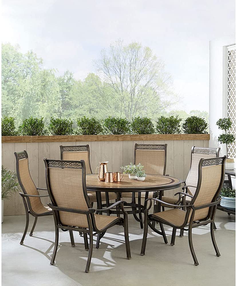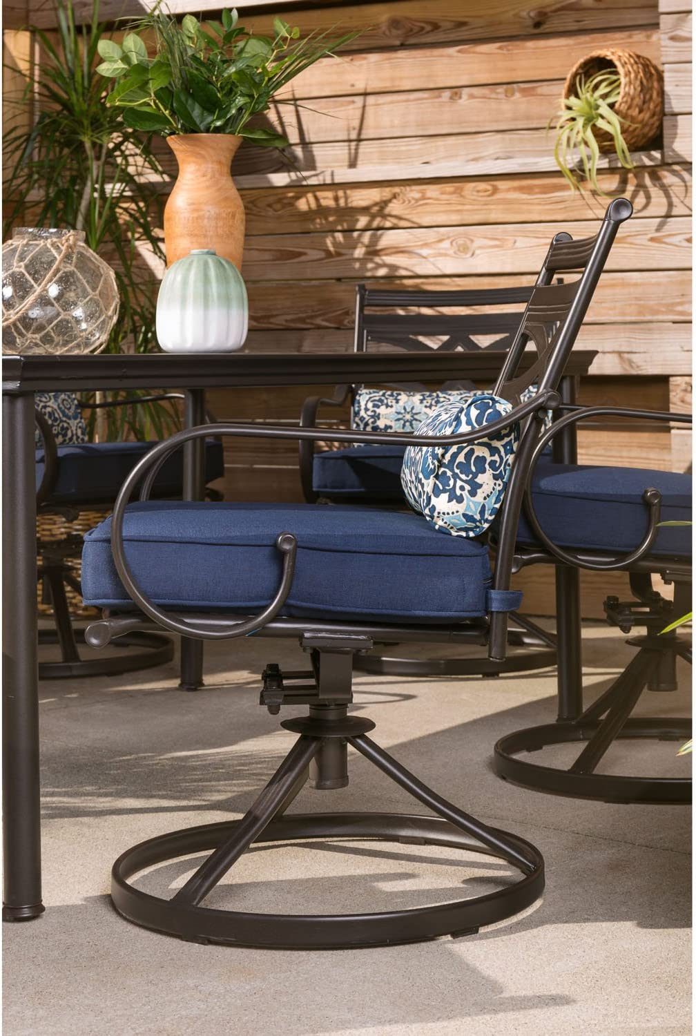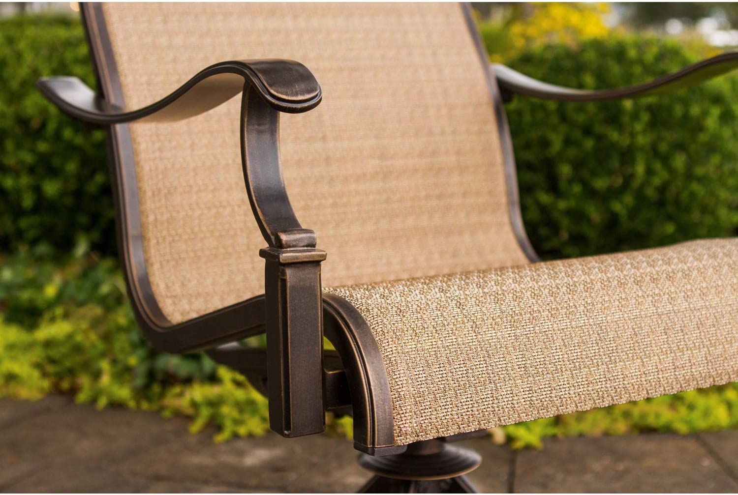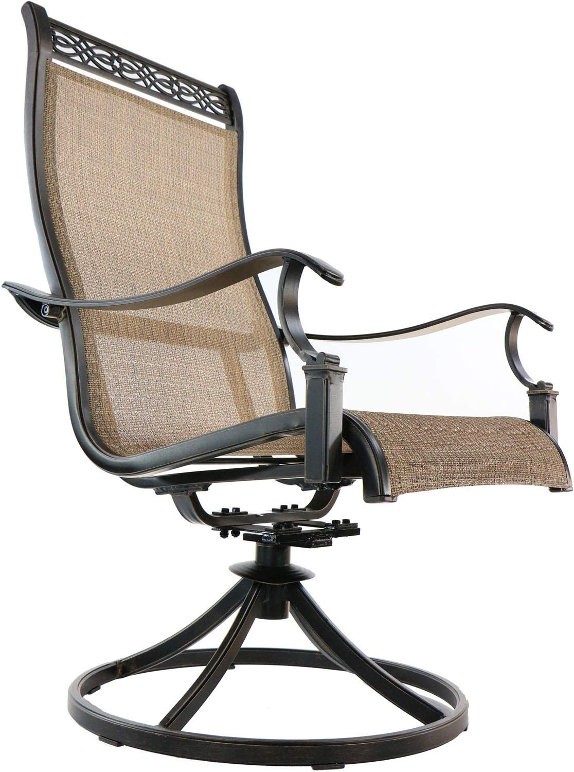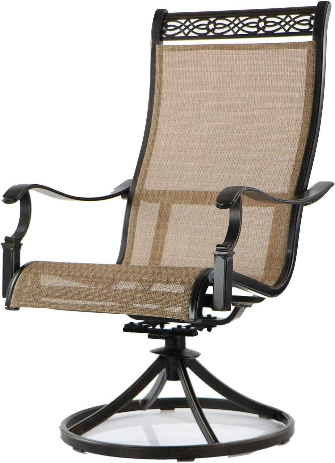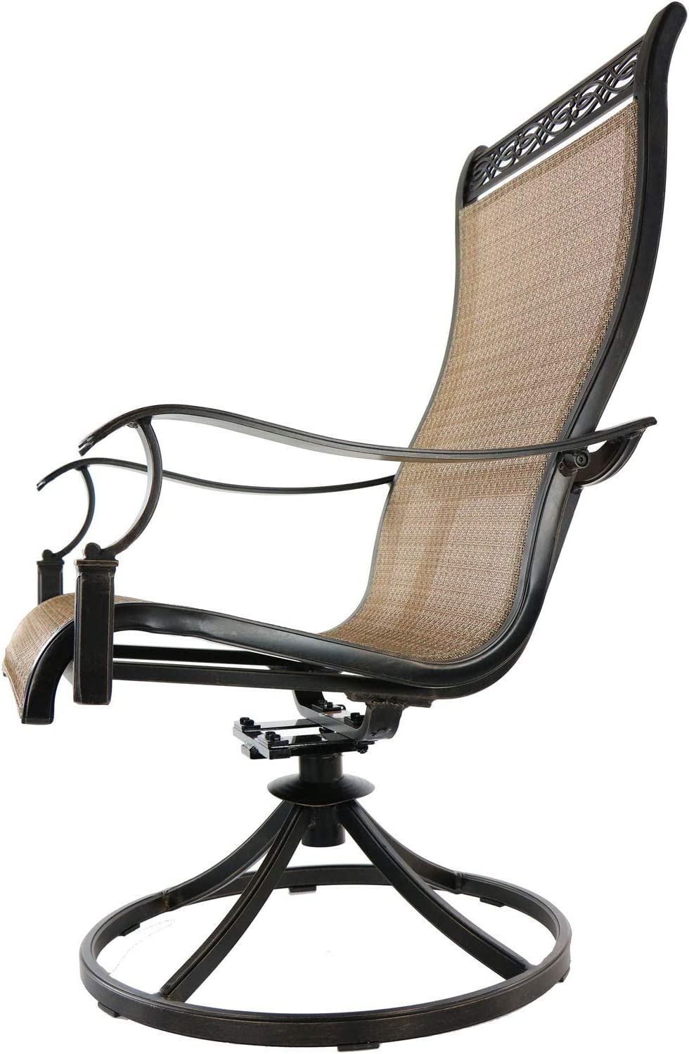 Hanover Montclair 7-Piece All-Weather Outdoor Patio Dining Set, 6 Swivel Rocker Chairs with Comfortable Tan Seat and Lumbar Cushions, 40"x66" Stamped Rectangle Table, MCLRDN7PCSQSW6-TAN