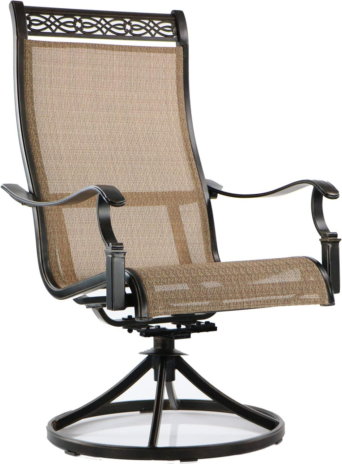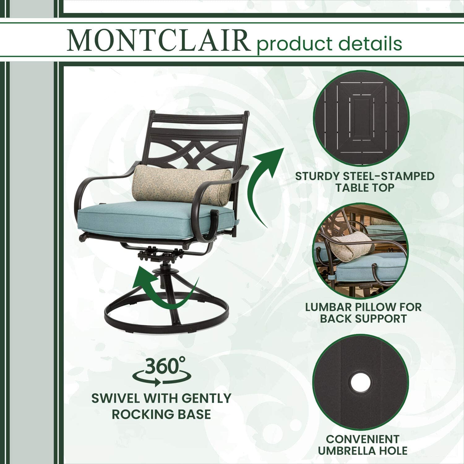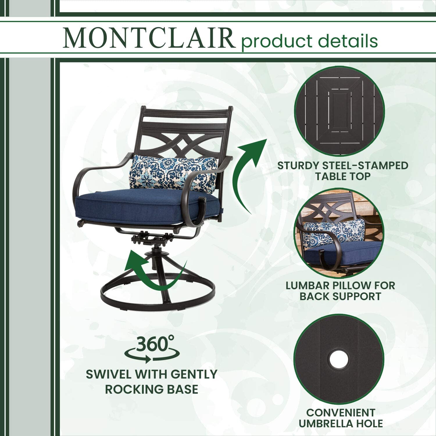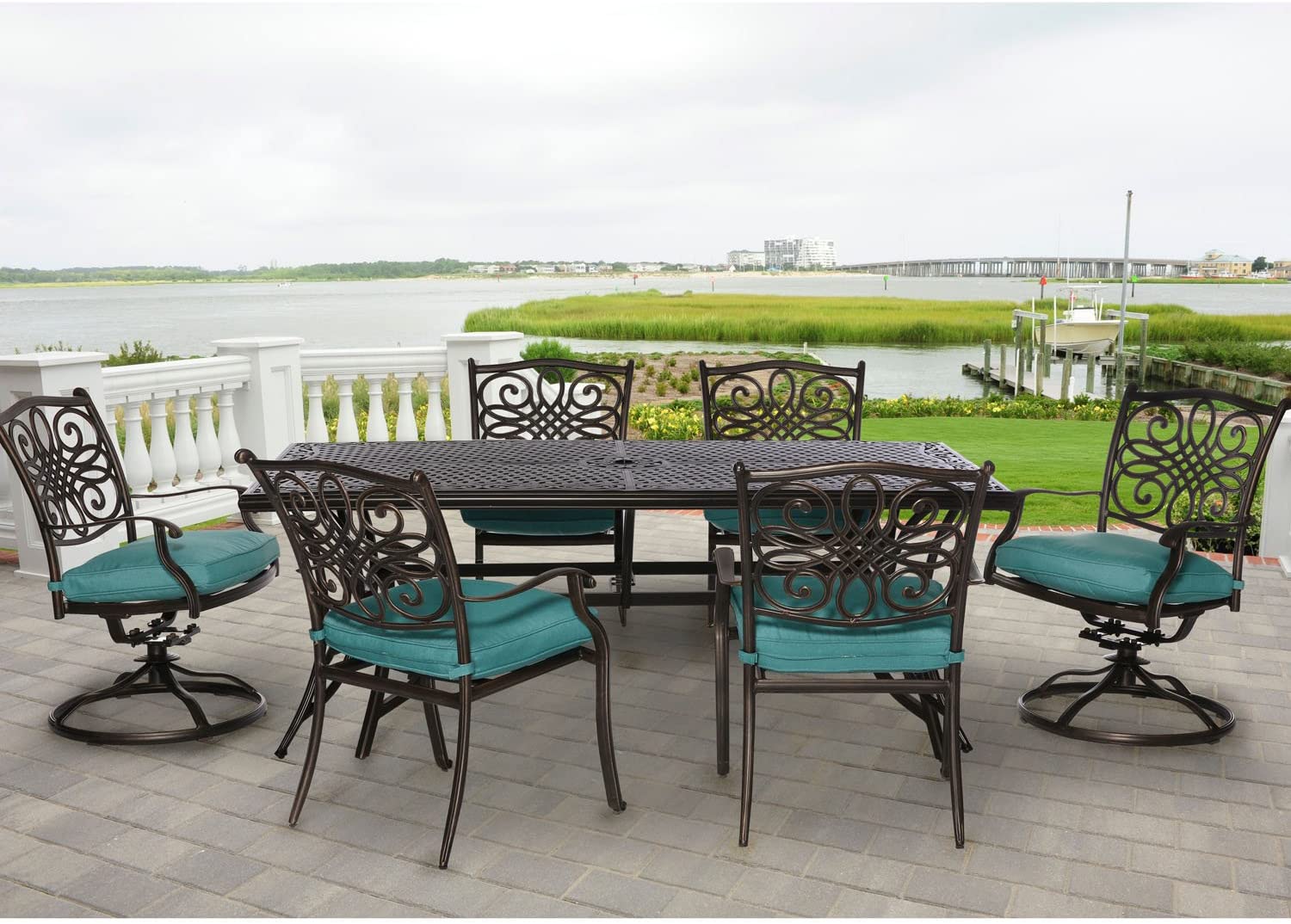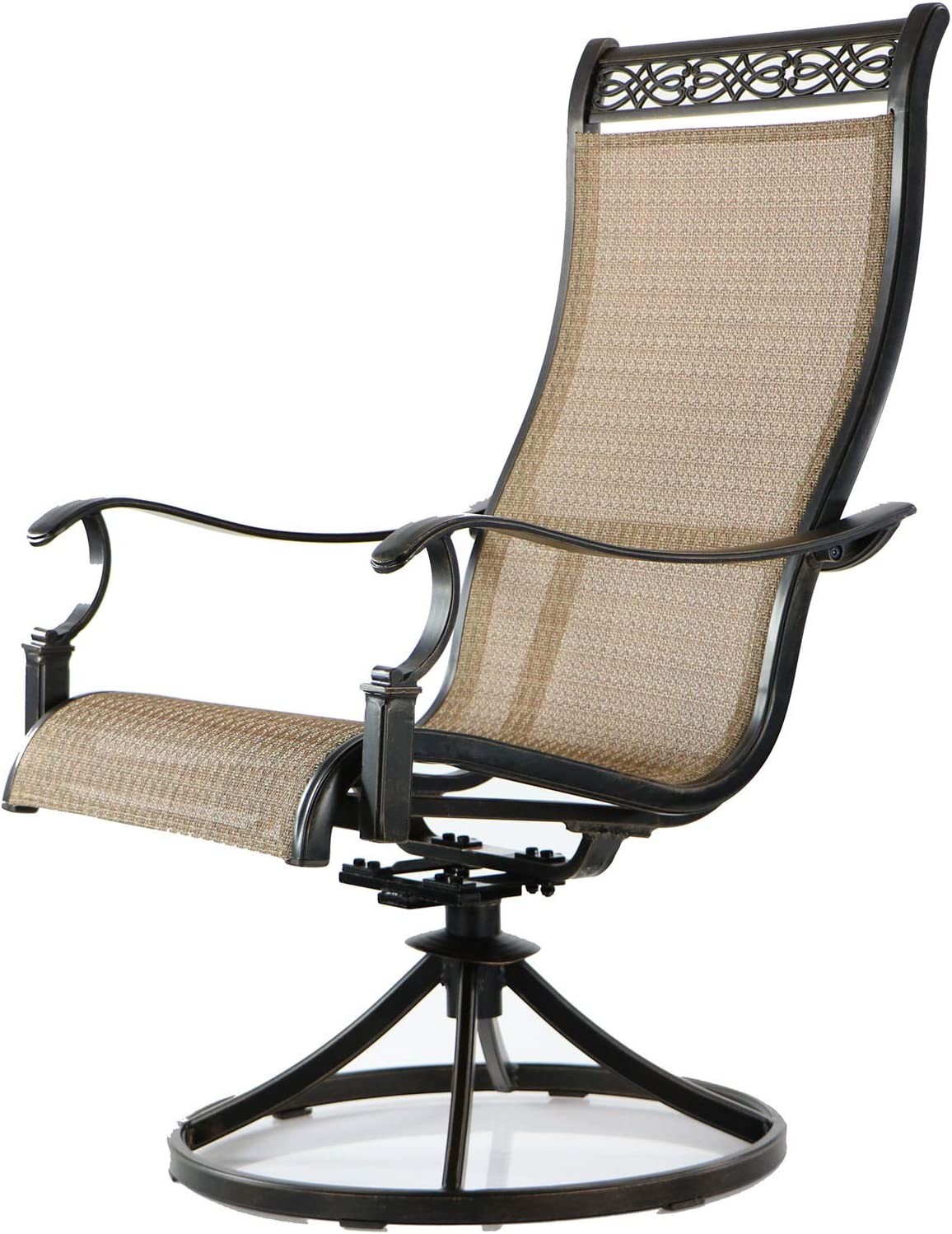Hanover Montclair 7-Piece All-Weather Outdoor Patio Dining Set, 6 Swivel Rocker Chairs with Comfortable Tan Seat and Lumbar Cushions, 40"x66" Stamped Rectangle Table, MCLRDN7PCSQSW6-TAN
