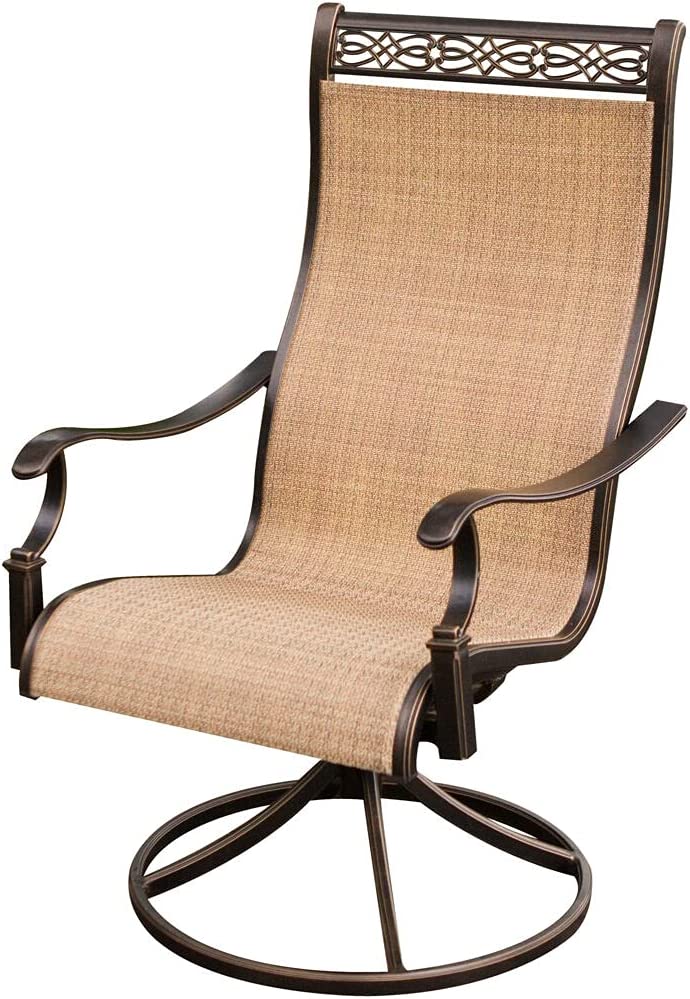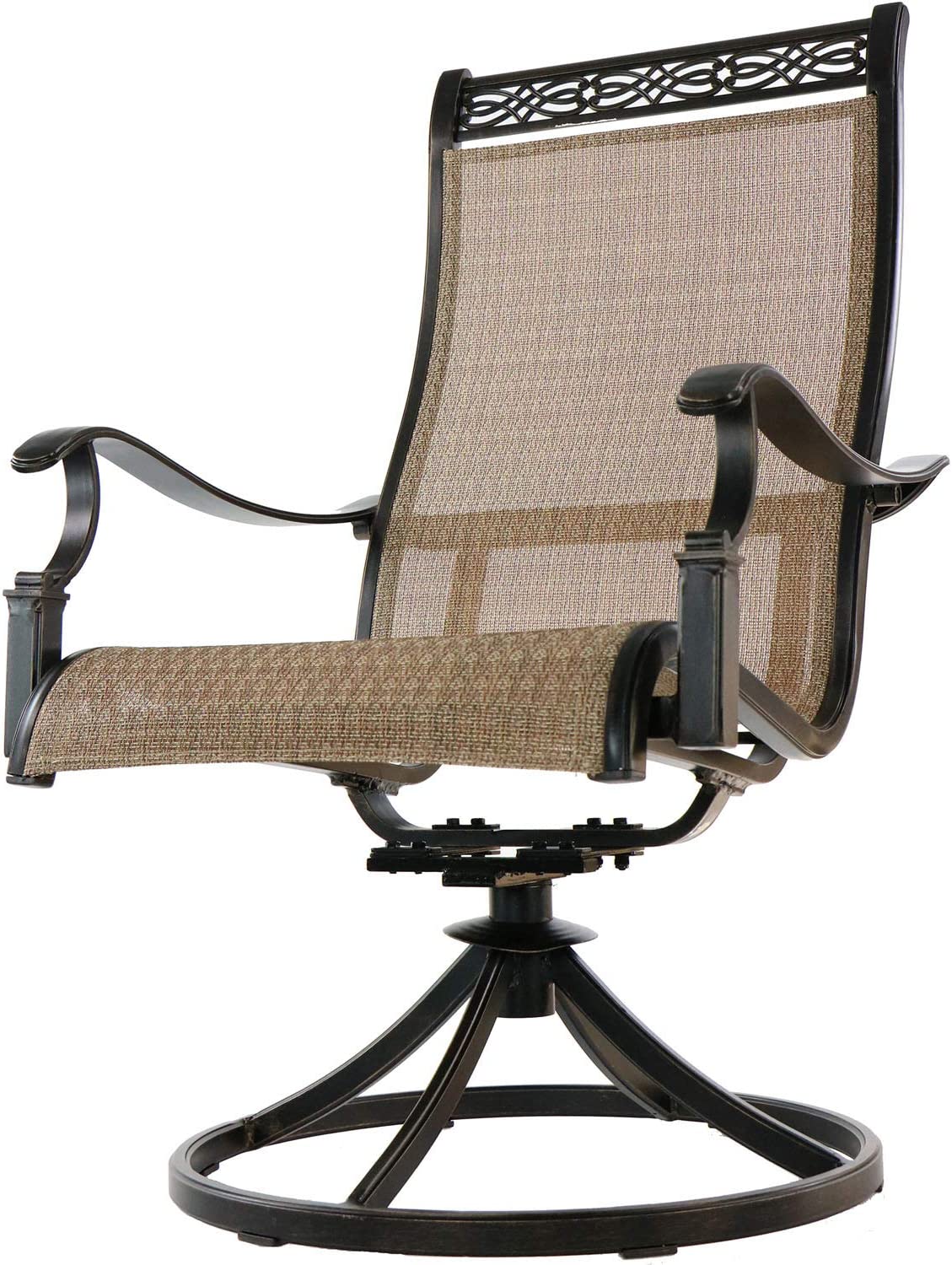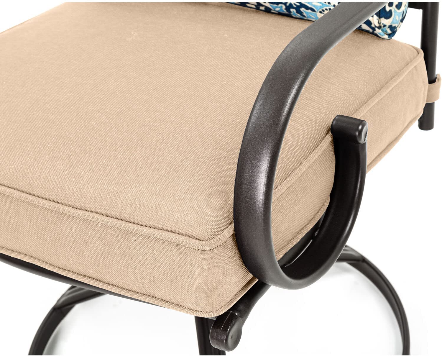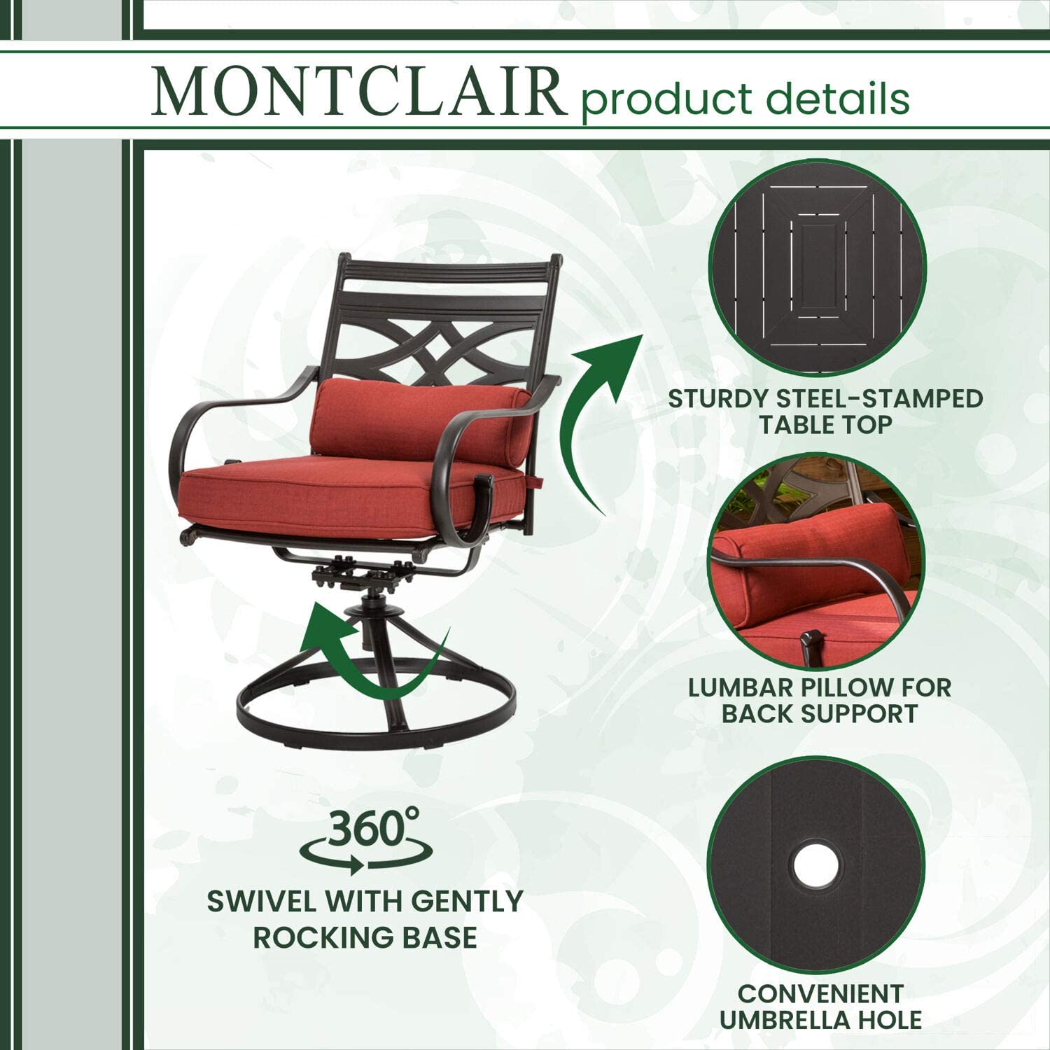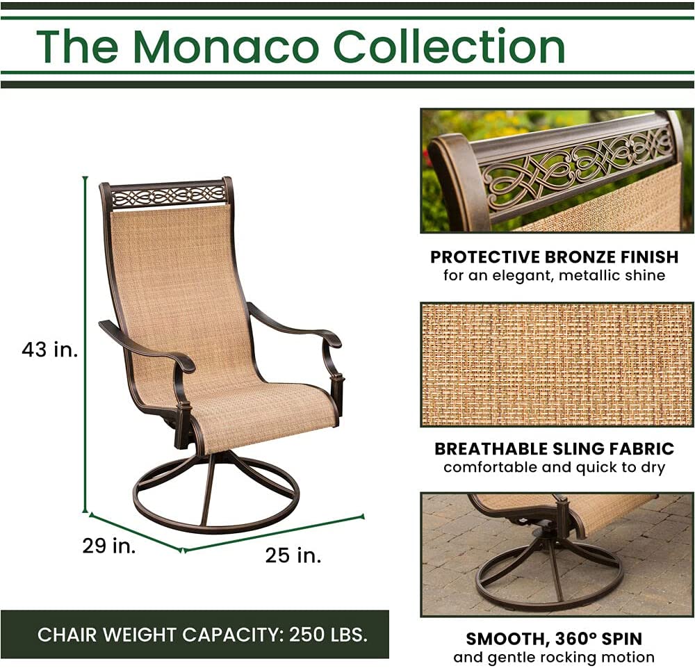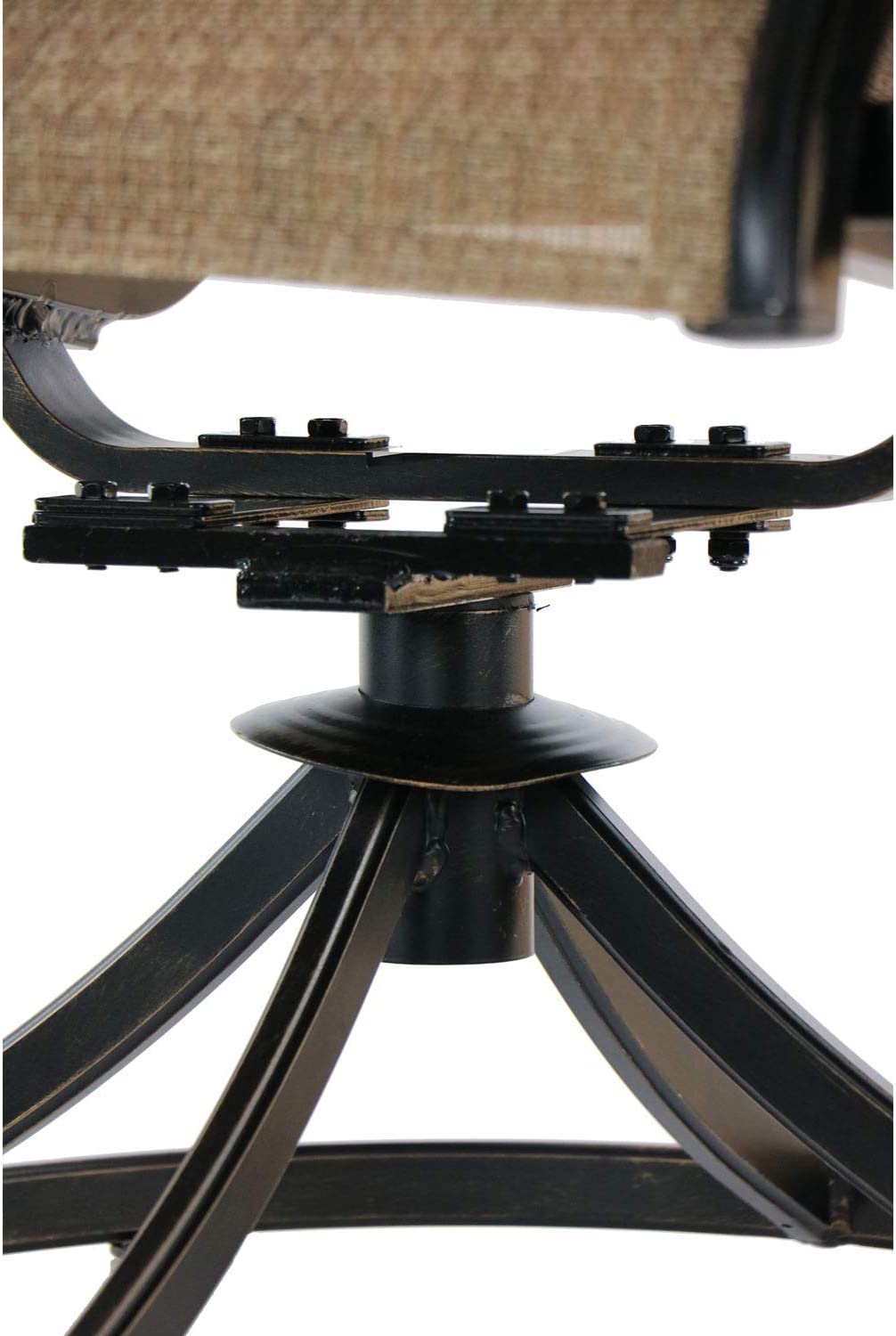 Hanover Montclair 7-Piece All-Weather Outdoor Patio Dining Set, 6 Swivel Rocker Chairs with Comfortable Tan Seat and Lumbar Cushions, 40"x66" Stamped Rectangle Table, MCLRDN7PCSQSW6-TAN