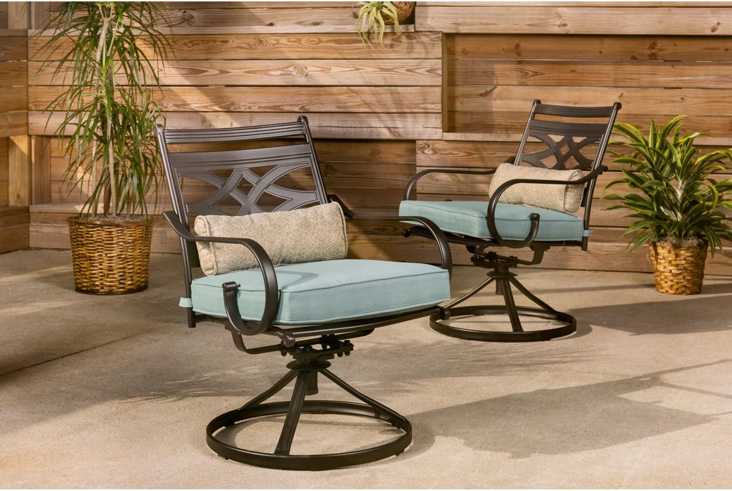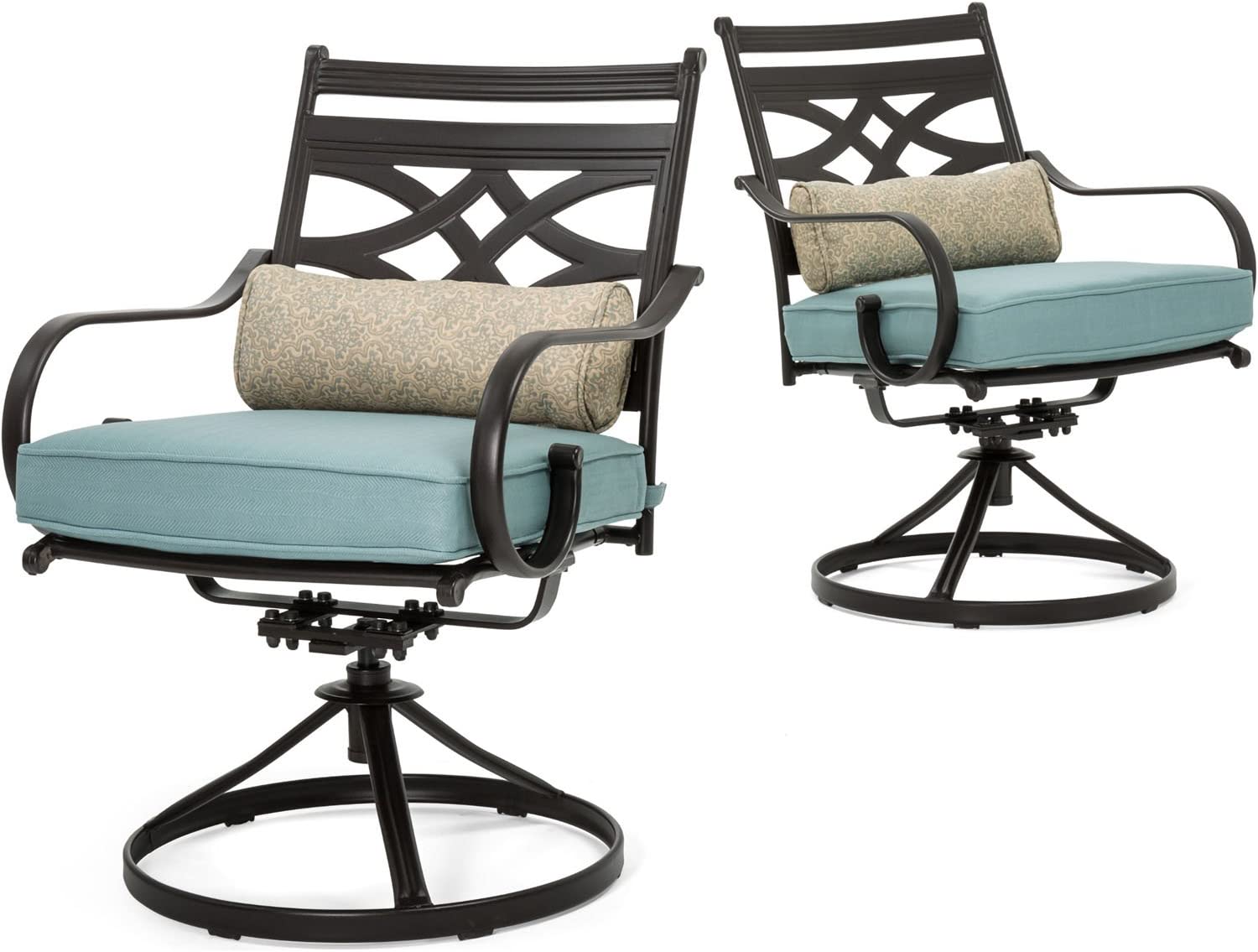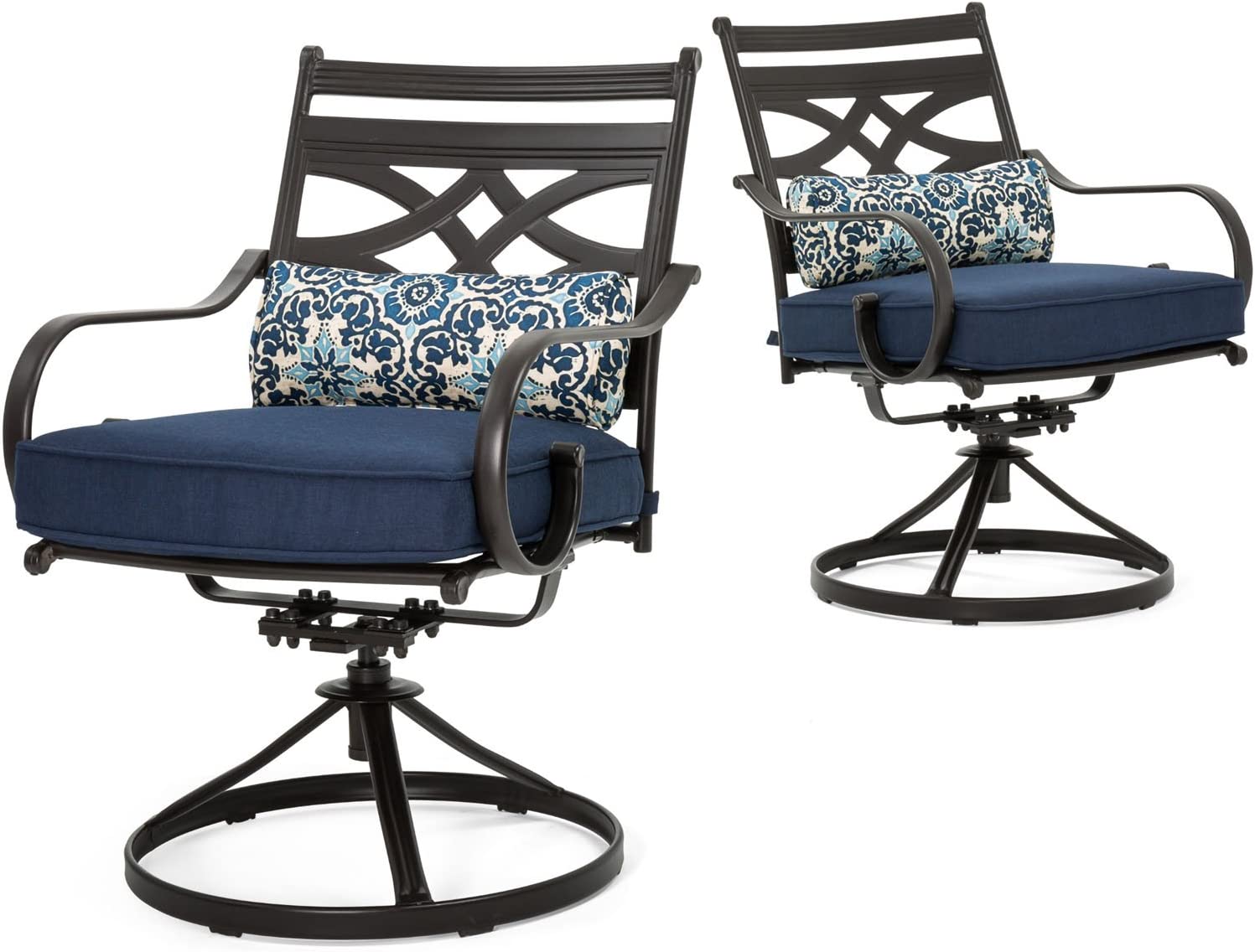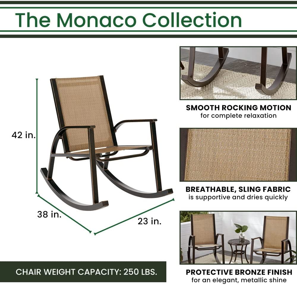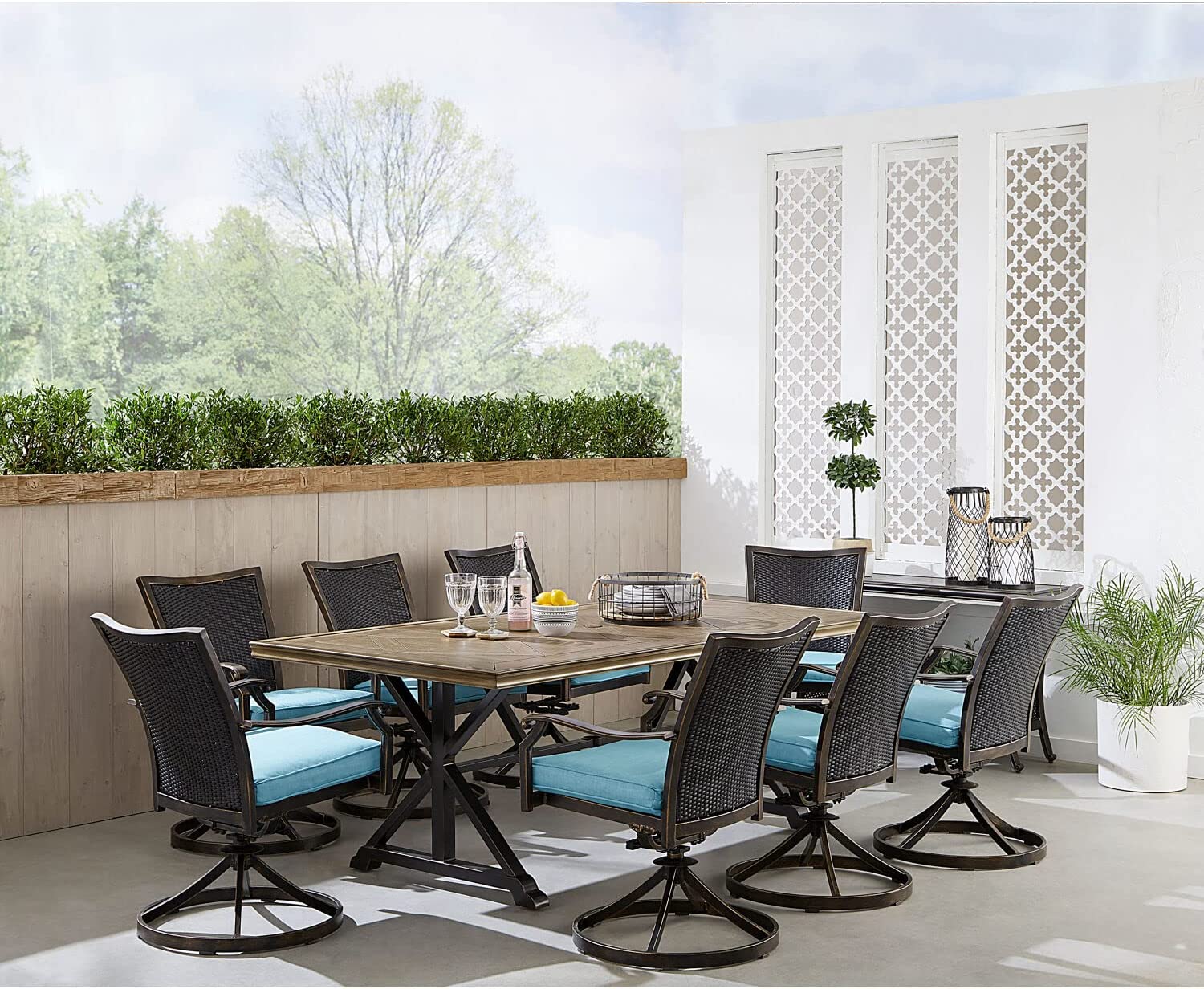 Hanover Montclair 7-Piece All-Weather Outdoor Patio Dining Set, 6 Swivel Rocker Chairs with Comfortable Tan Seat and Lumbar Cushions, 40"x66" Stamped Rectangle Table, MCLRDN7PCSQSW6-TAN