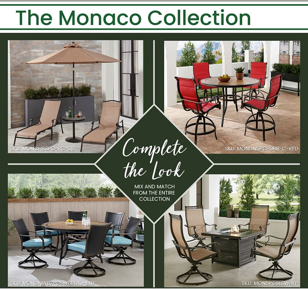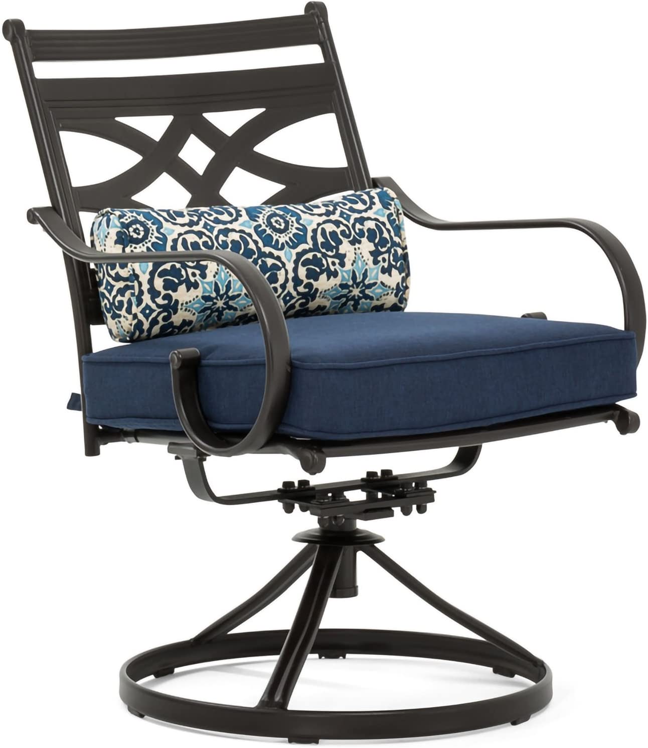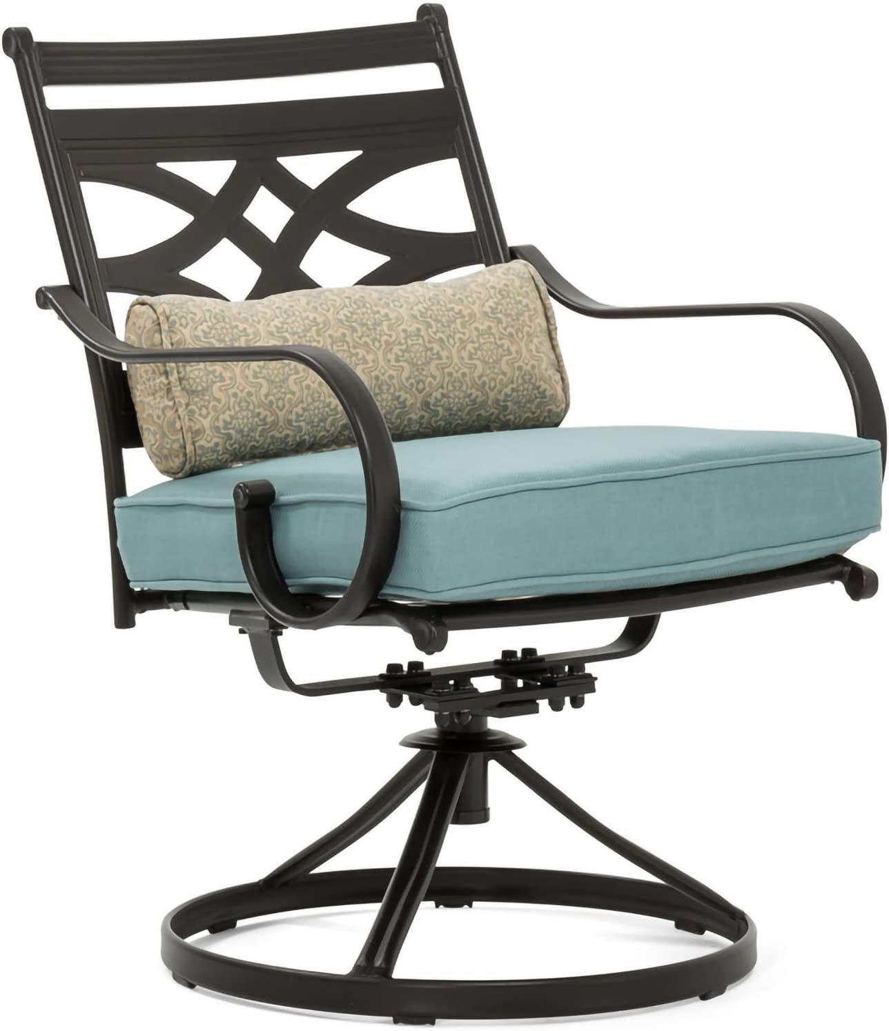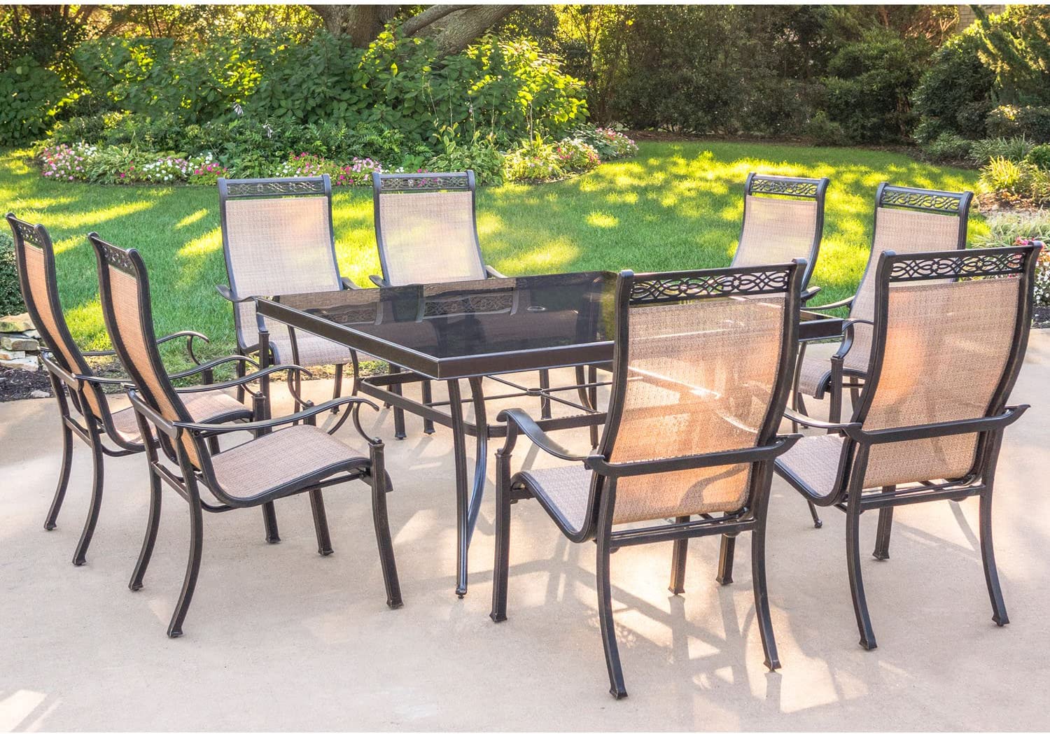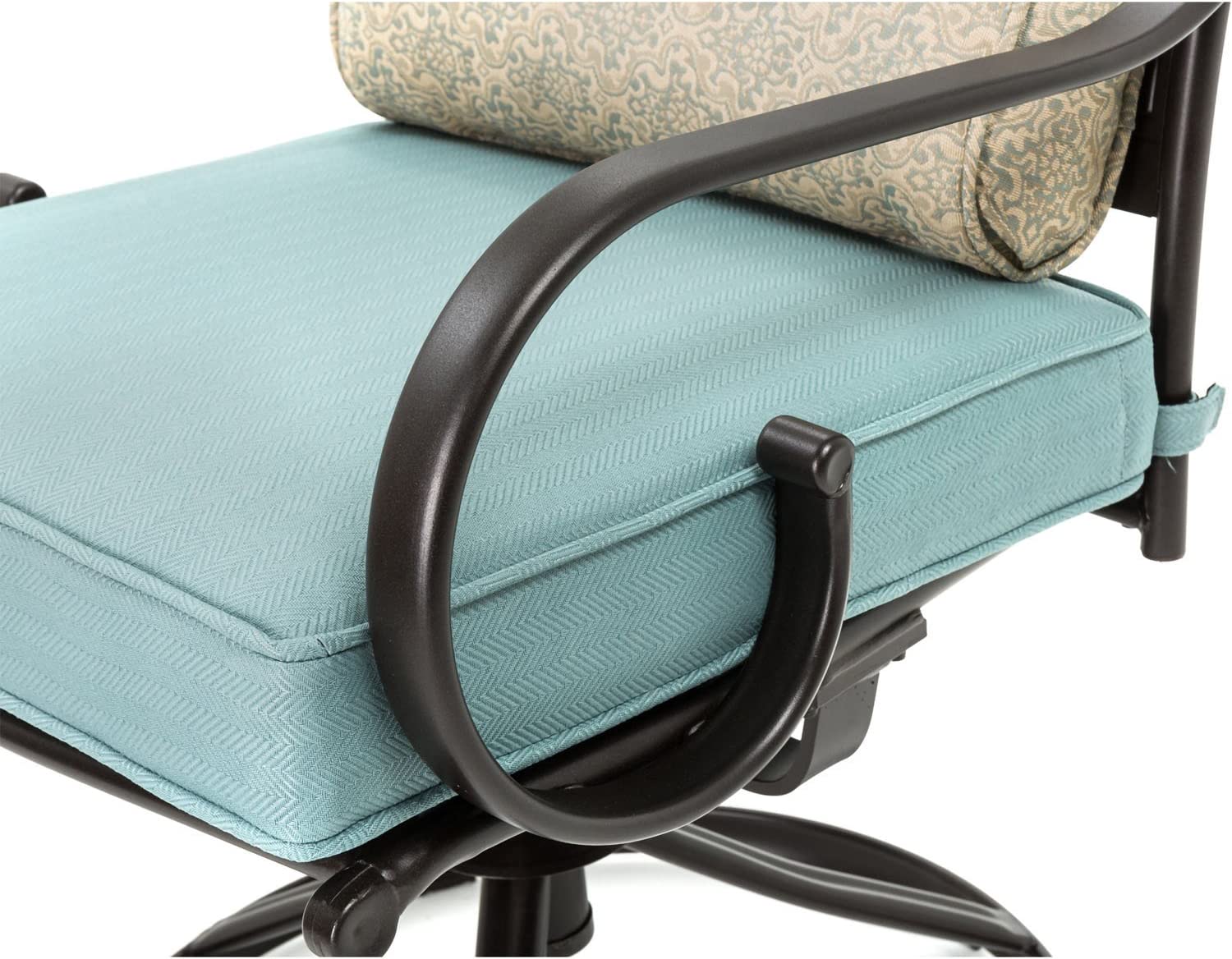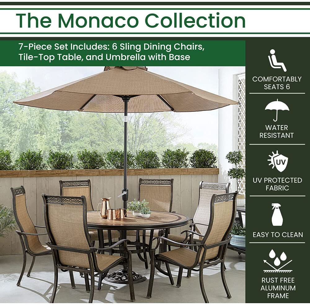 Hanover Montclair 7-Piece All-Weather Outdoor Patio Dining Set, 6 Swivel Rocker Chairs with Comfortable Tan Seat and Lumbar Cushions, 40"x66" Stamped Rectangle Table, MCLRDN7PCSQSW6-TAN