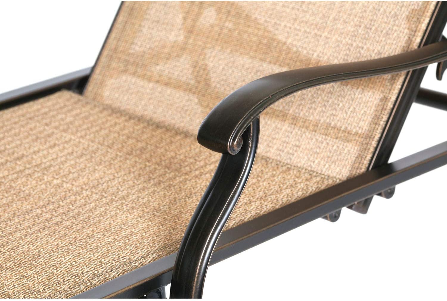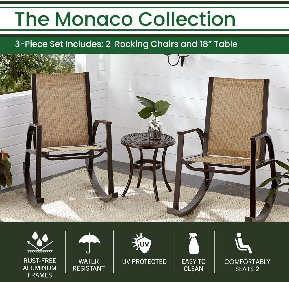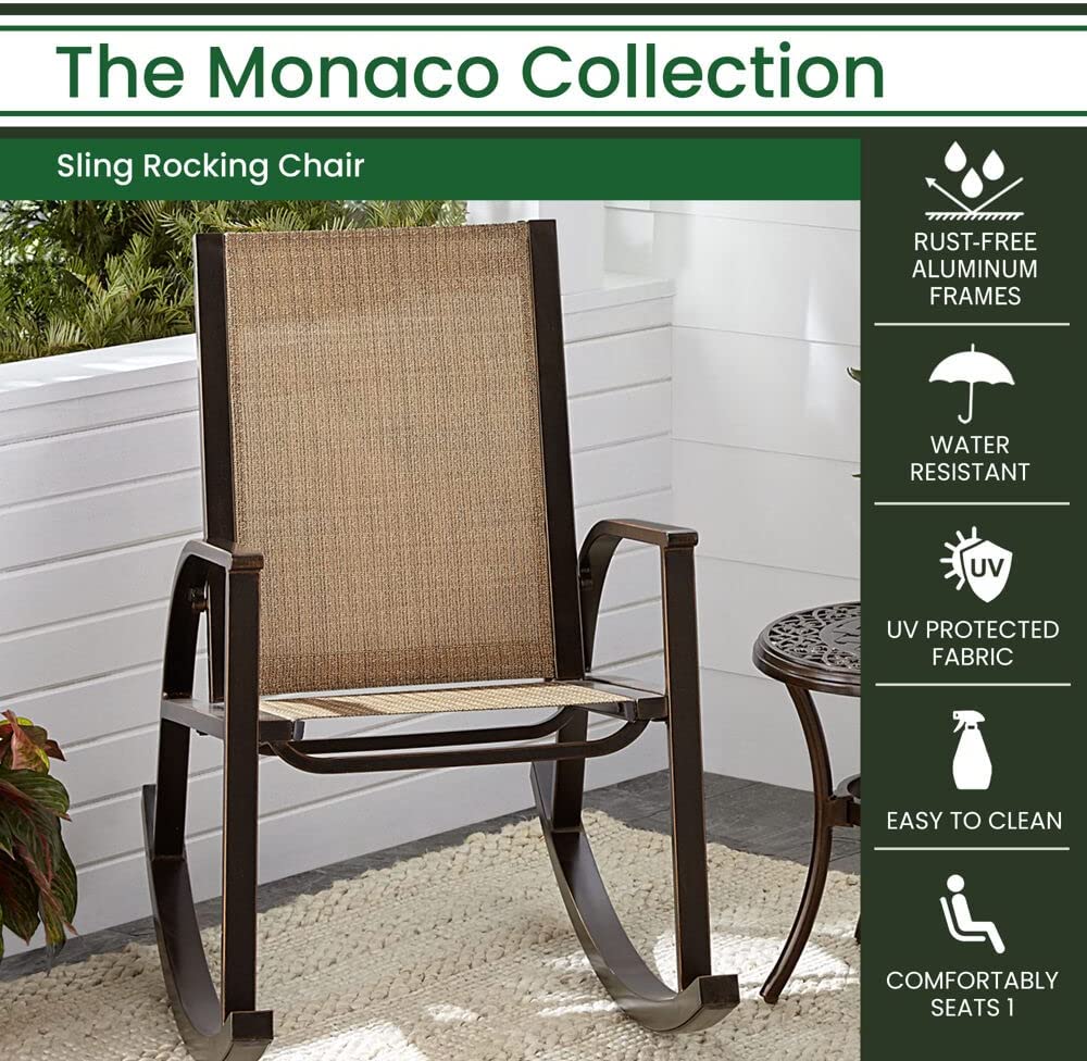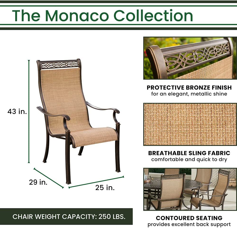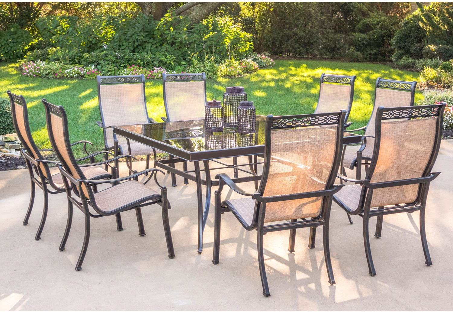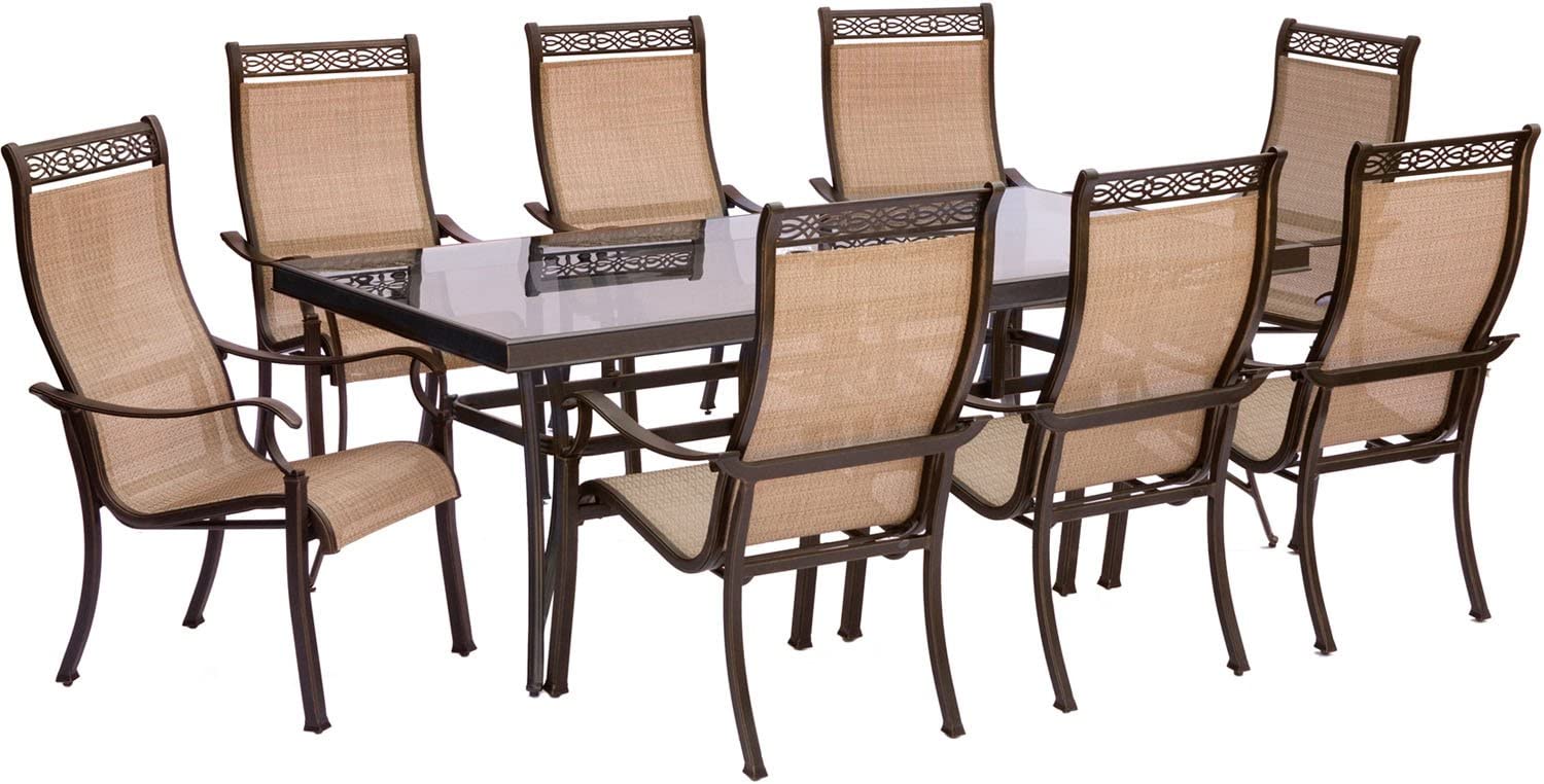 Hanover Montclair 7-Piece All-Weather Outdoor Patio Dining Set, 6 Swivel Rocker Chairs with Comfortable Tan Seat and Lumbar Cushions, 40"x66" Stamped Rectangle Table, MCLRDN7PCSQSW6-TAN