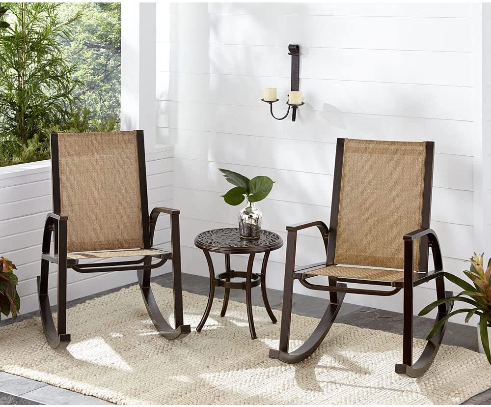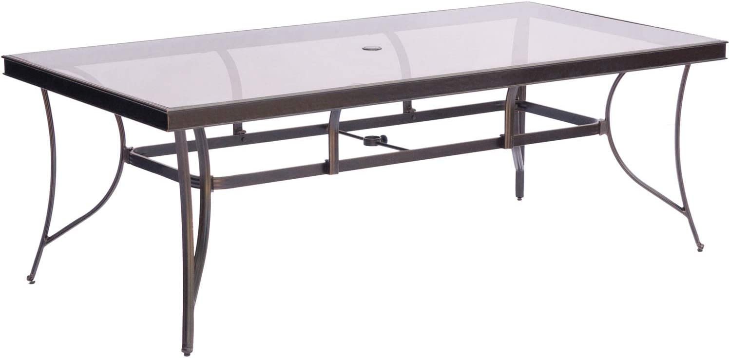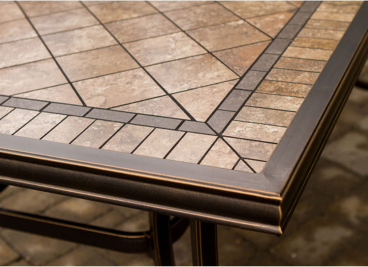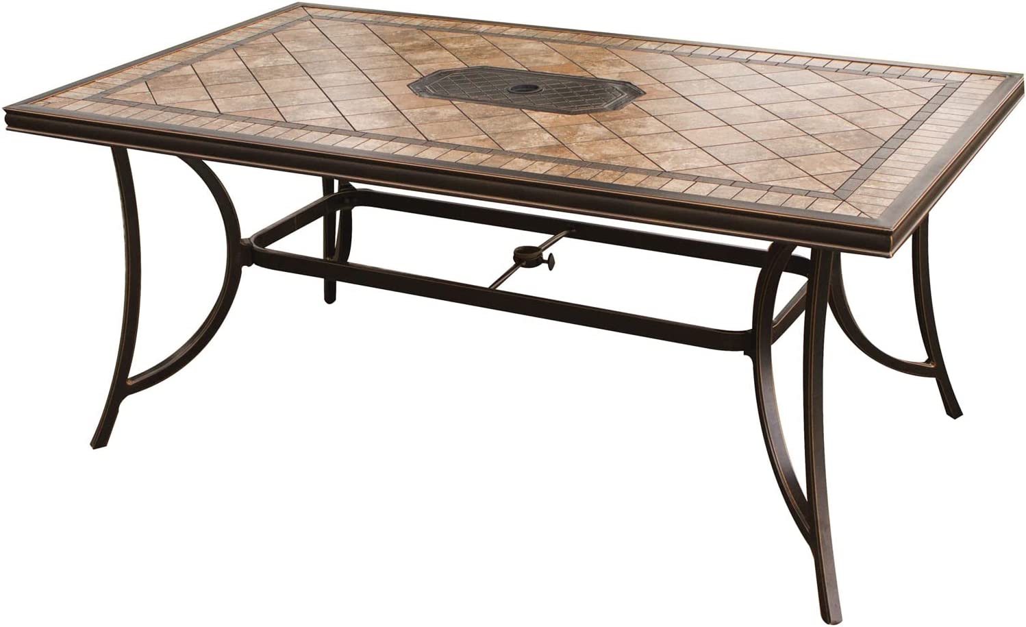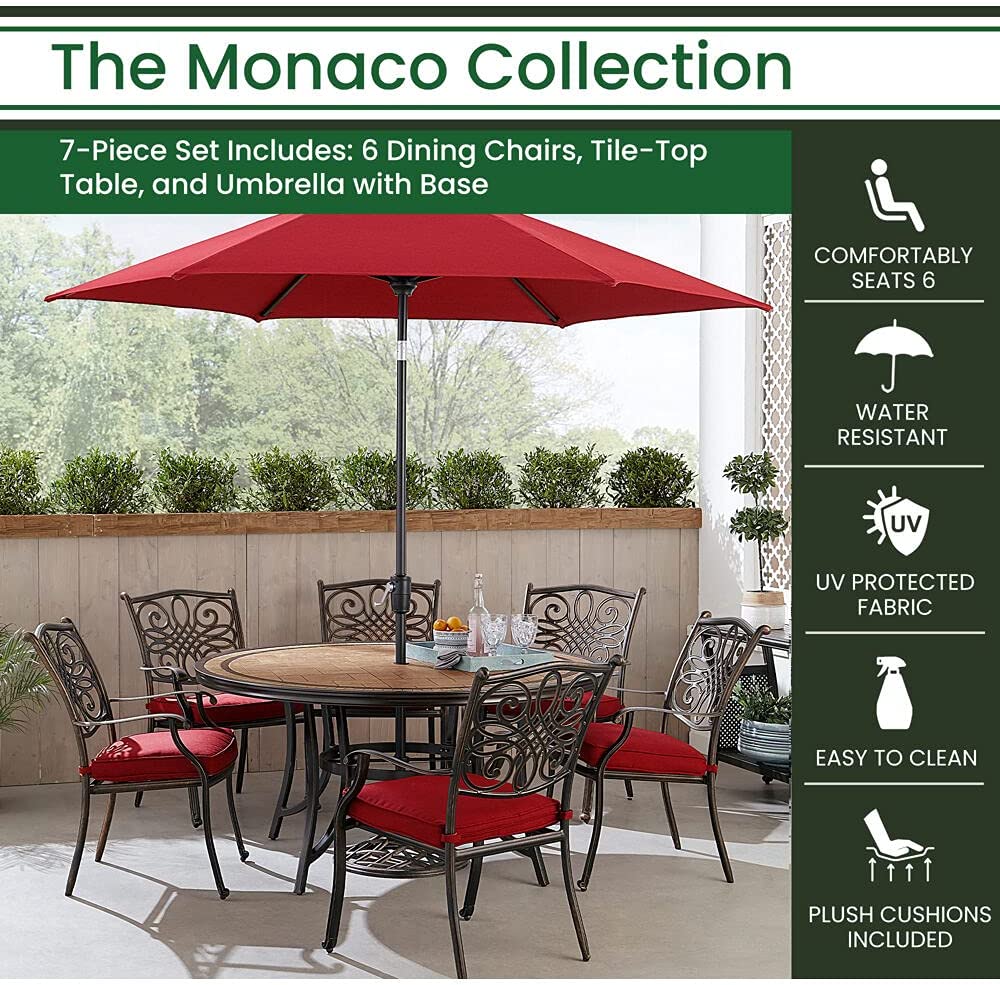 Hanover Montclair 7-Piece All-Weather Outdoor Patio Dining Set, 6 Swivel Rocker Chairs with Comfortable Tan Seat and Lumbar Cushions, 40"x66" Stamped Rectangle Table, MCLRDN7PCSQSW6-TAN