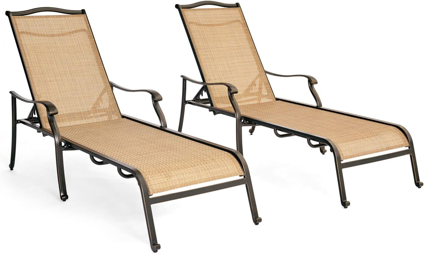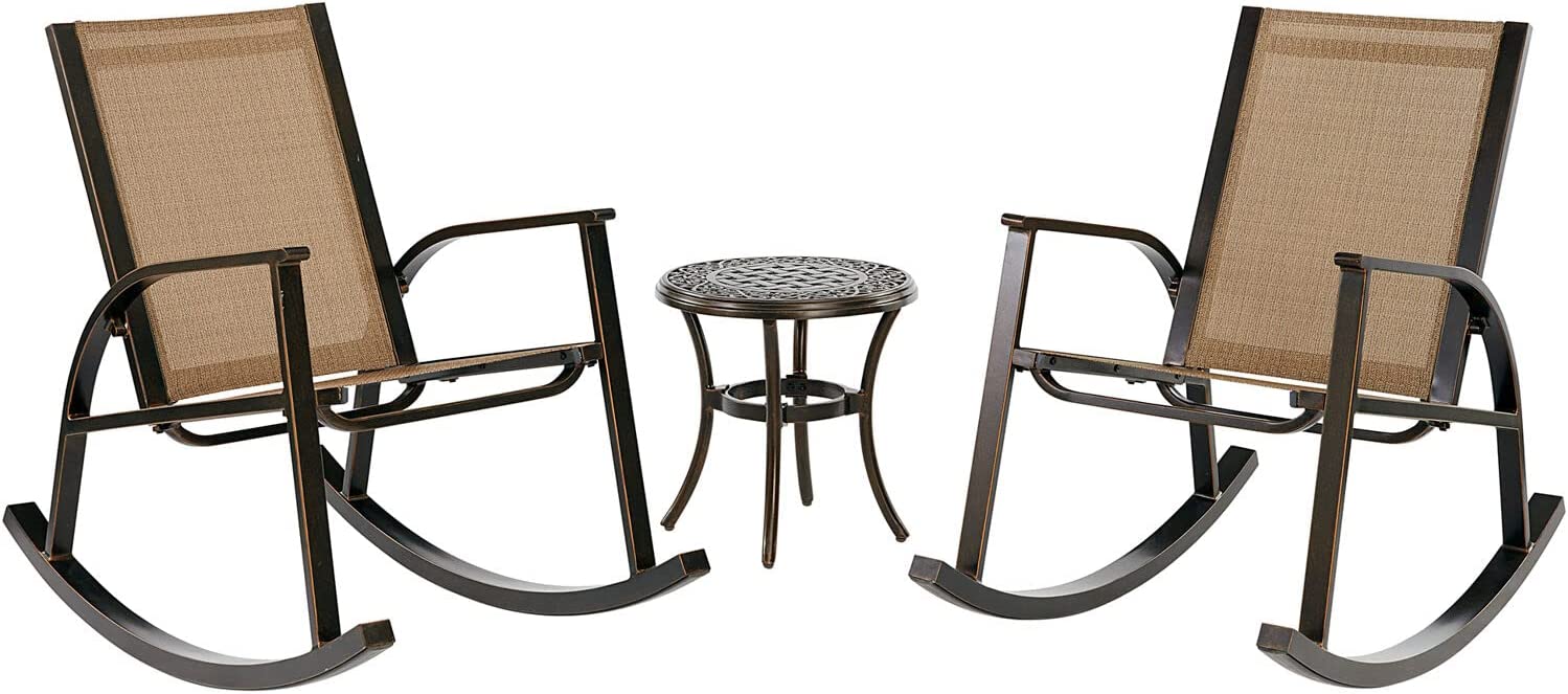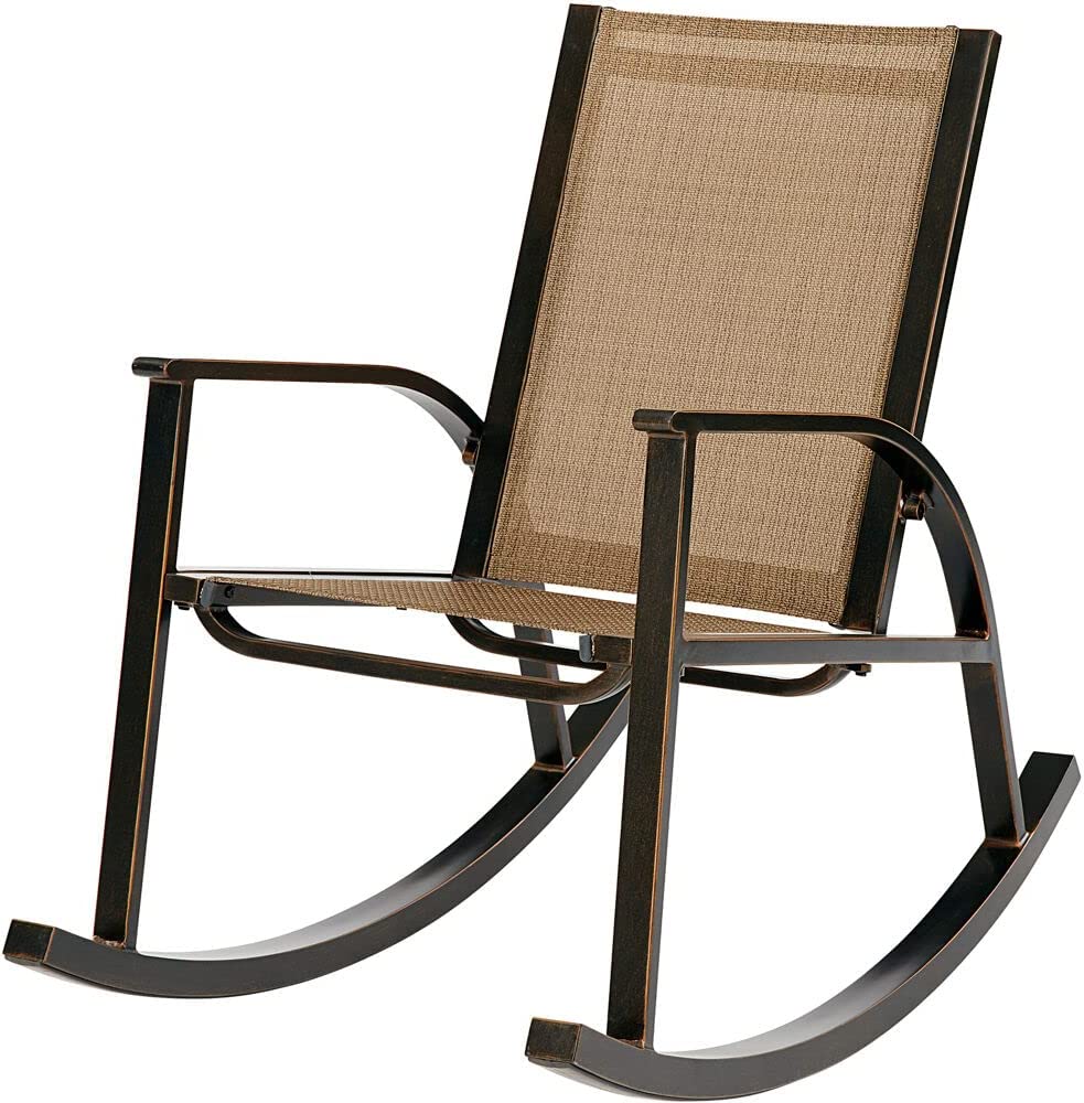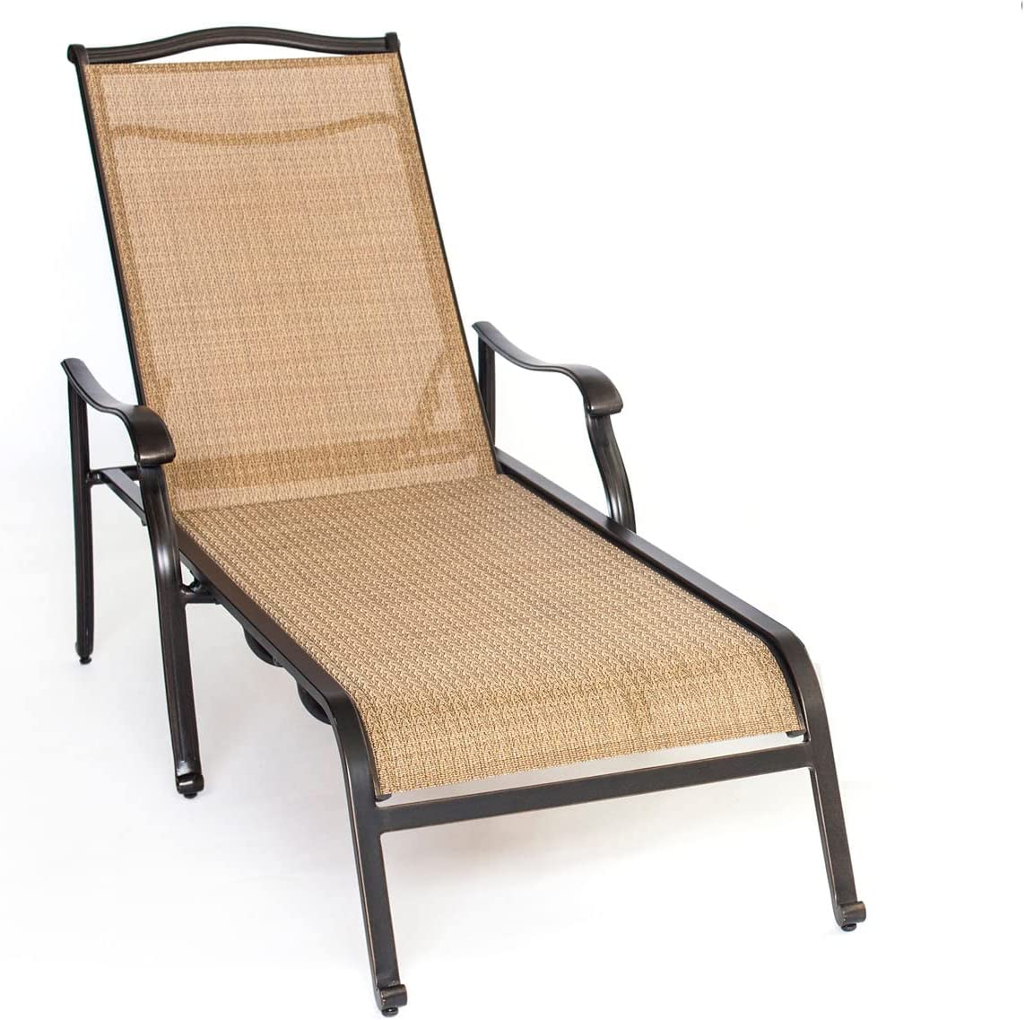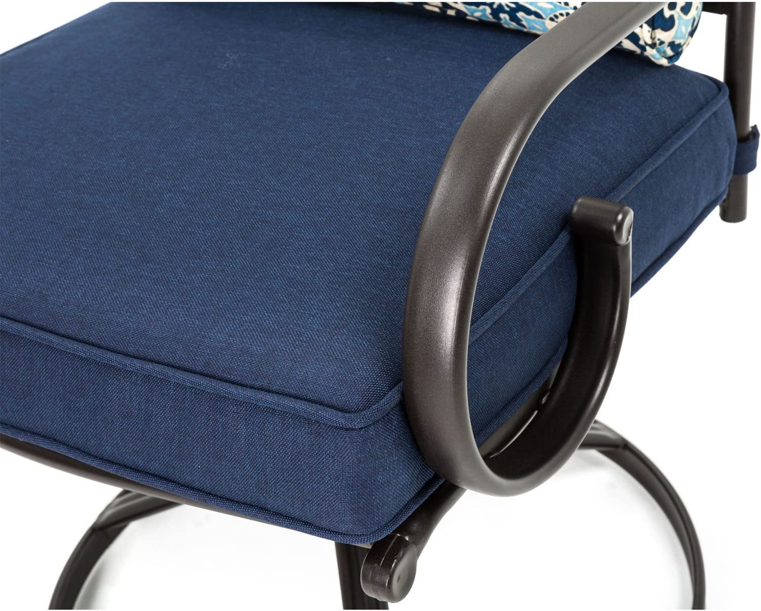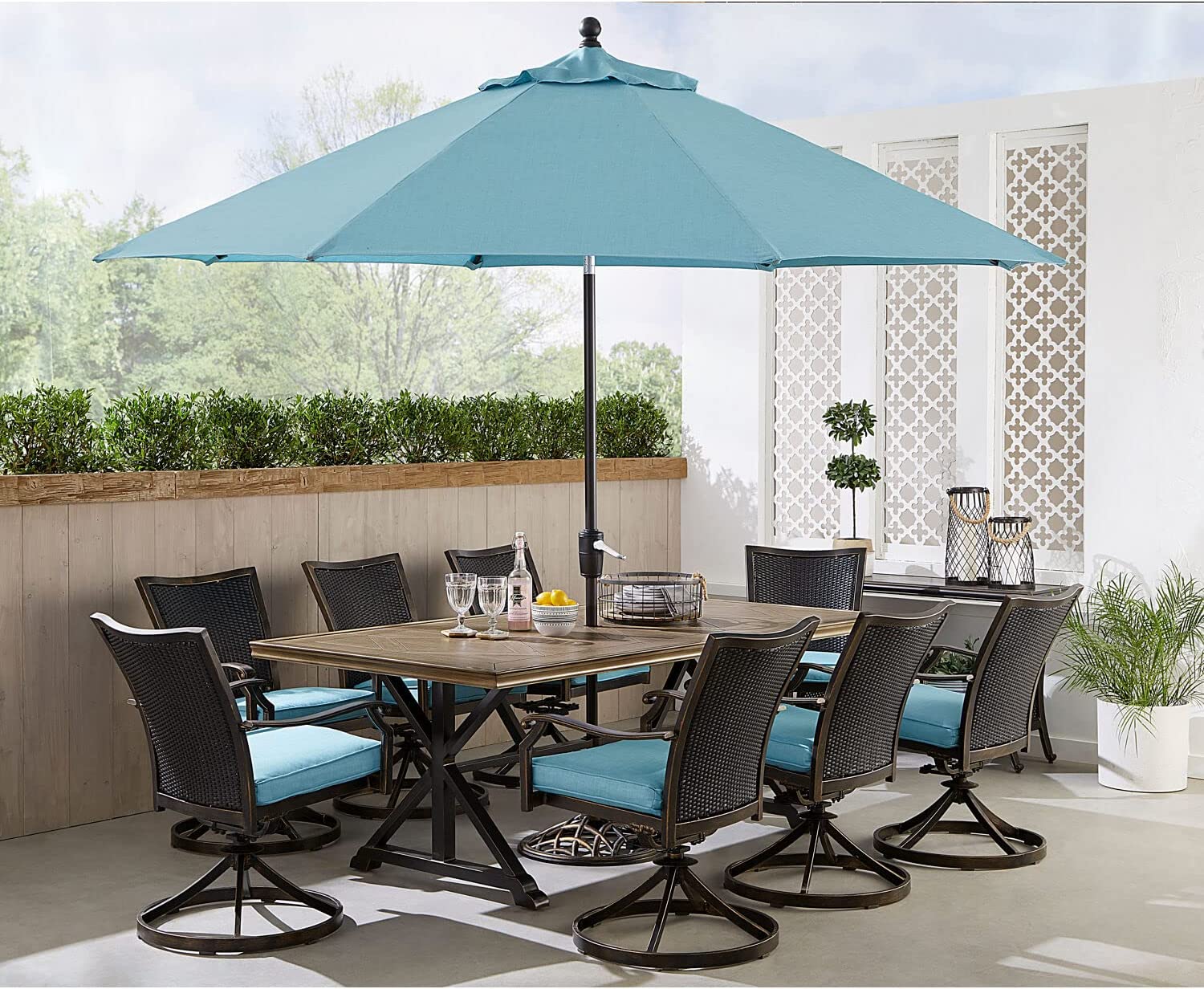 Hanover Montclair 7-Piece All-Weather Outdoor Patio Dining Set, 6 Swivel Rocker Chairs with Comfortable Tan Seat and Lumbar Cushions, 40"x66" Stamped Rectangle Table, MCLRDN7PCSQSW6-TAN
