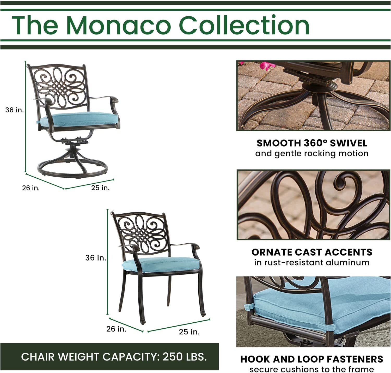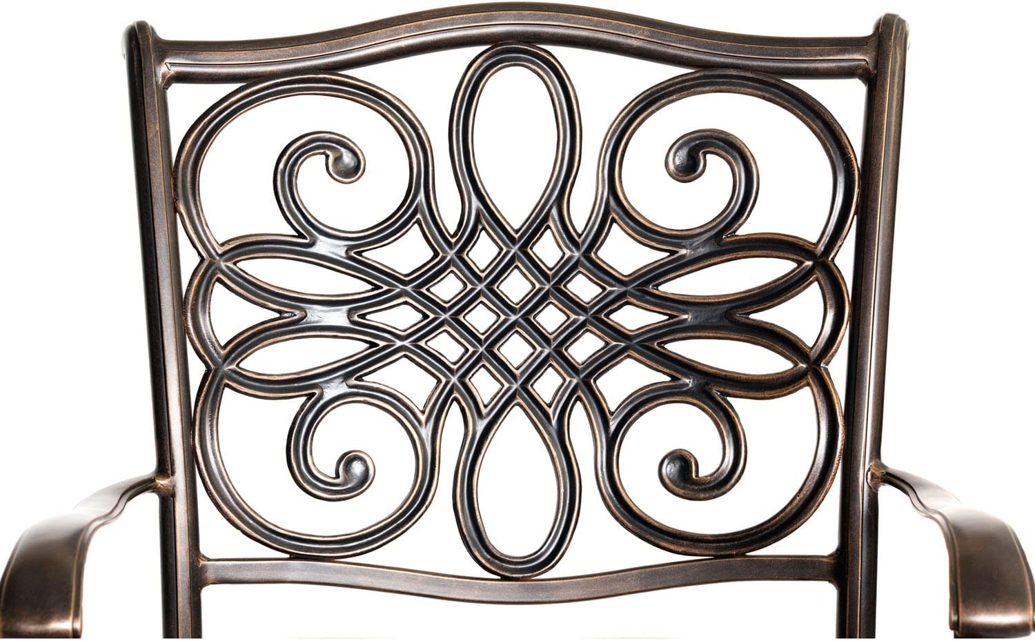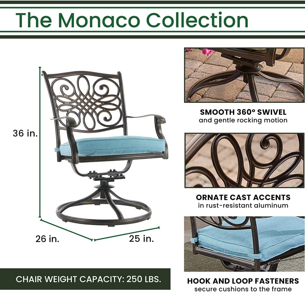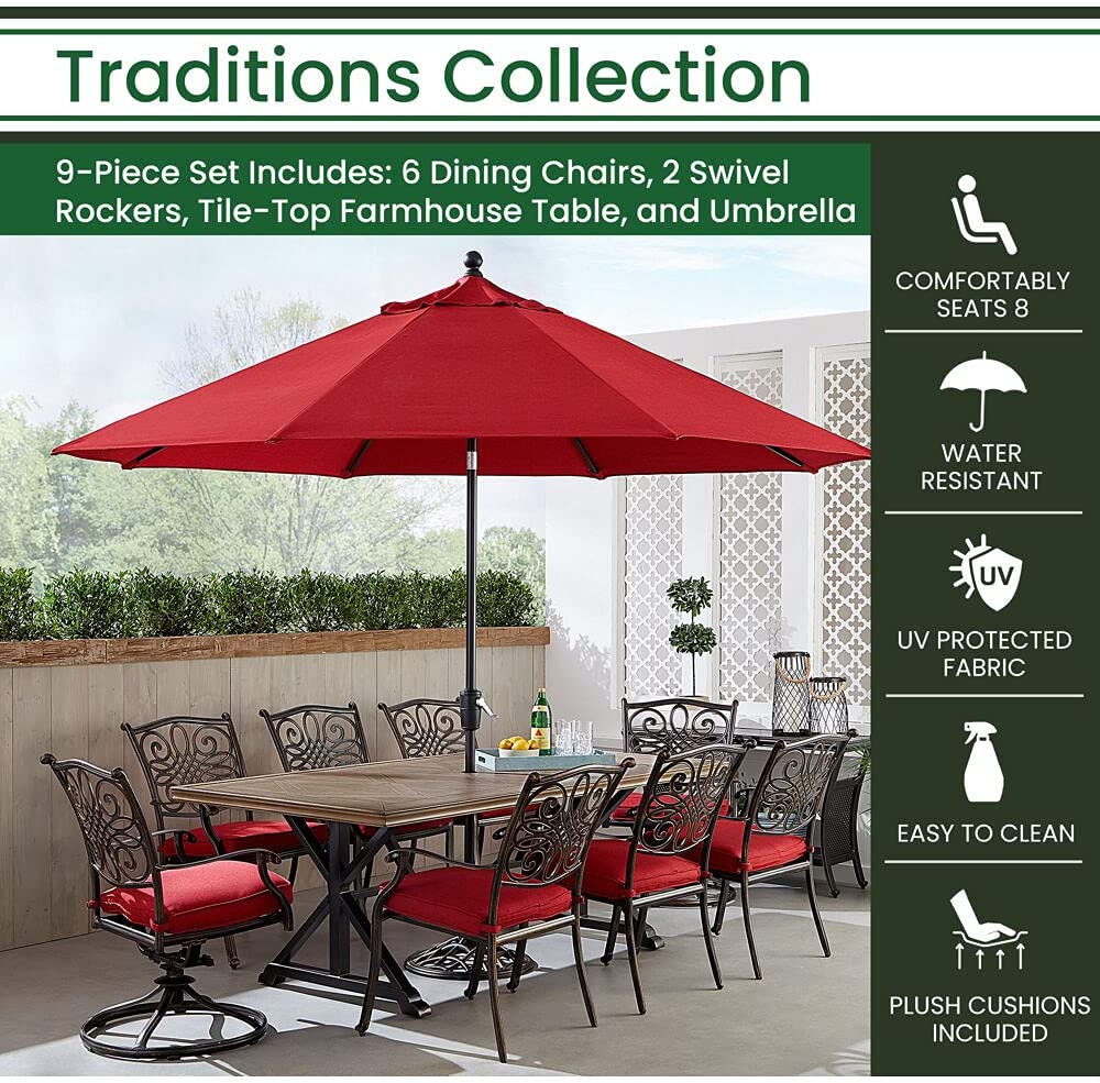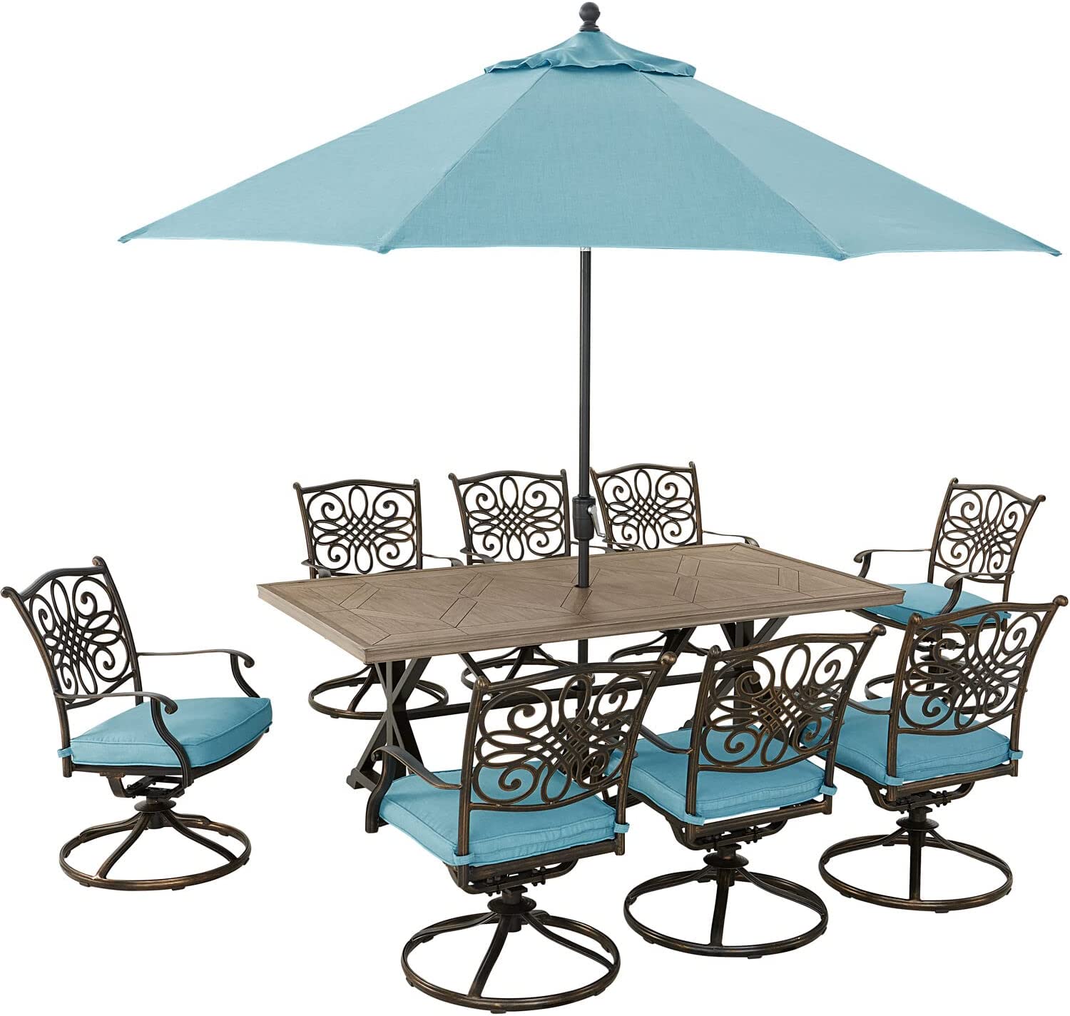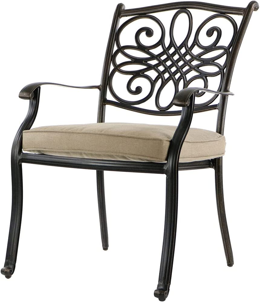 Hanover 7-Piece Tan with a 60 Cast-top Six Traditions Rust-Free Outdoor Patio Set Cushions, 6 Swivel Rockers and Aluminum Round Dining Table