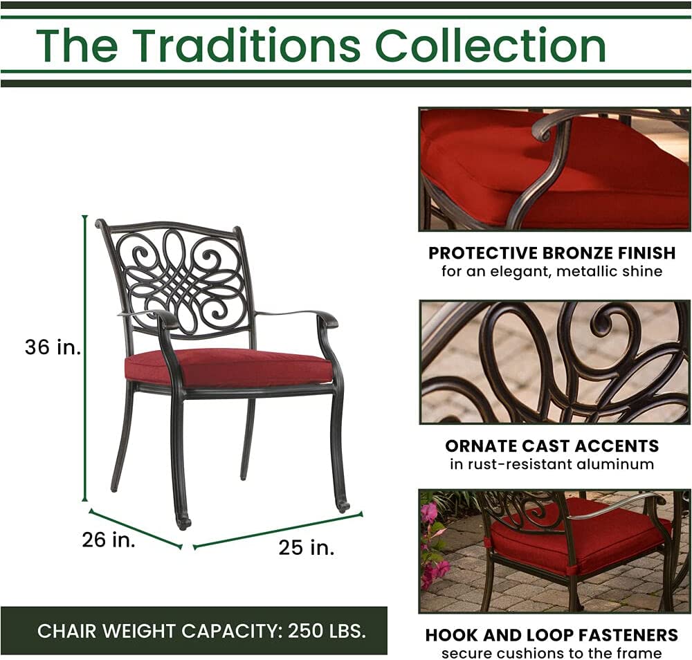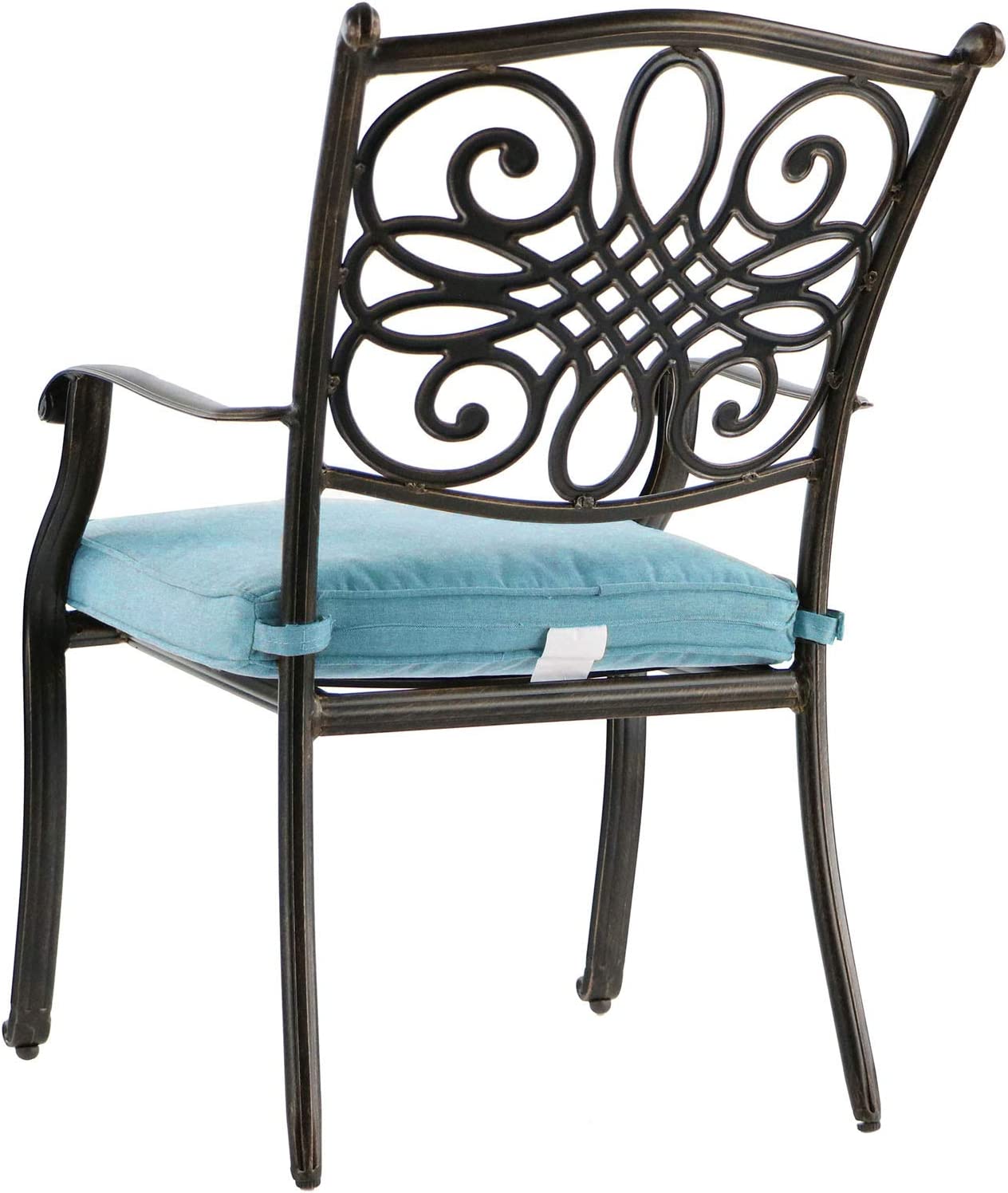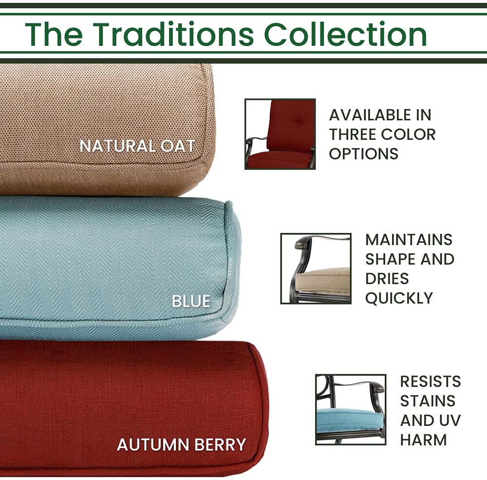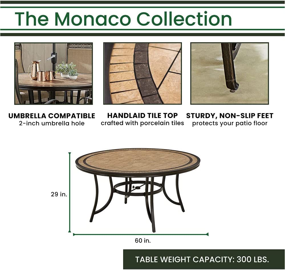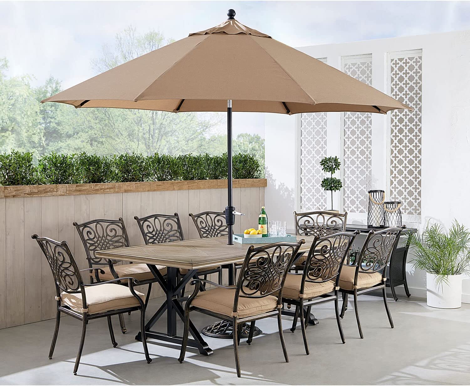 Hanover 7-Piece Tan with a 60 Cast-top Six Traditions Rust-Free Outdoor Patio Set Cushions, 6 Swivel Rockers and Aluminum Round Dining Table