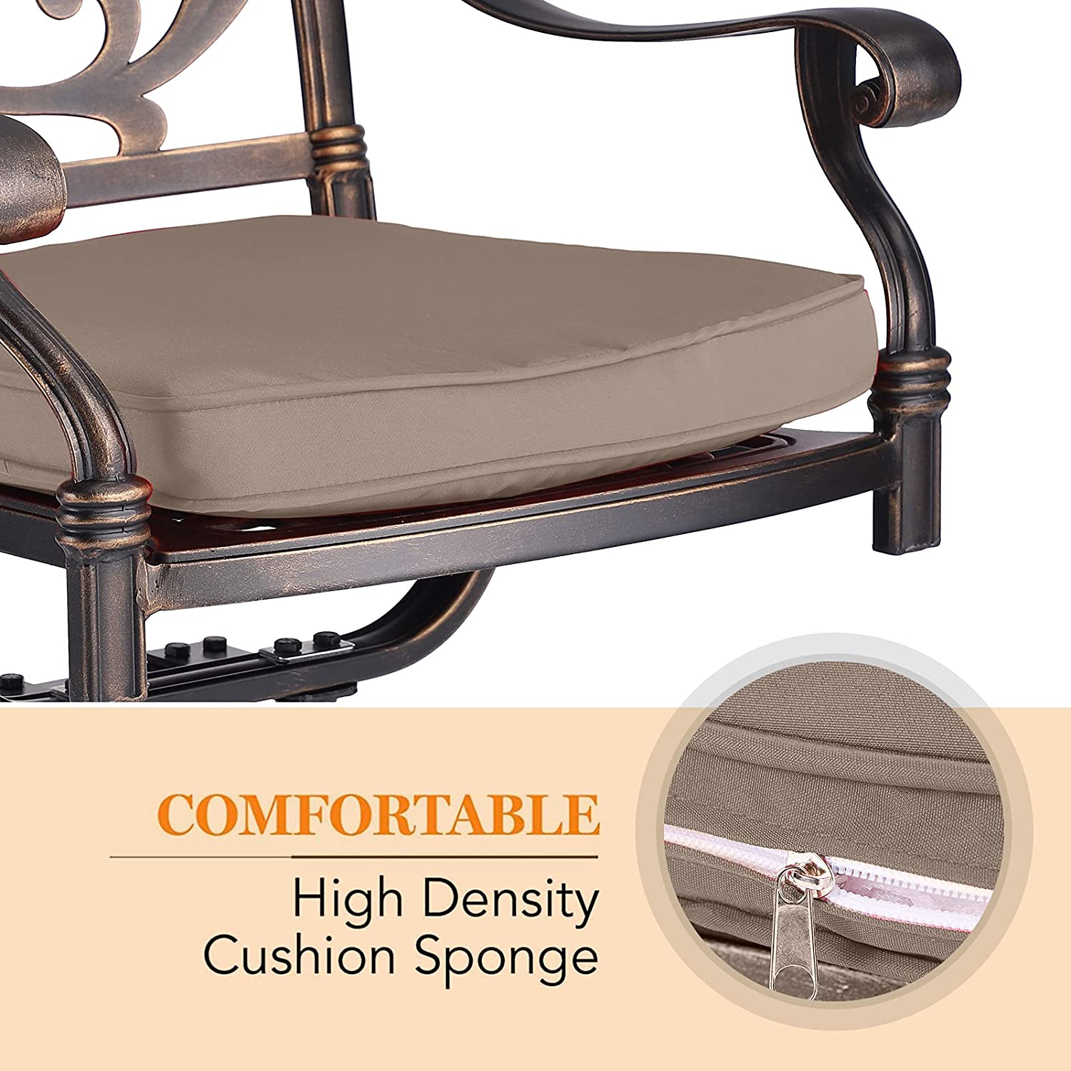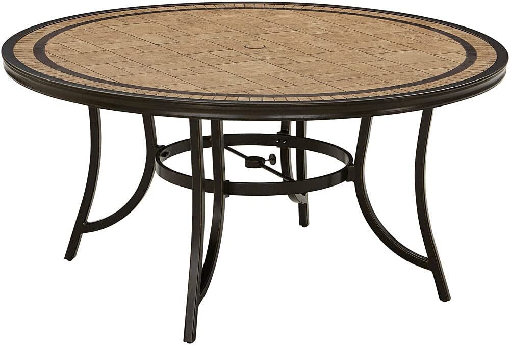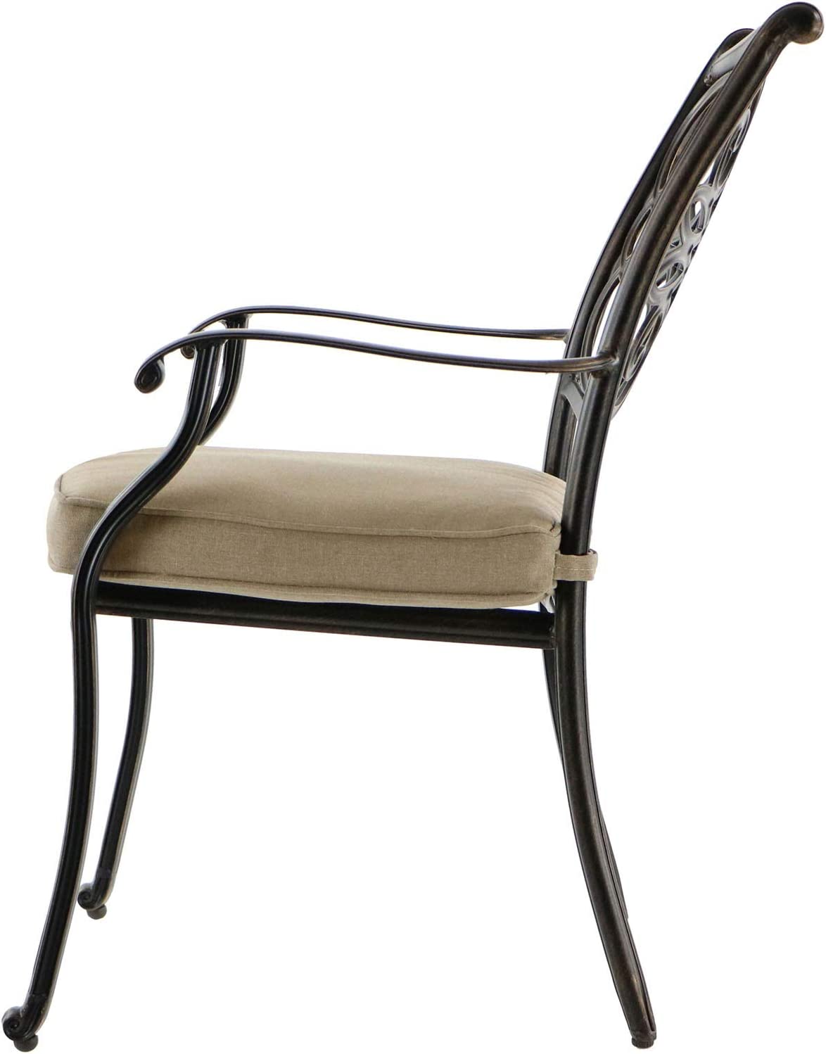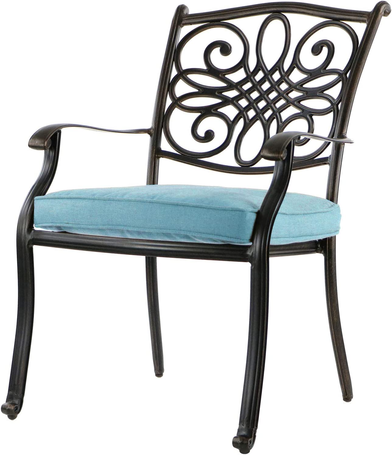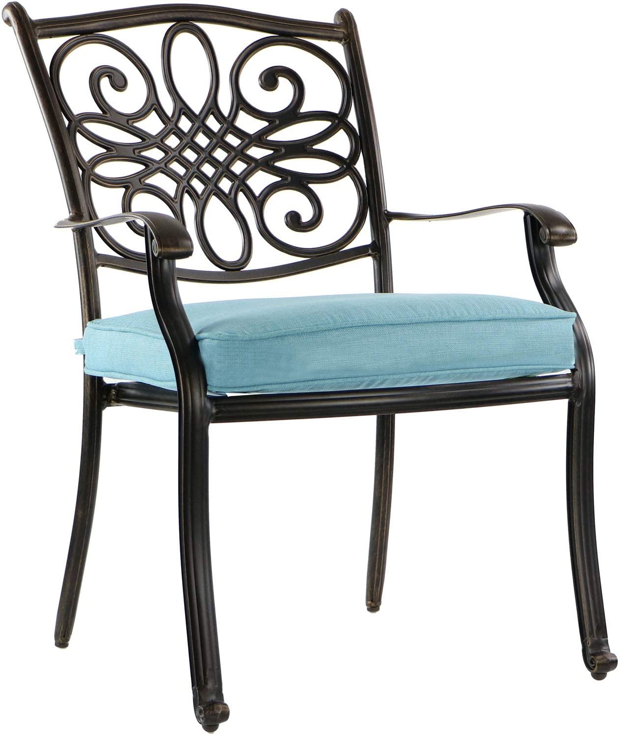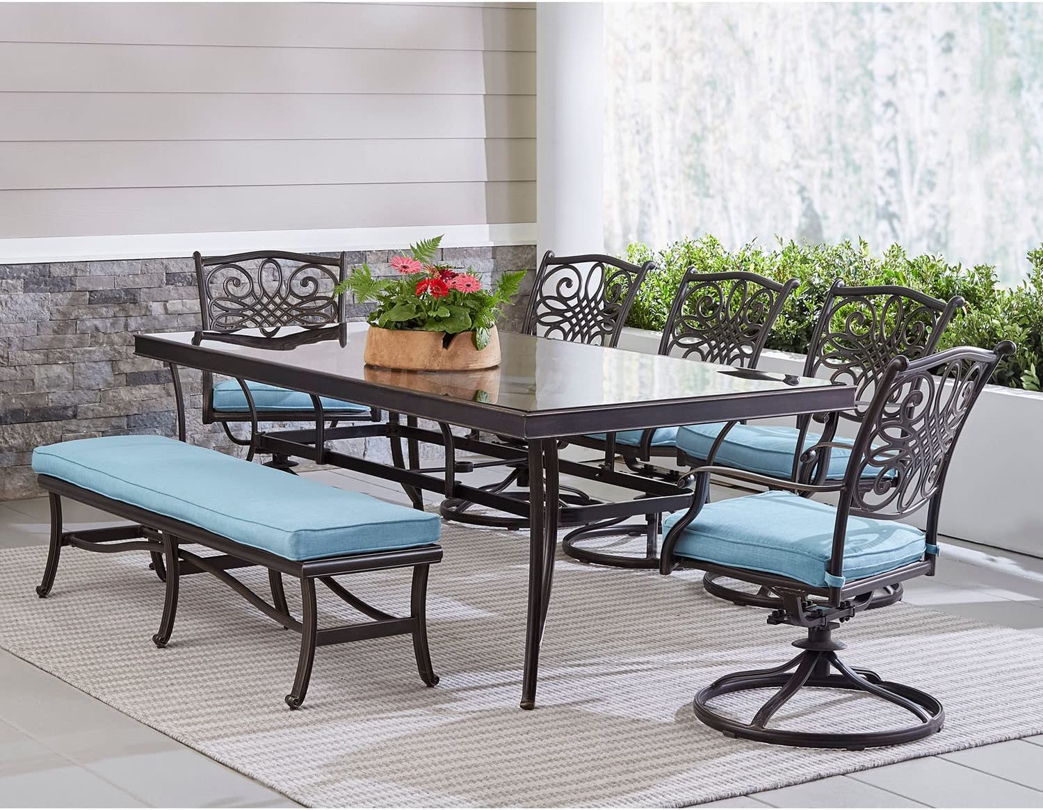 Hanover 7-Piece Tan with a 60 Cast-top Six Traditions Rust-Free Outdoor Patio Set Cushions, 6 Swivel Rockers and Aluminum Round Dining Table