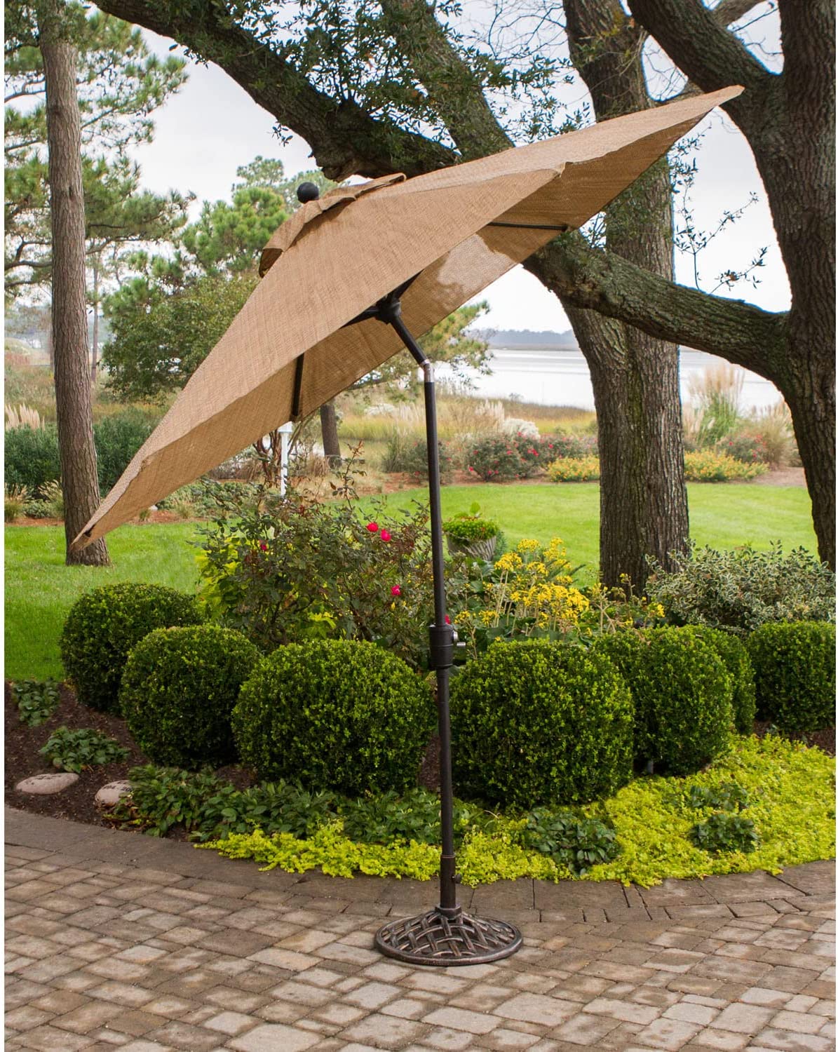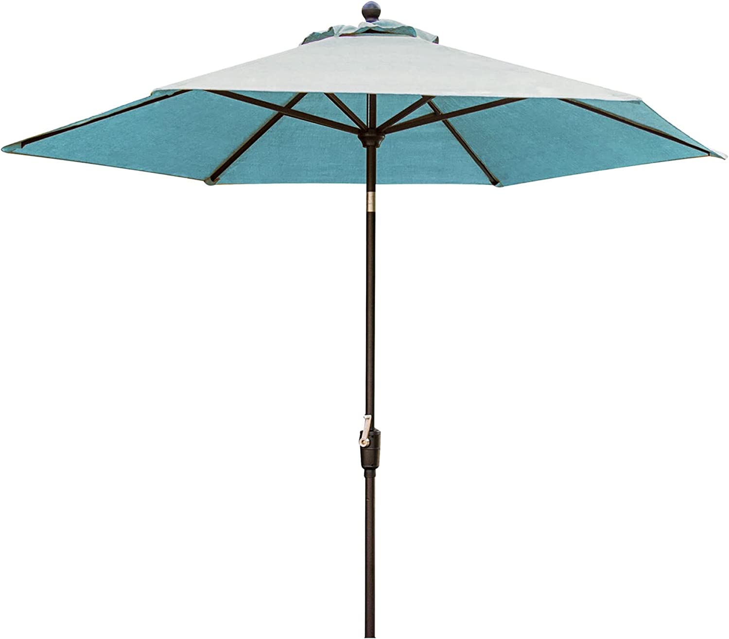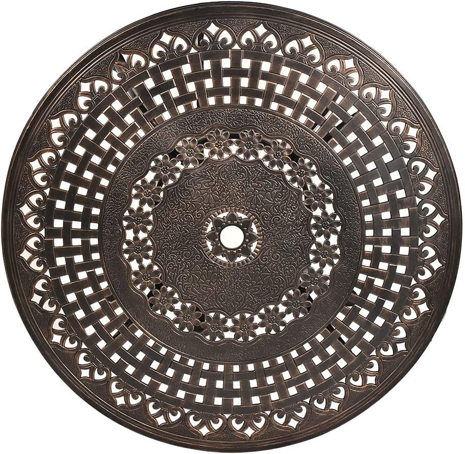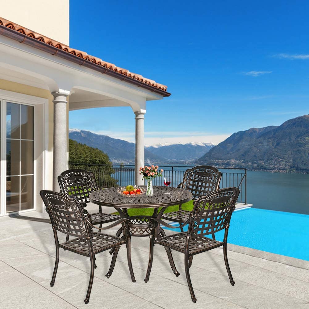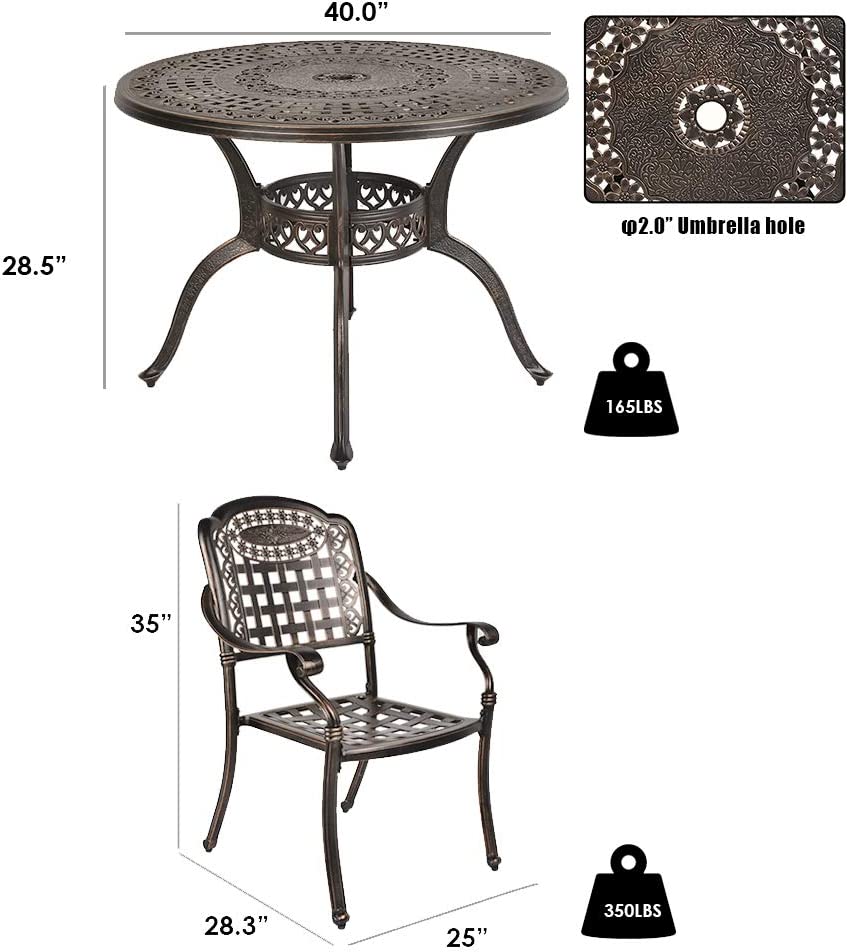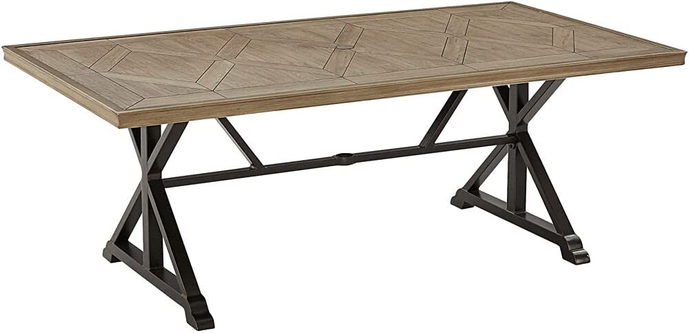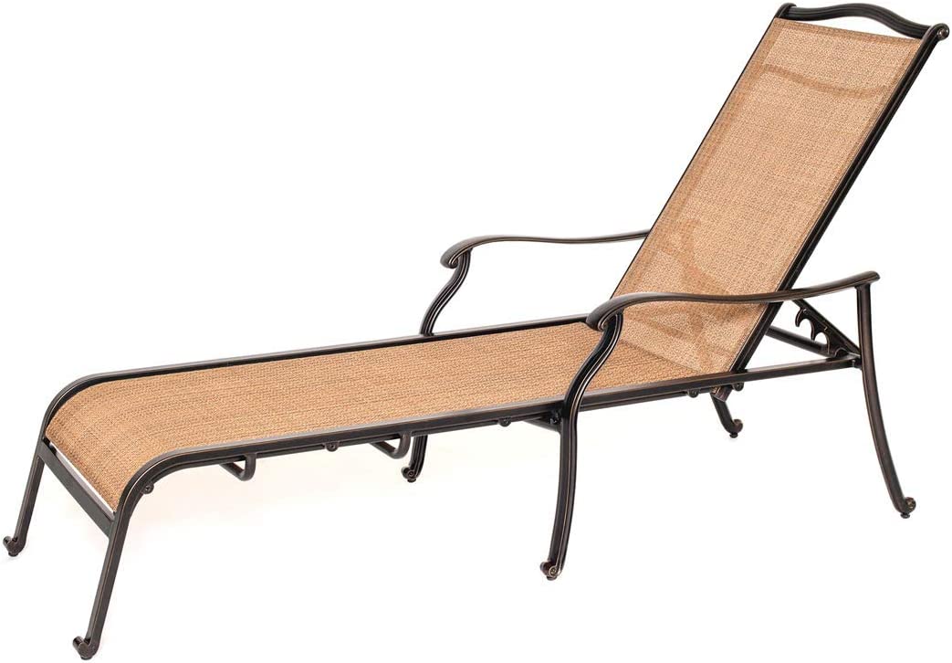 Hanover 7-Piece Tan with a 60 Cast-top Six Traditions Rust-Free Outdoor Patio Set Cushions, 6 Swivel Rockers and Aluminum Round Dining Table