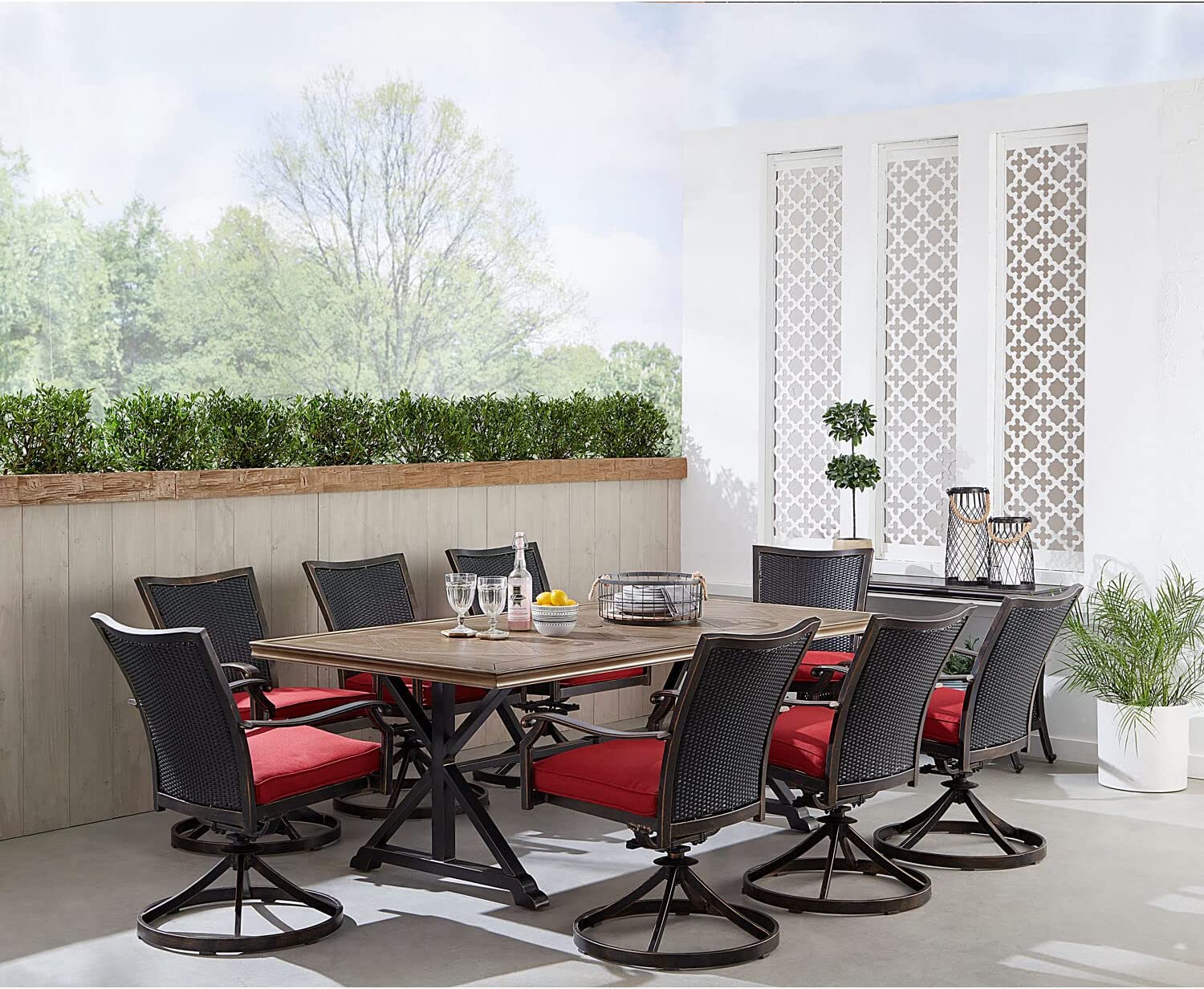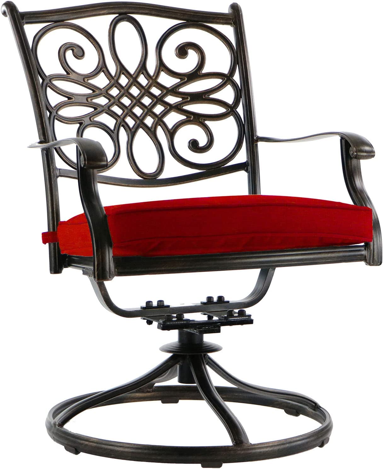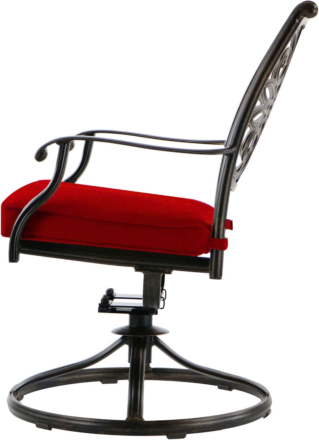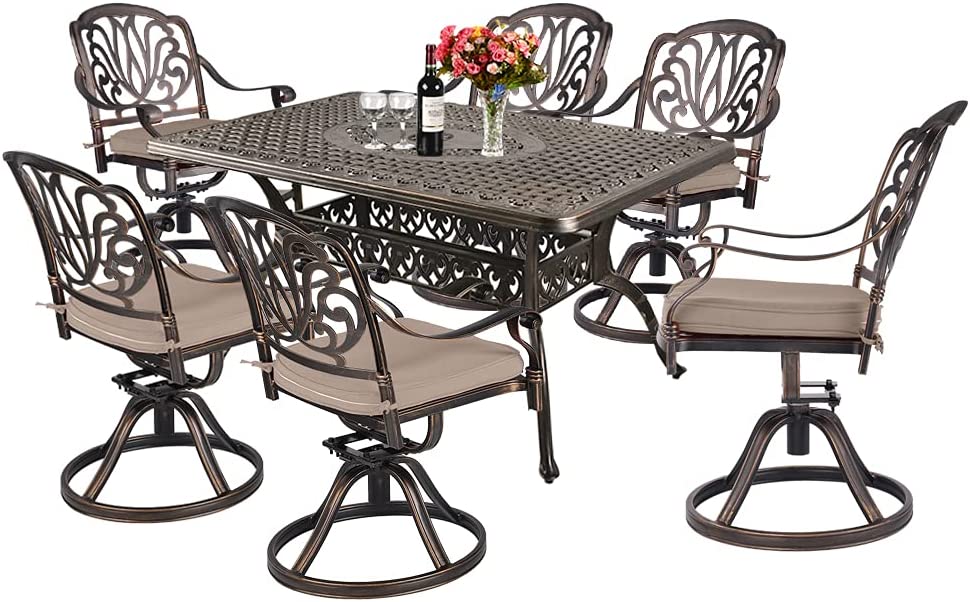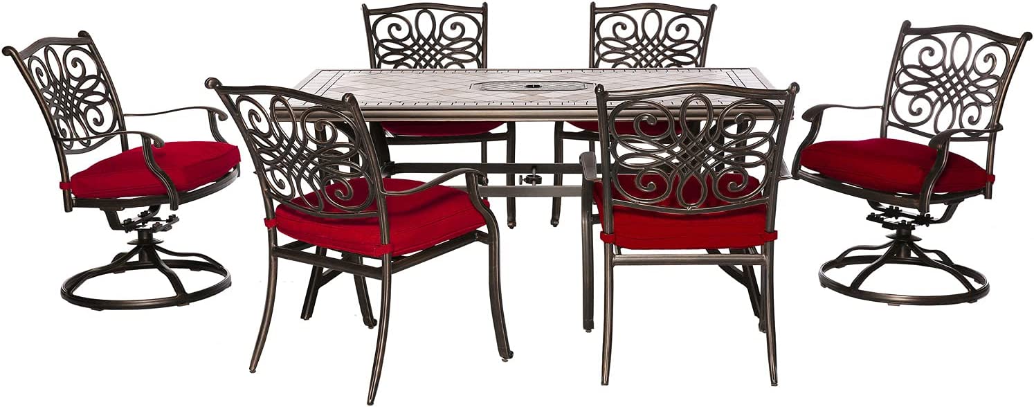 7 Piece Patio Dining Set, 6 Swivel Outdoor Dining Chairs with Cushion and 1 Rectangle Patio Dining Table, Outdoor Metal Furniture Set for Poolside, Backyard, Garden (Red Cushions)