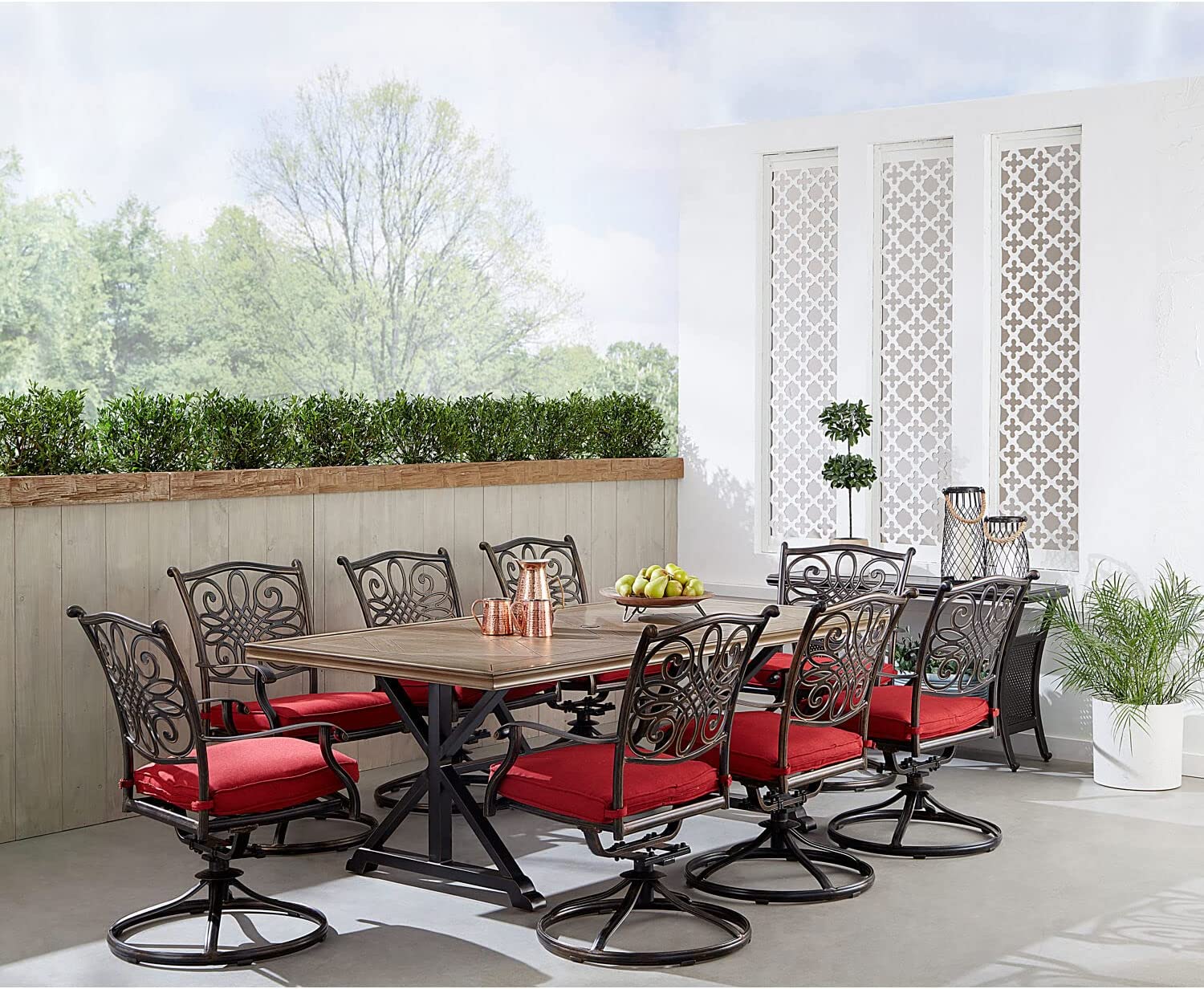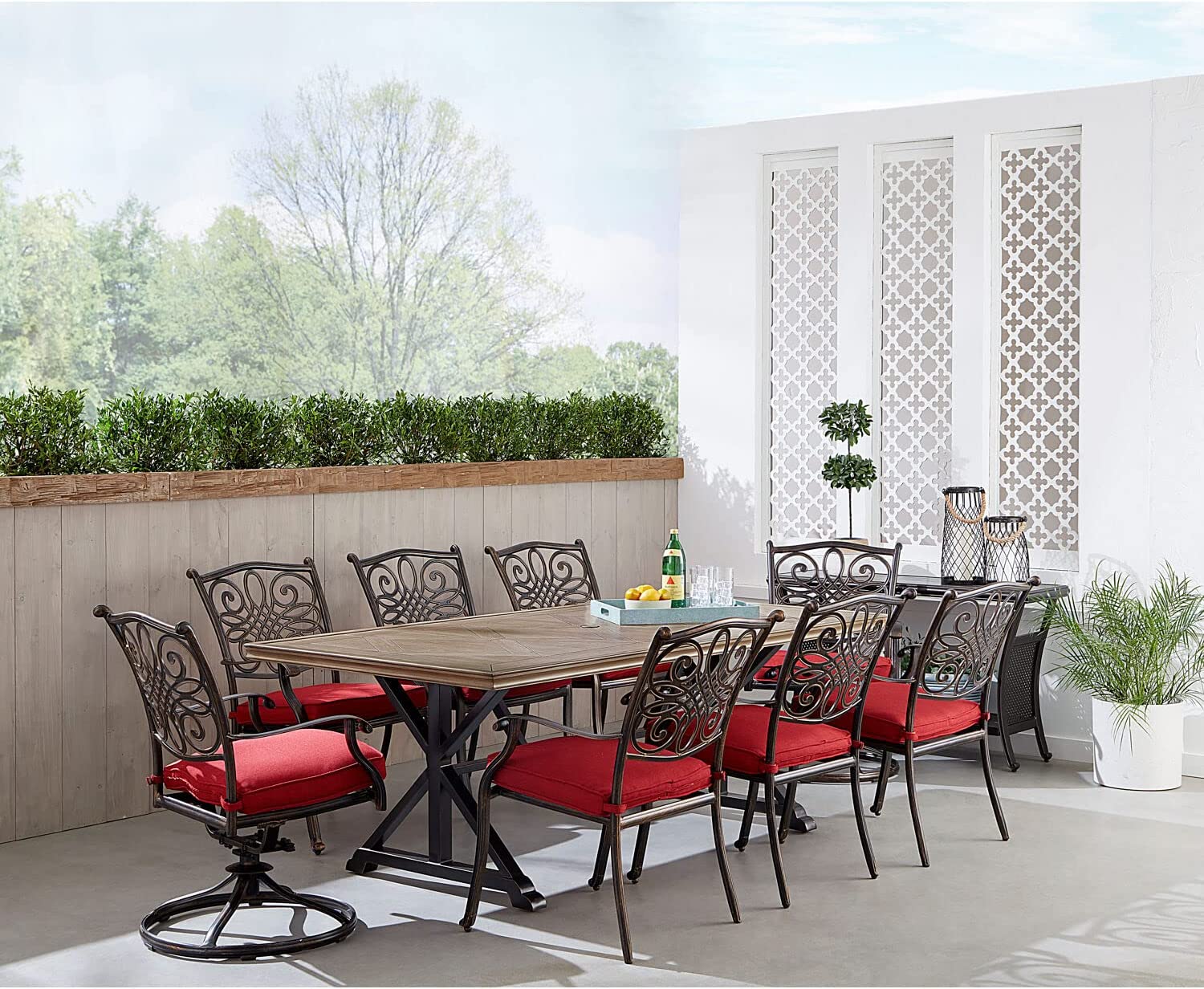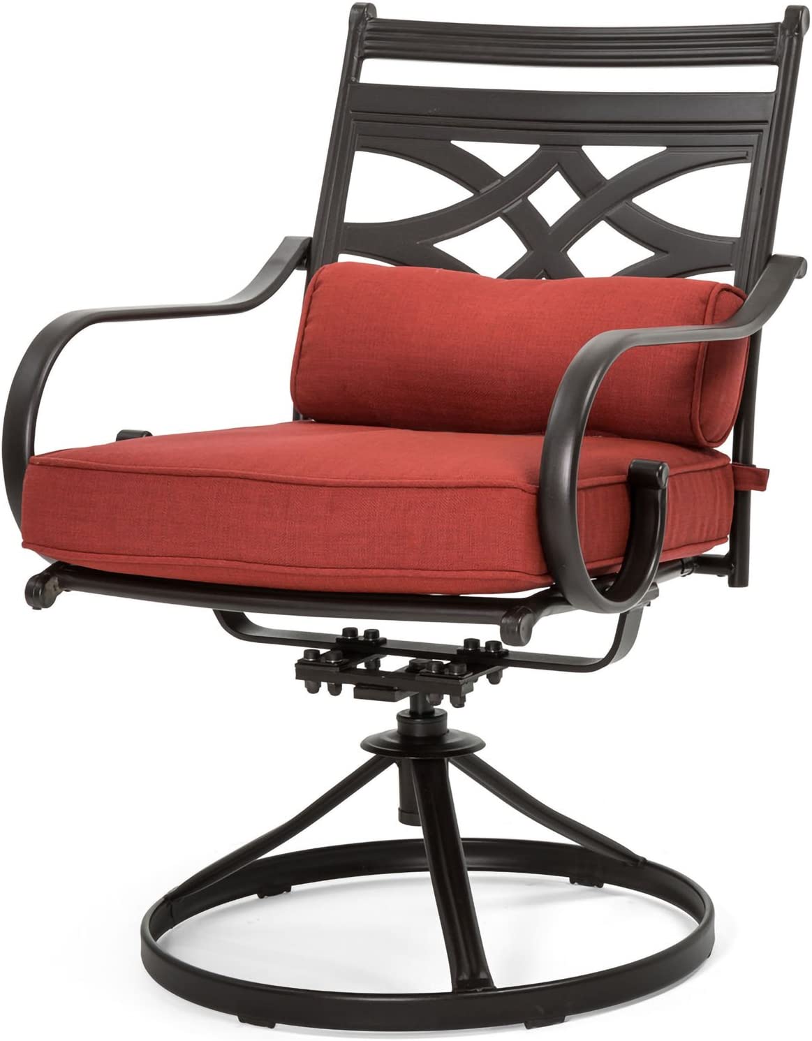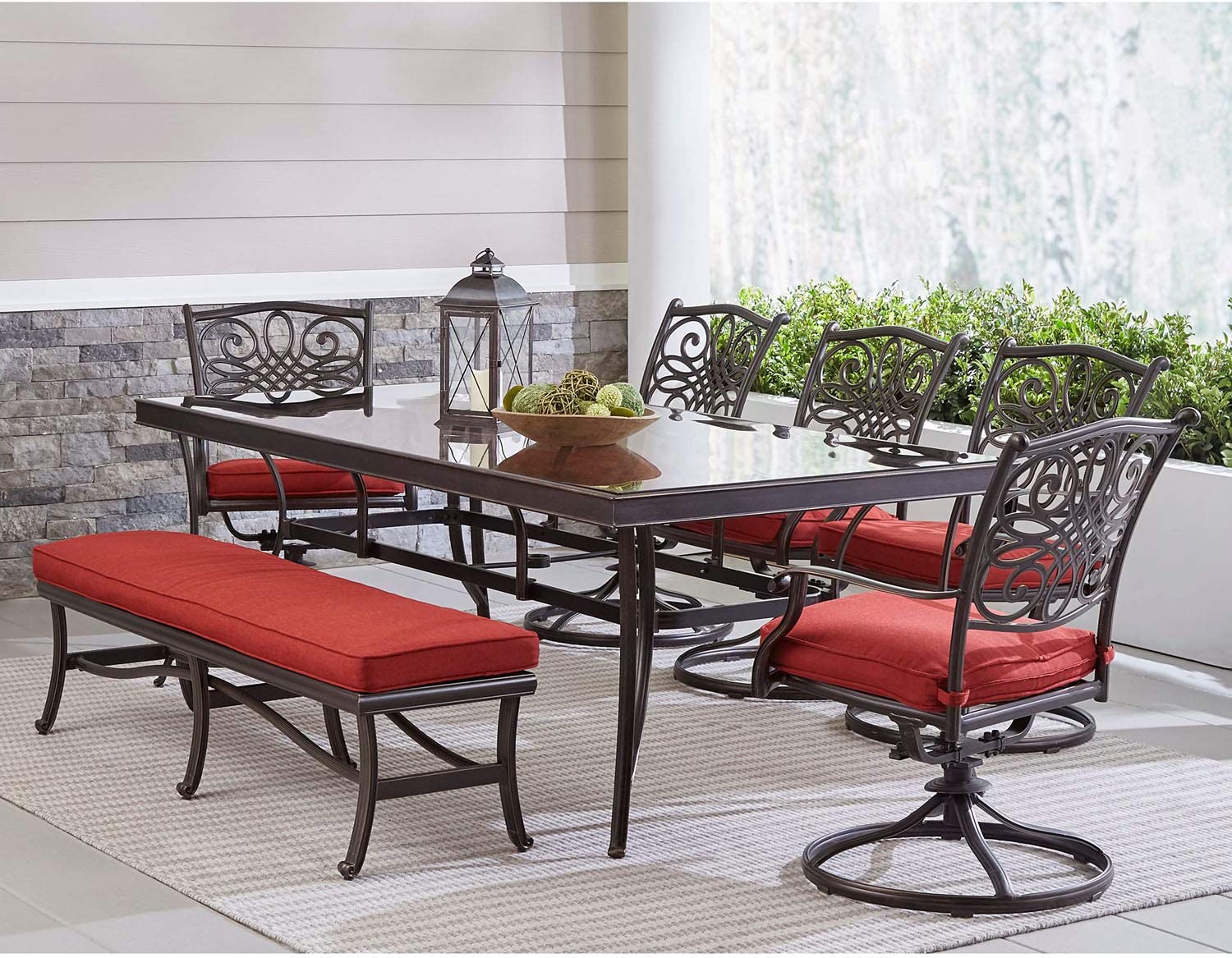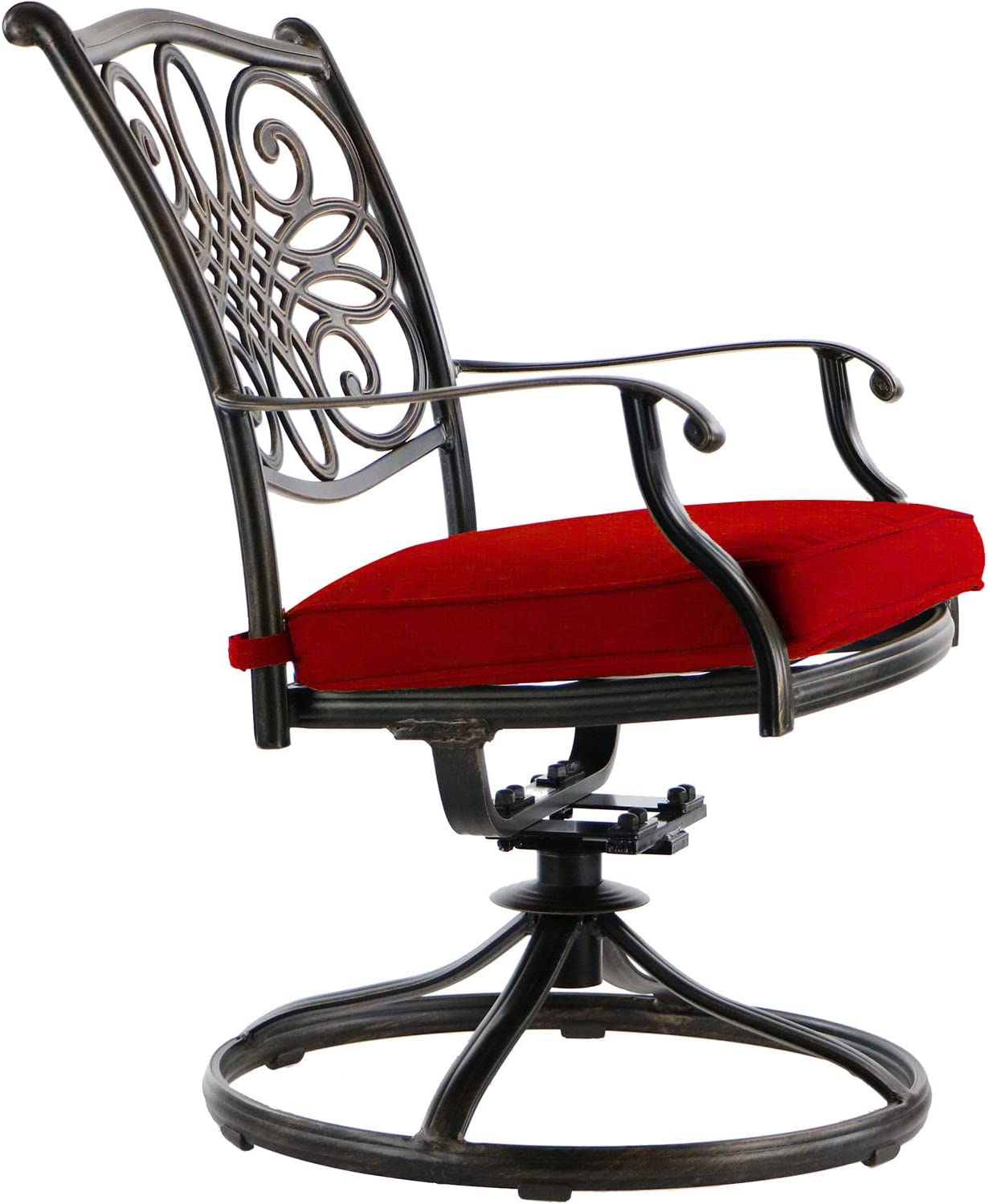 7 Piece Patio Dining Set, 6 Swivel Outdoor Dining Chairs with Cushion and 1 Rectangle Patio Dining Table, Outdoor Metal Furniture Set for Poolside, Backyard, Garden (Red Cushions)
