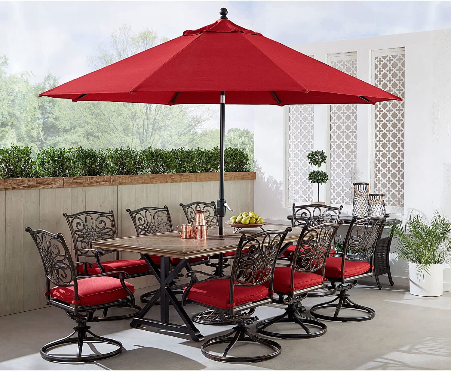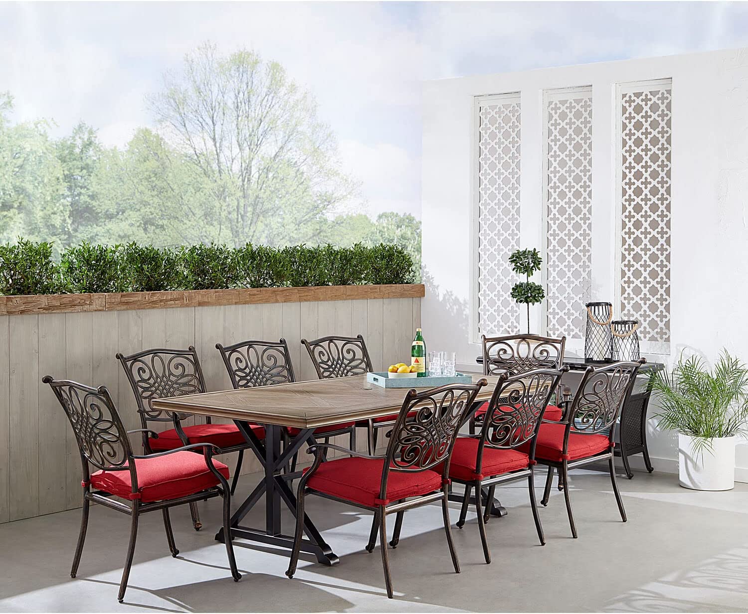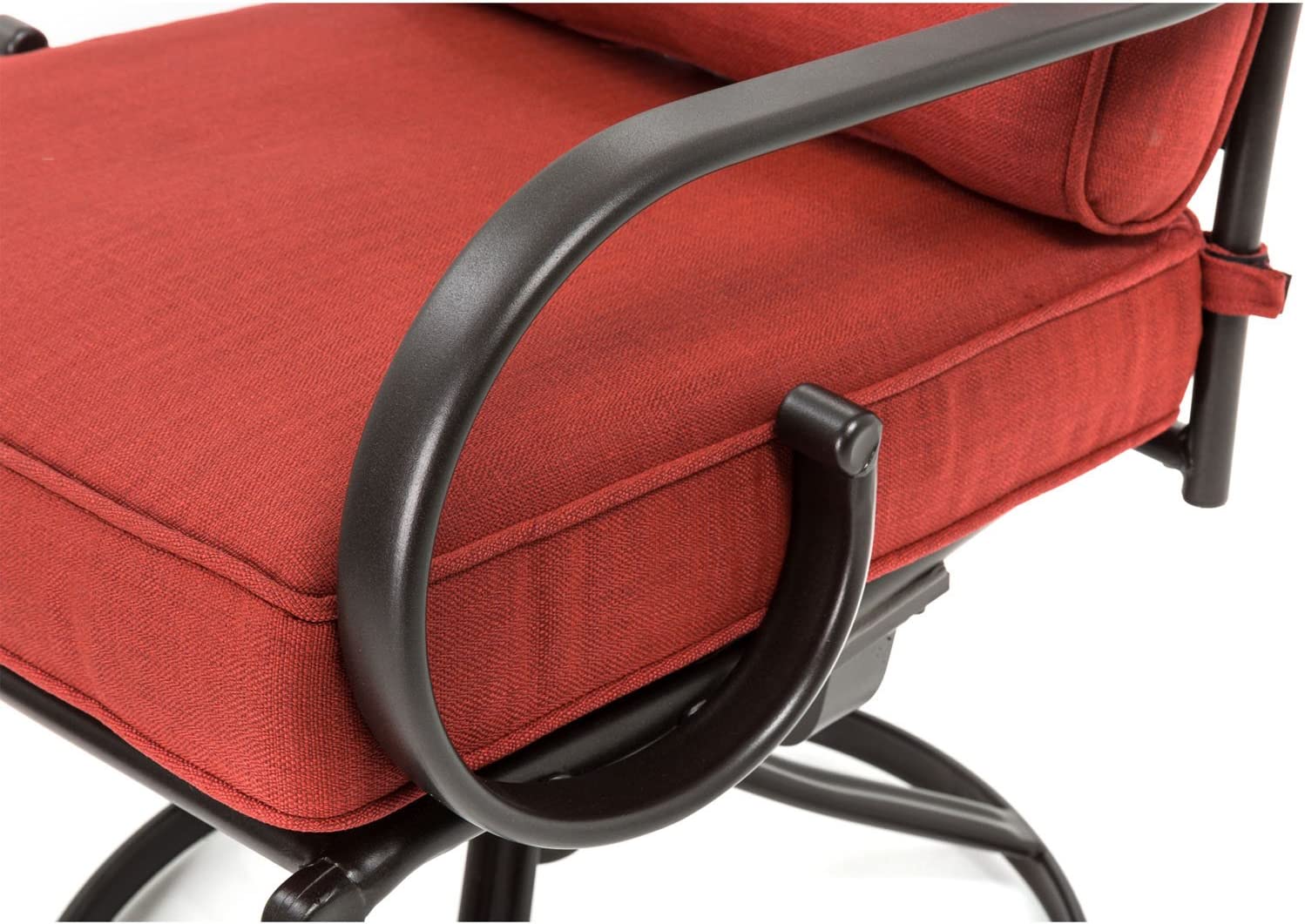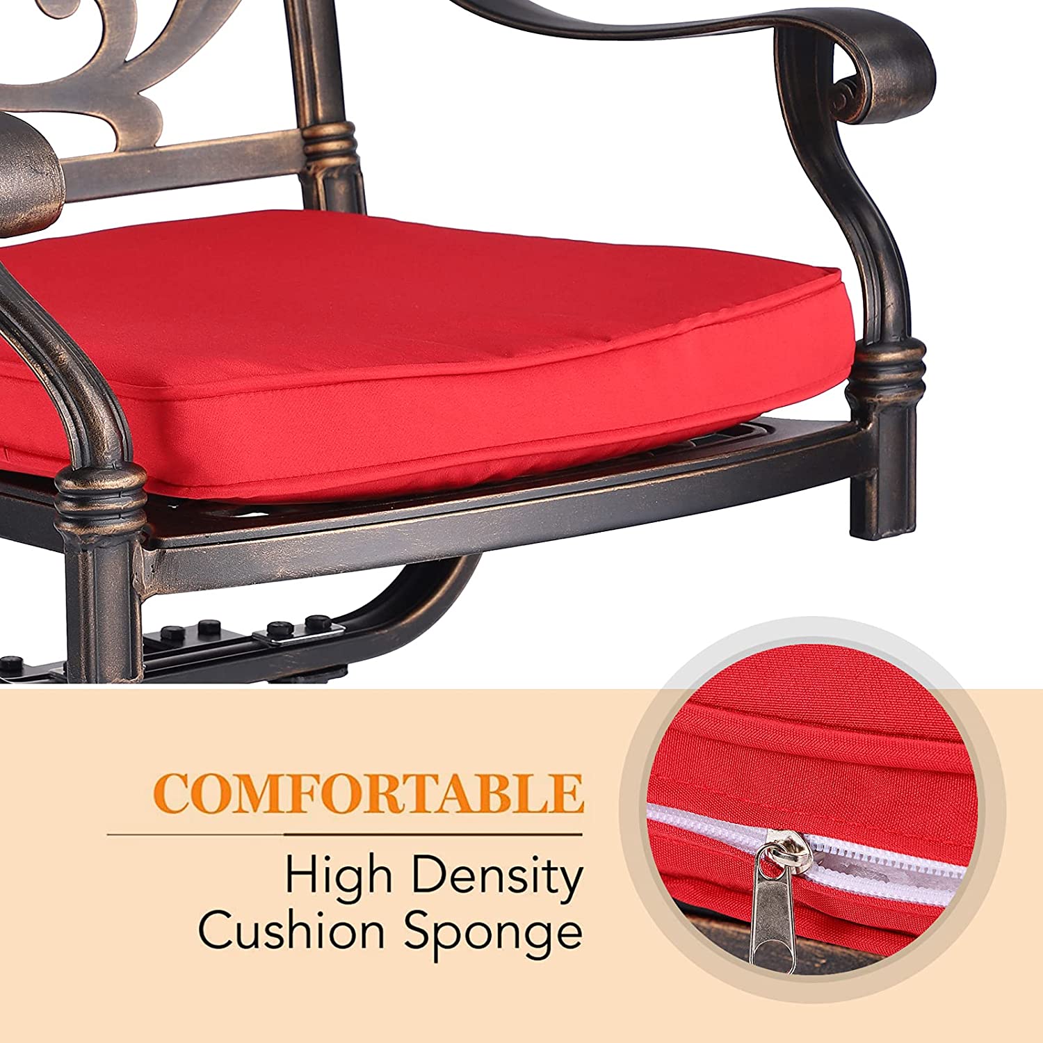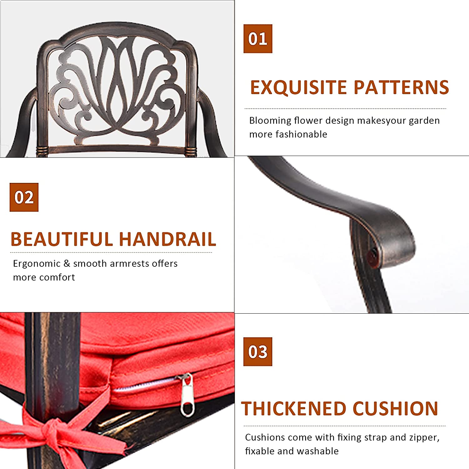 7 Piece Patio Dining Set, 6 Swivel Outdoor Dining Chairs with Cushion and 1 Rectangle Patio Dining Table, Outdoor Metal Furniture Set for Poolside, Backyard, Garden (Red Cushions)