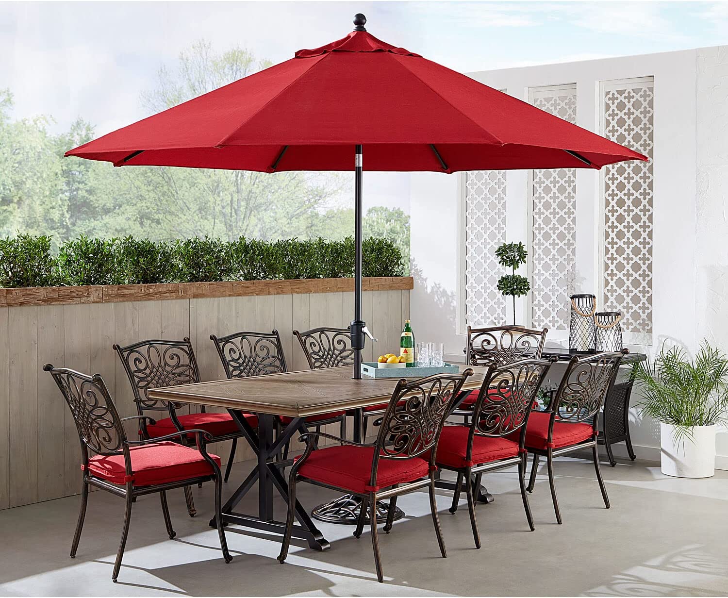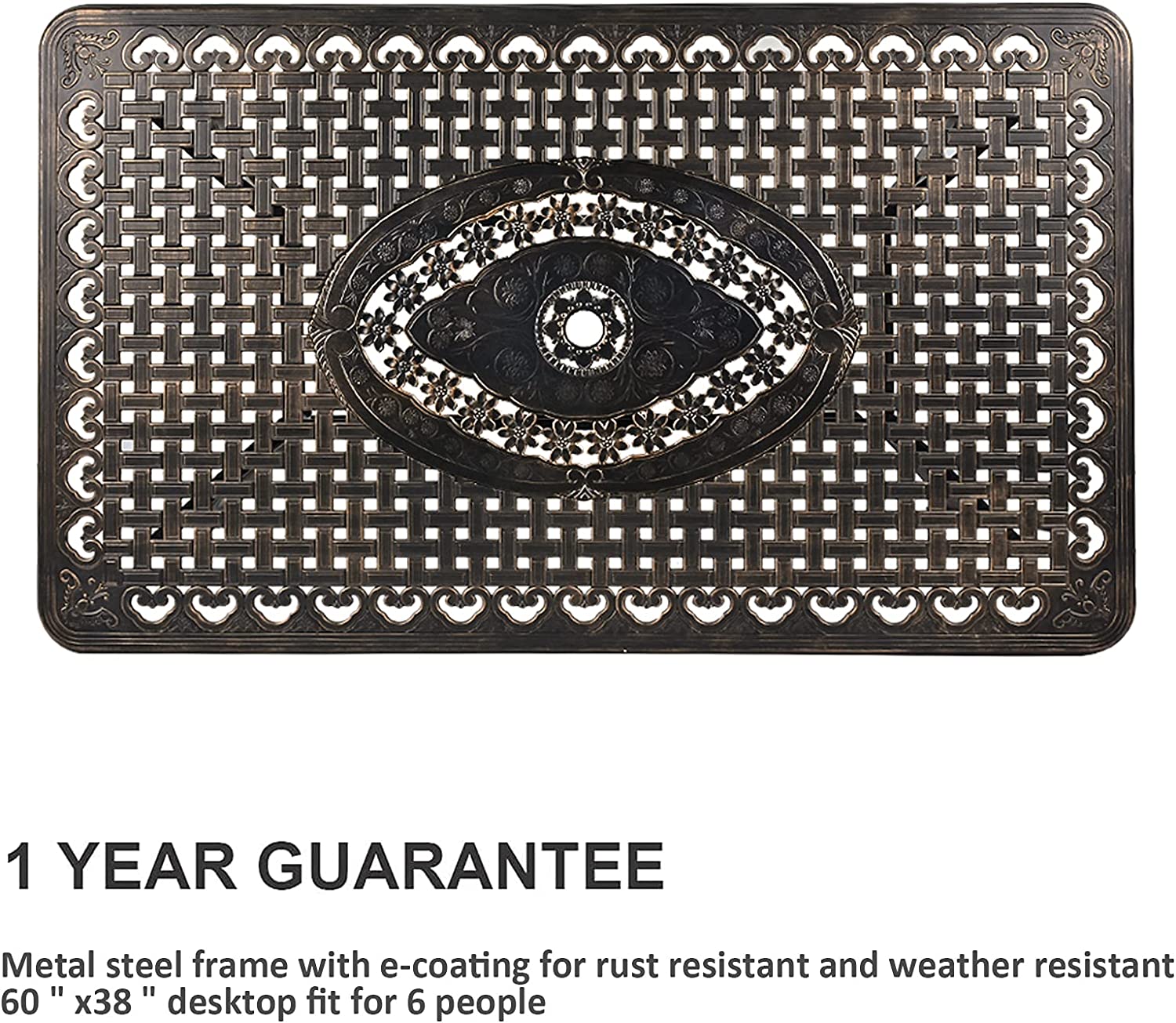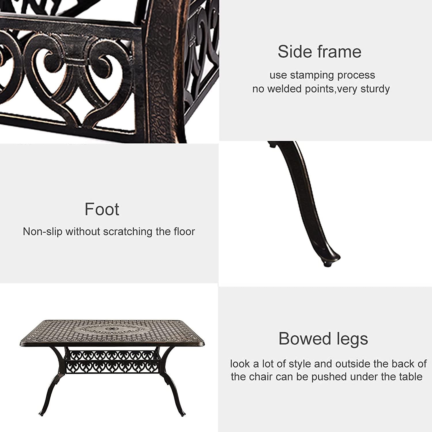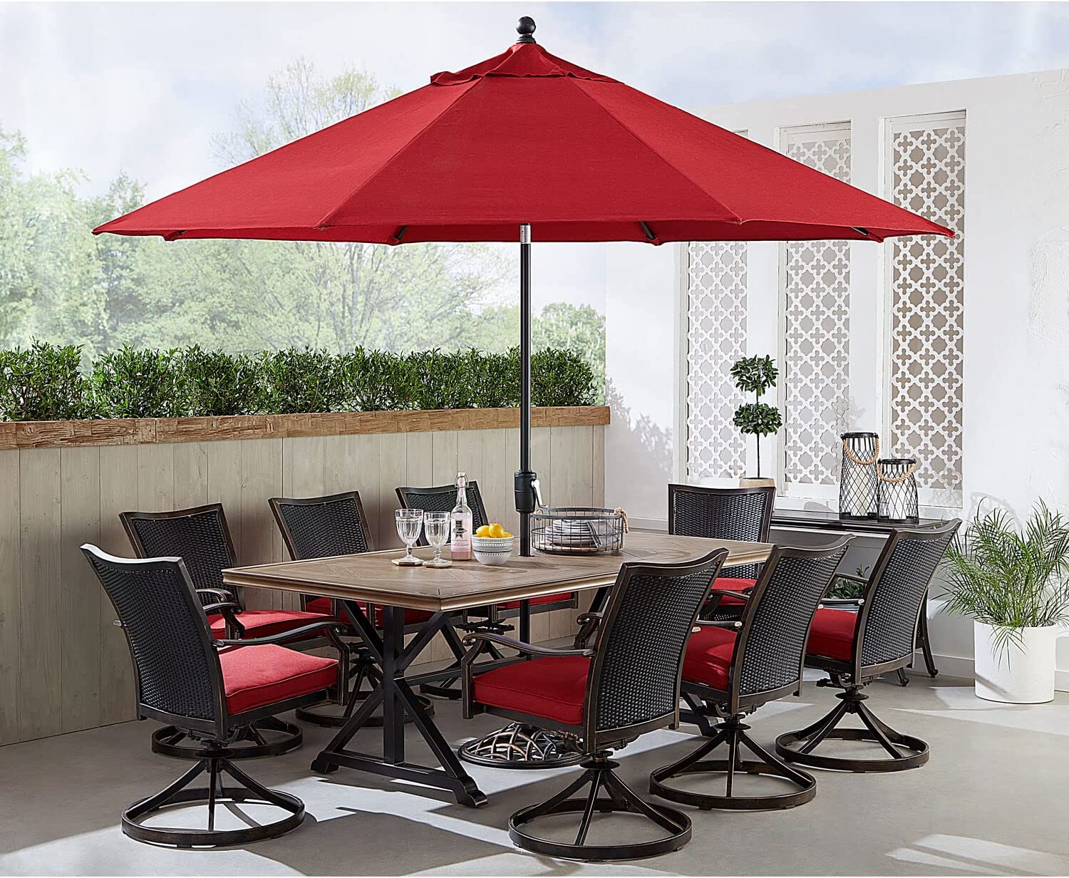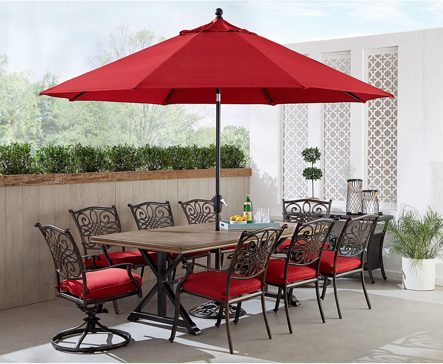7 Piece Patio Dining Set, 6 Swivel Outdoor Dining Chairs with Cushion and 1 Rectangle Patio Dining Table, Outdoor Metal Furniture Set for Poolside, Backyard, Garden (Red Cushions)