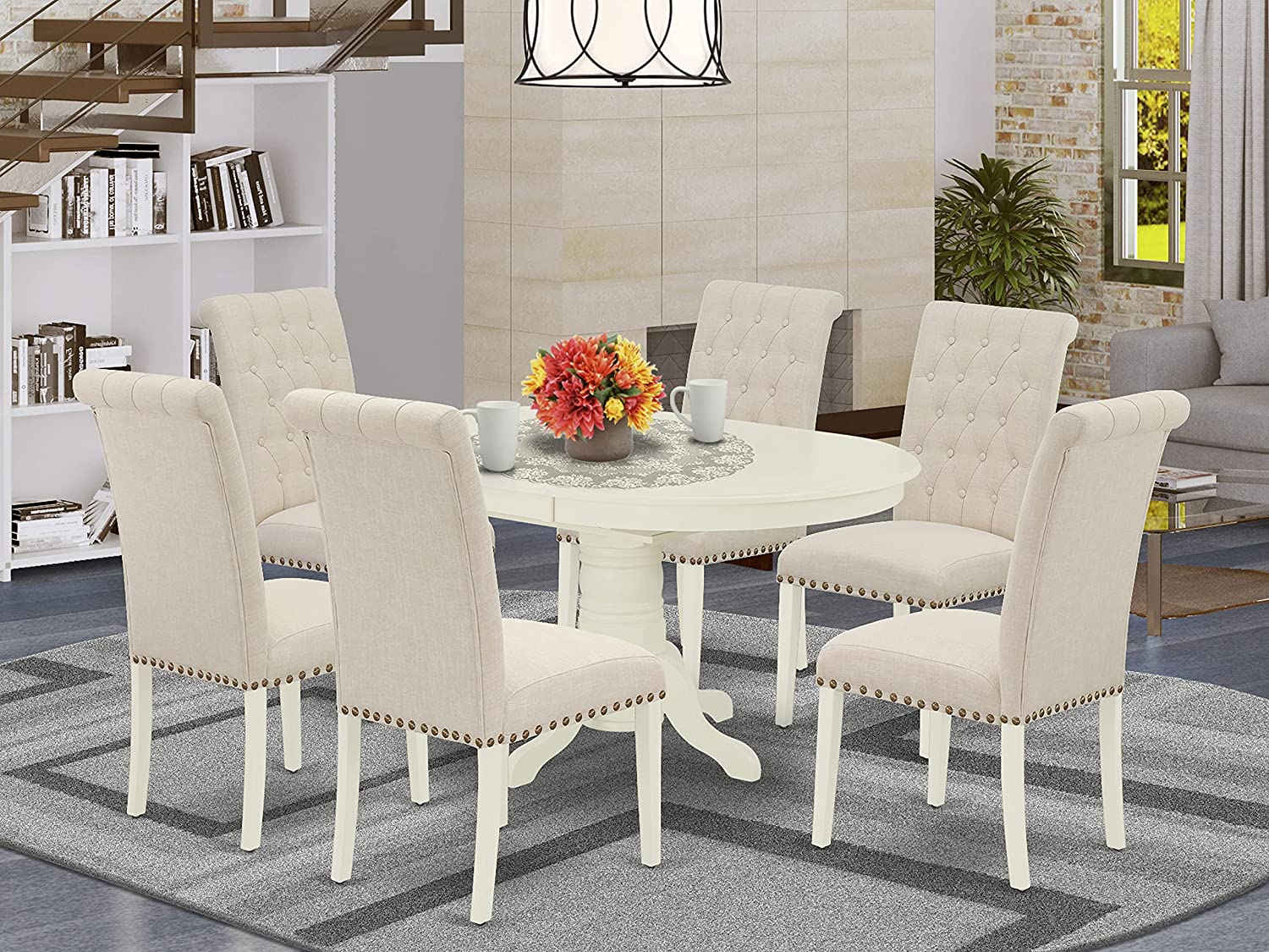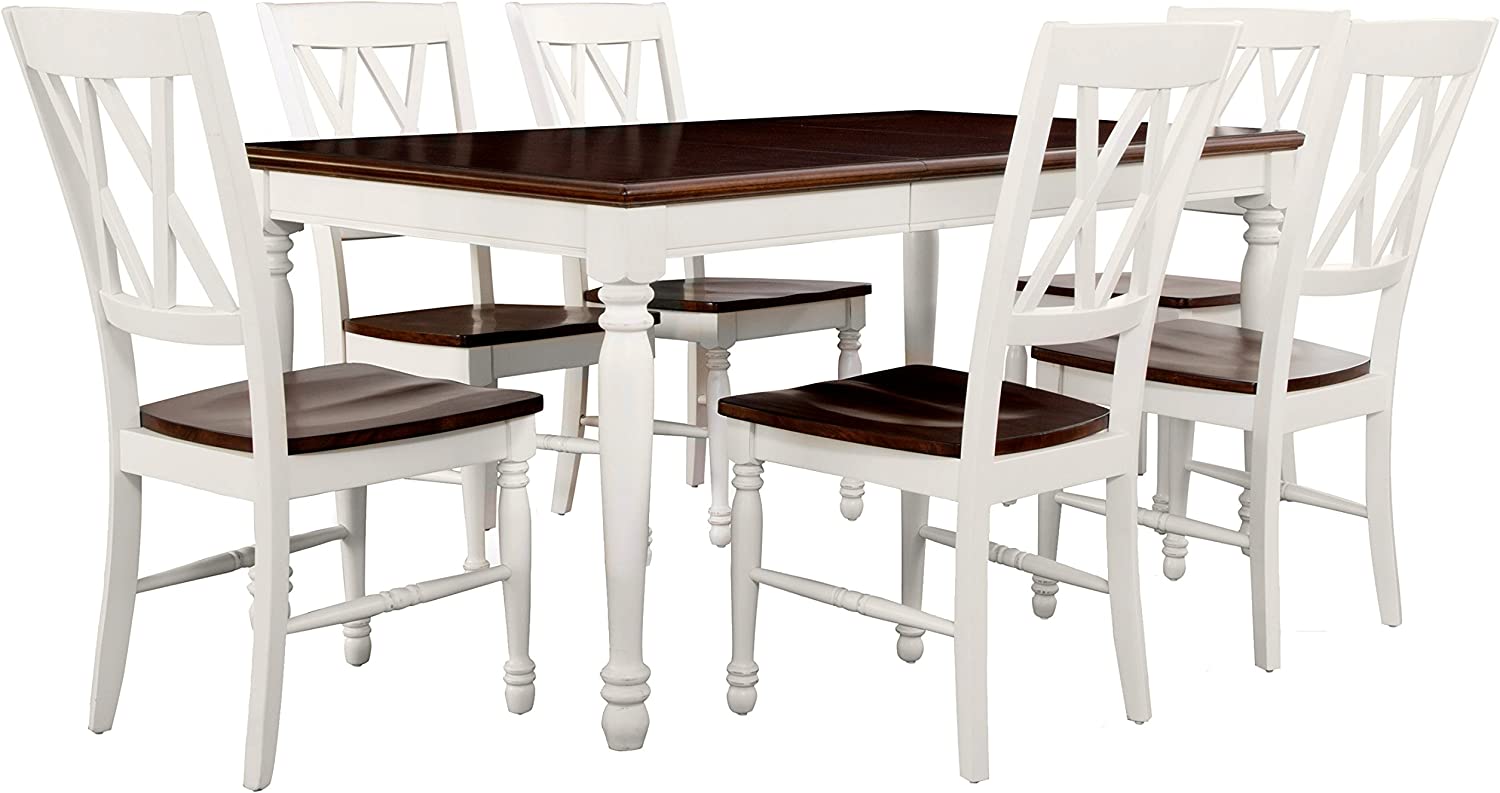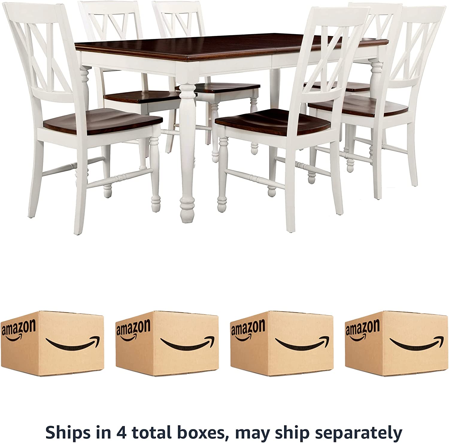 Crosley Furniture Shelby Dining Set with Table and Extension Leaf, 7-Piece (6 Chairs), Distressed White