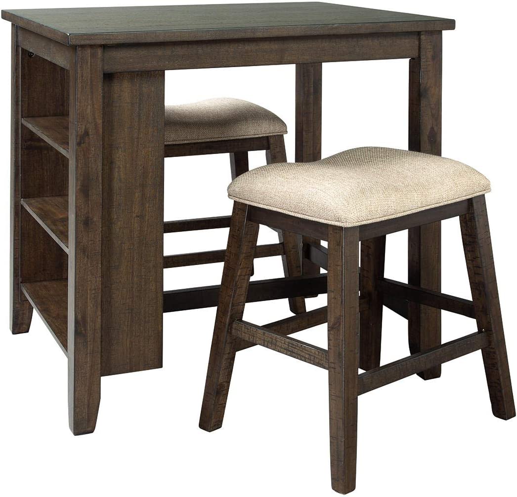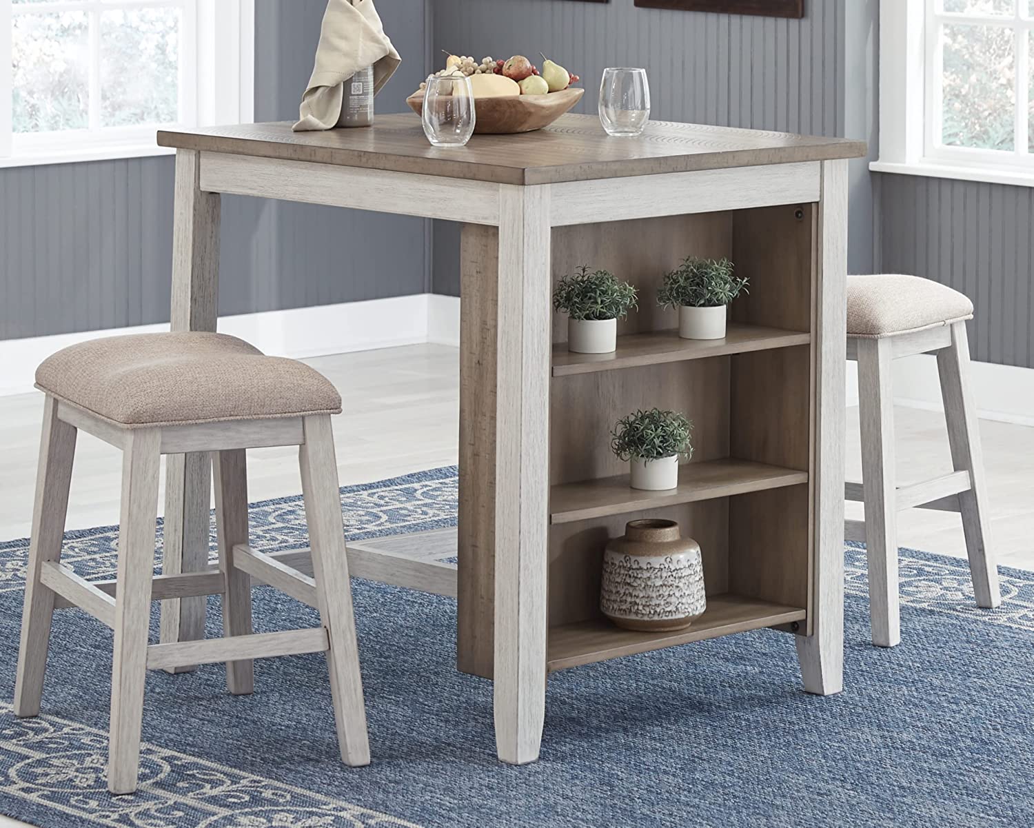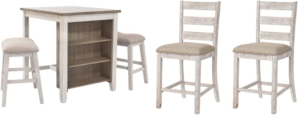 Signature Design by Ashley Skempton 3 Piece Counter Height Dining Set, Includes Table and 2 Barstools, Whitewash