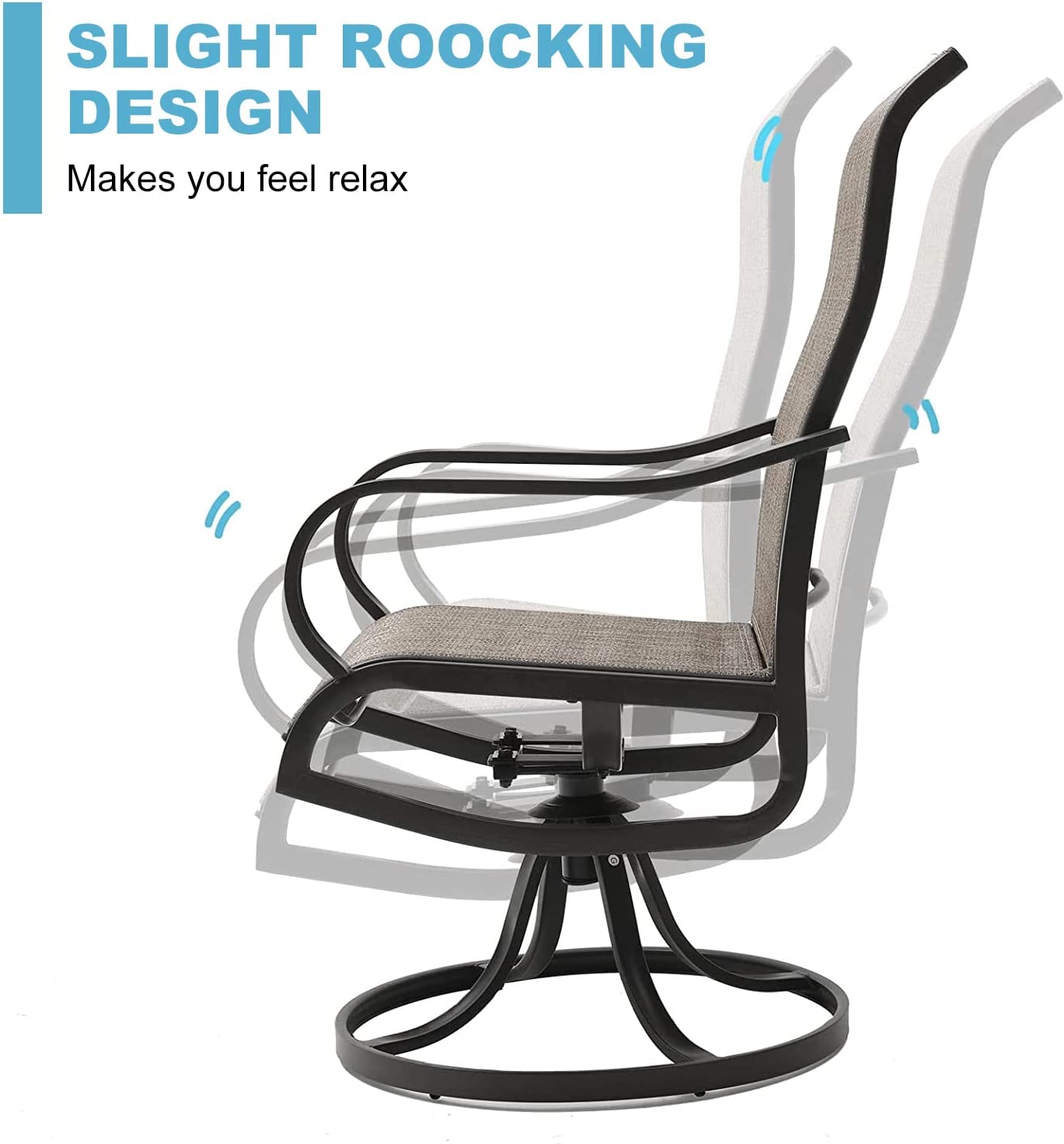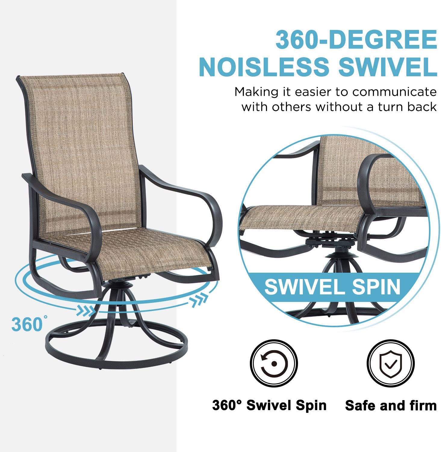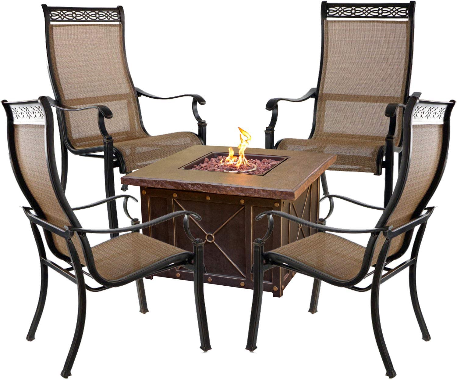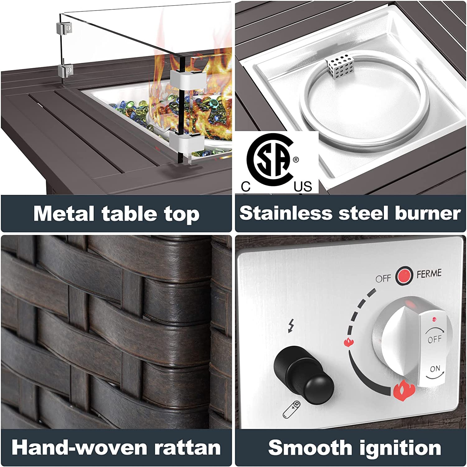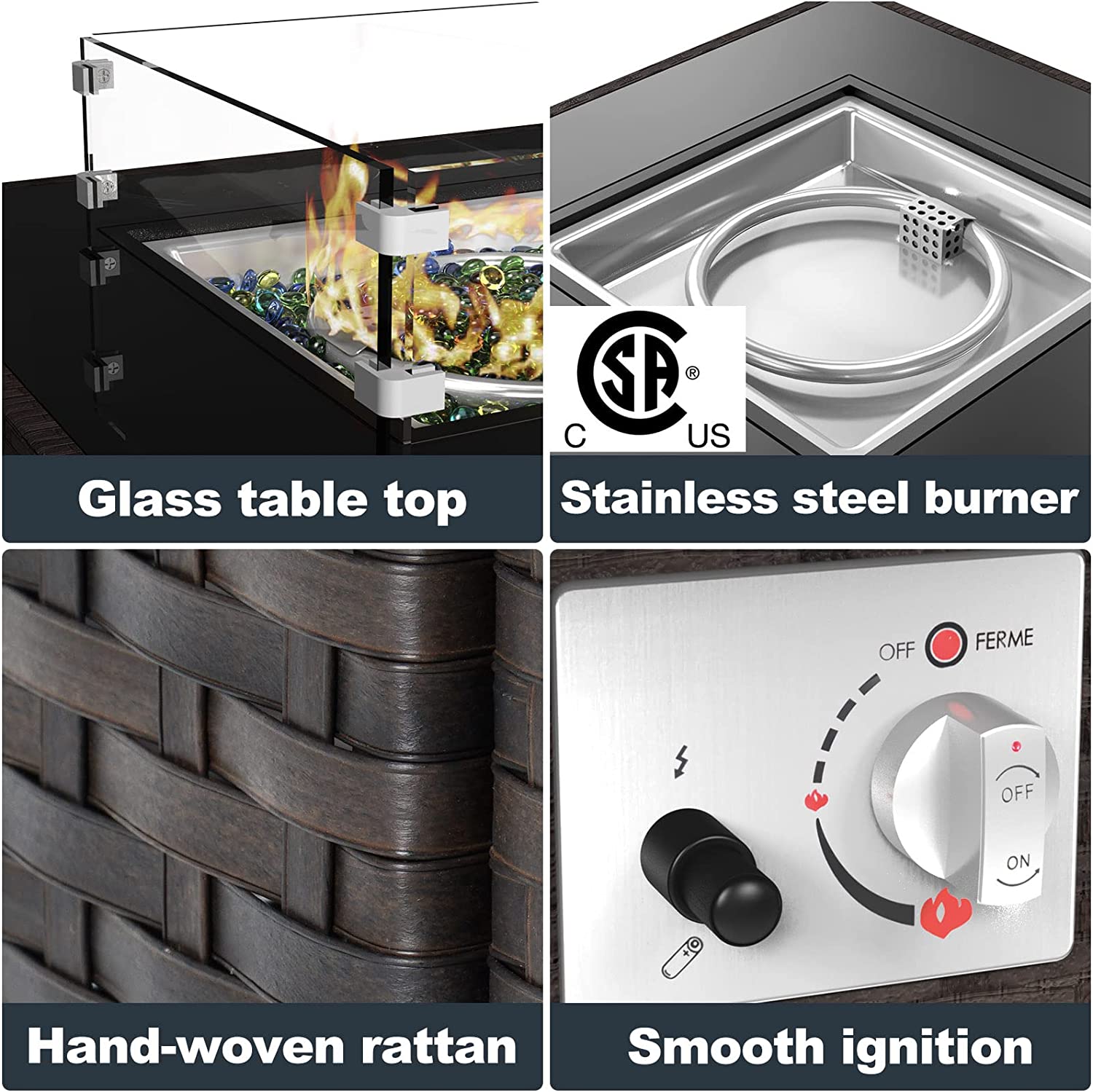VONZOY 5 Piece Outdoor Patio Furniture Set with 32" 50000BTU Gas Propane Fire Pit Table, 4 Swivel Rocking Dining Chairs, Textilene Conversation Set - Glass Table