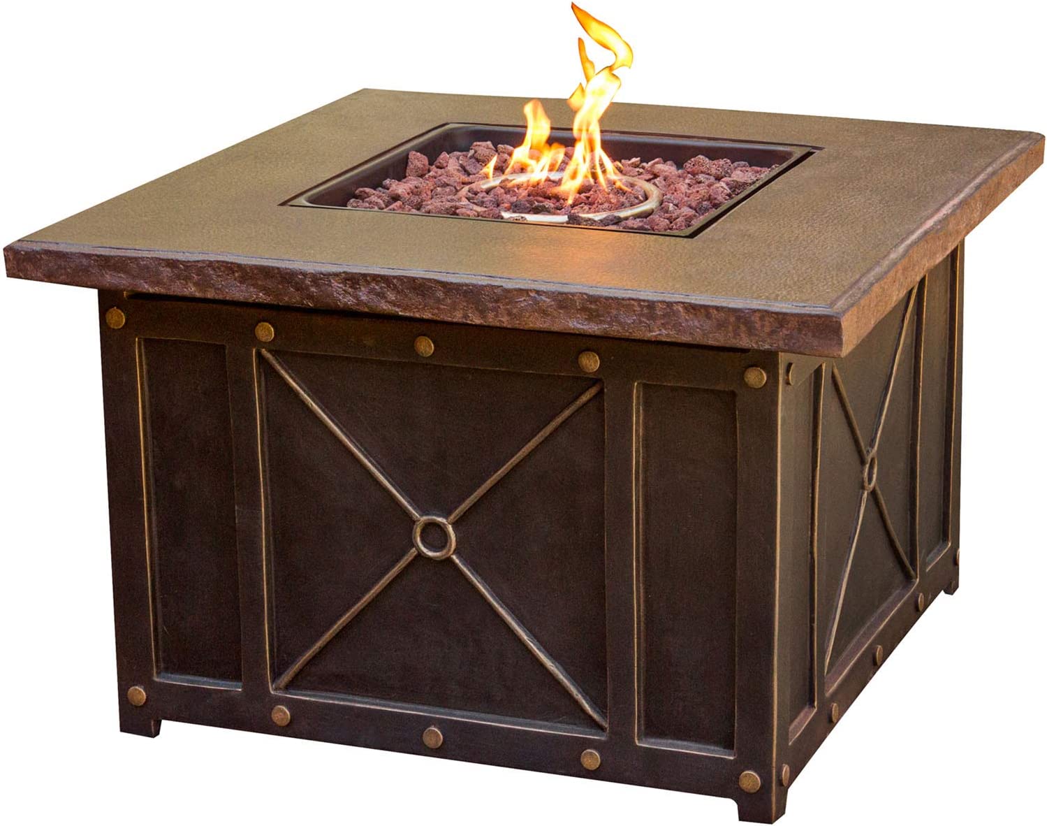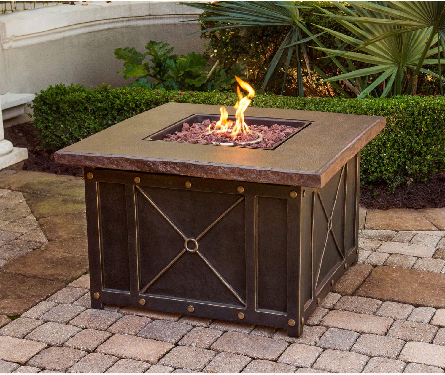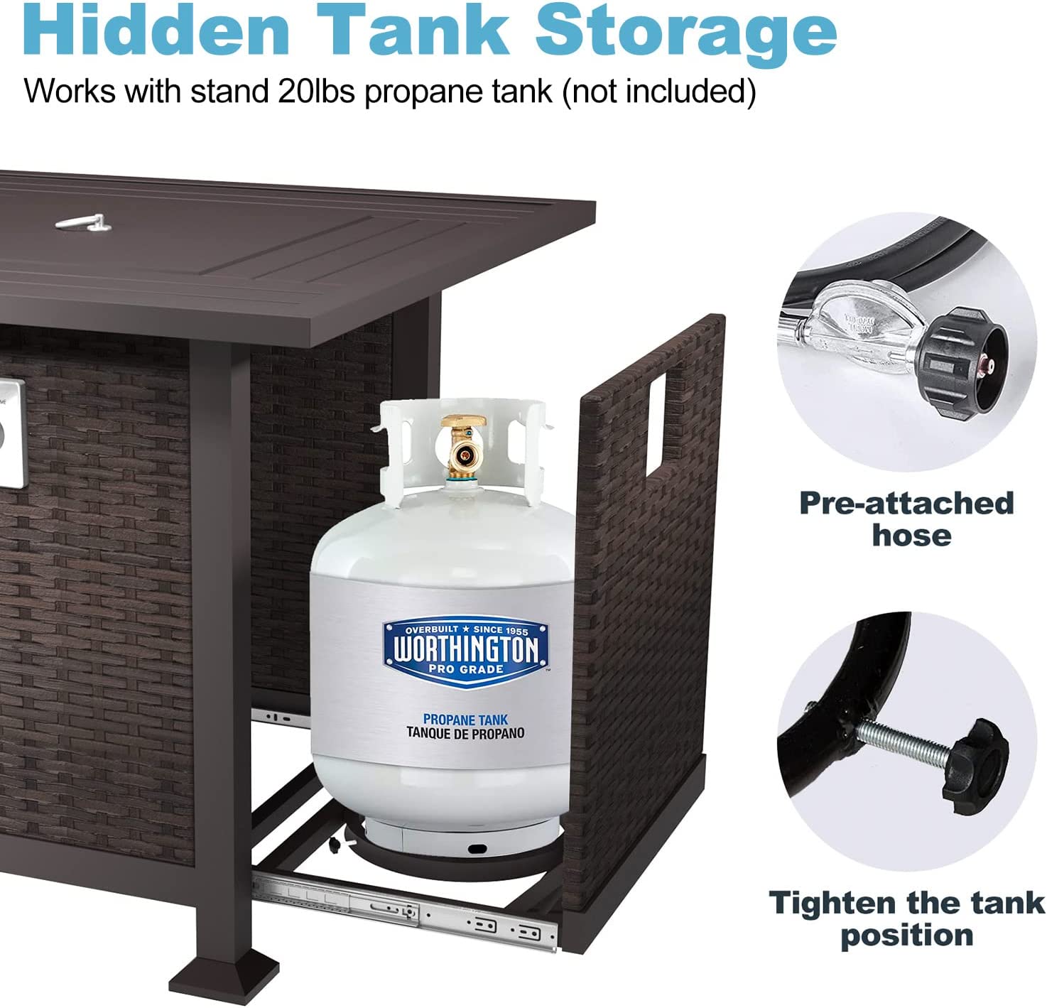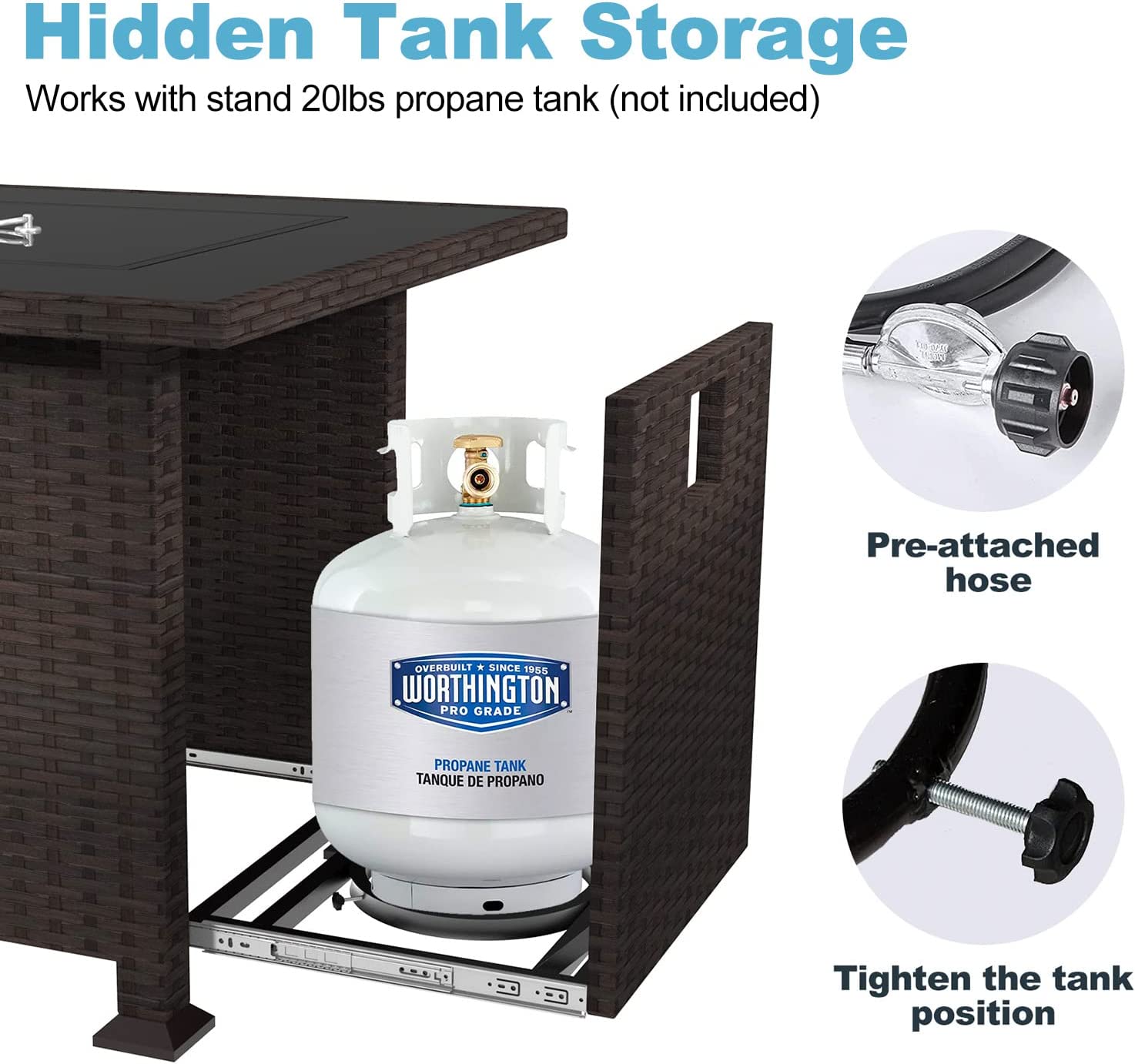 VONZOY 5 Piece Outdoor Patio Furniture Set with 32" 50000BTU Gas Propane Fire Pit Table, 4 Swivel Rocking Dining Chairs, Textilene Conversation Set - Glass Table