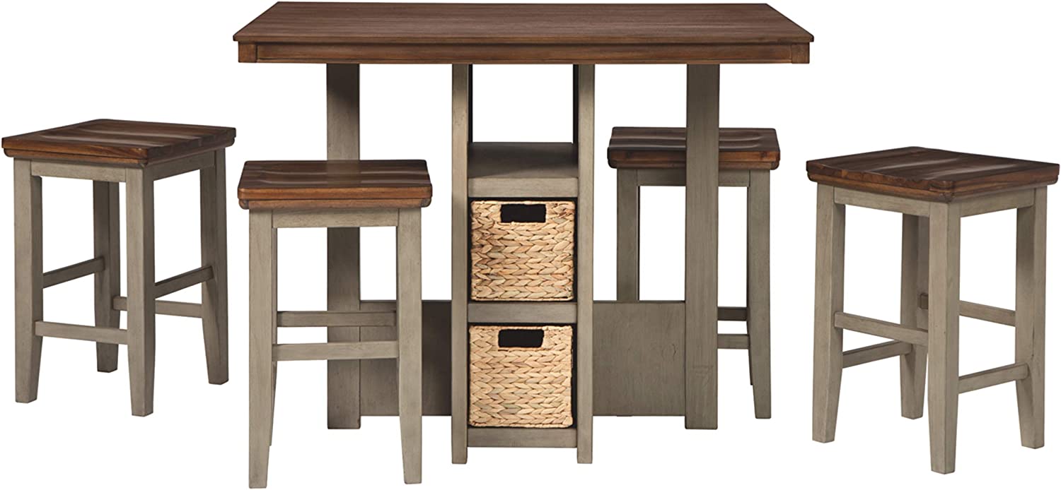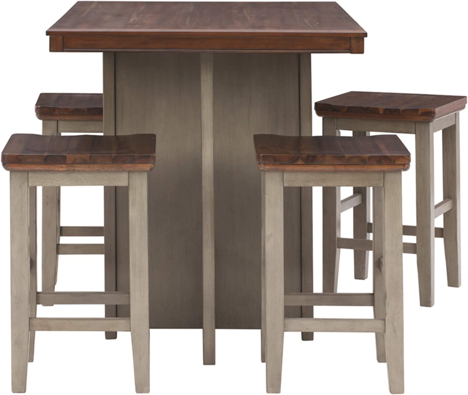 Signature Design by Ashley Lettner Farmhouse 5 Piece Counter Height Dining Set, Includes Table and 4 Barstools, Gray