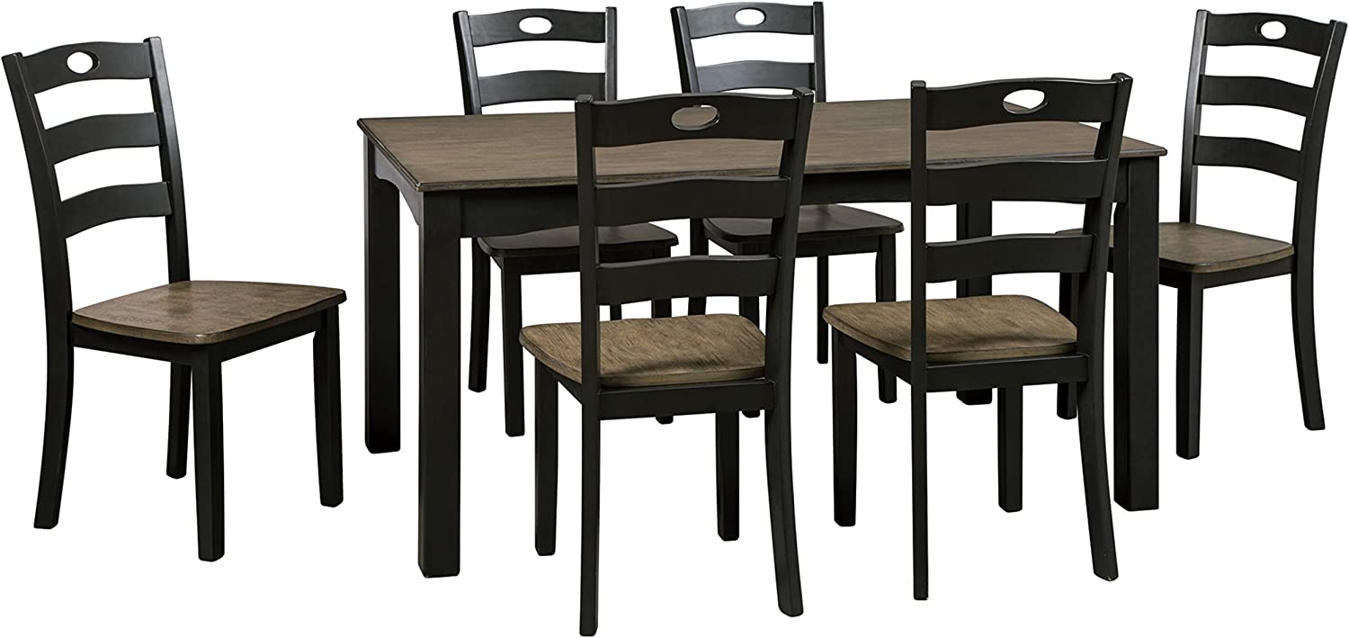 Signature Design by Ashley Froshburg Rustic 7 Piece Dining Set, Includes Table & 6 Chairs, Dark Brown
