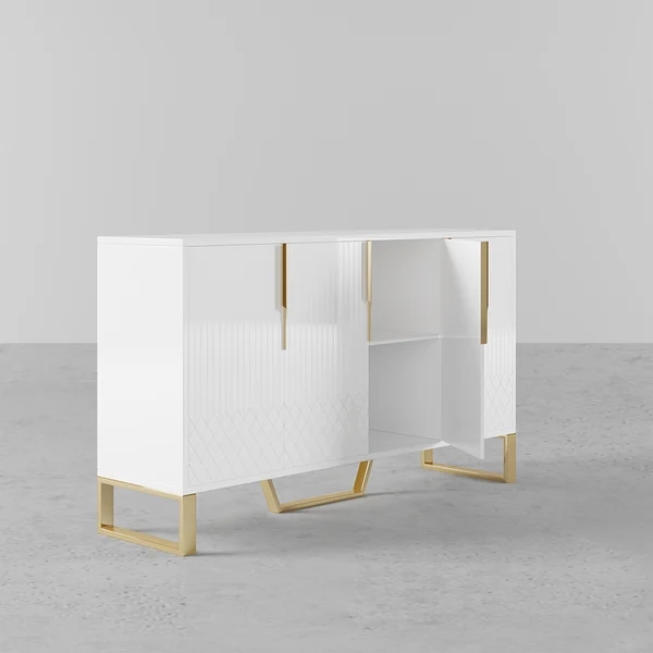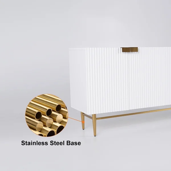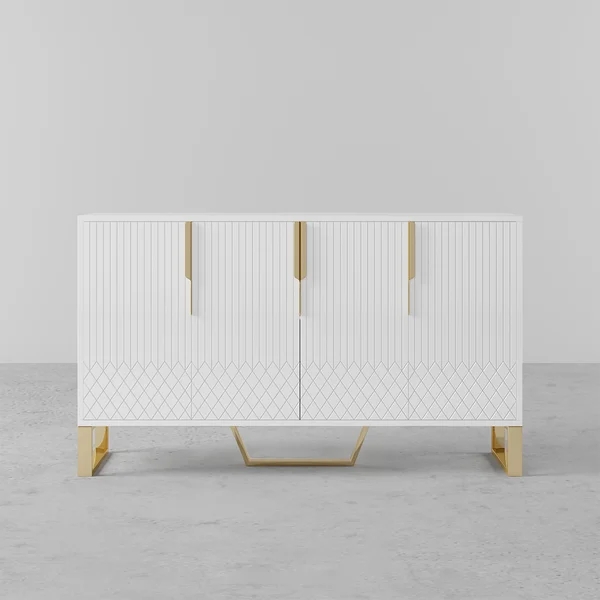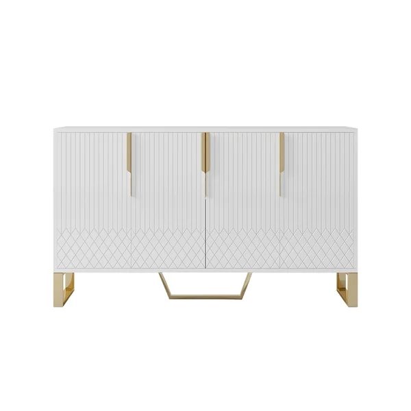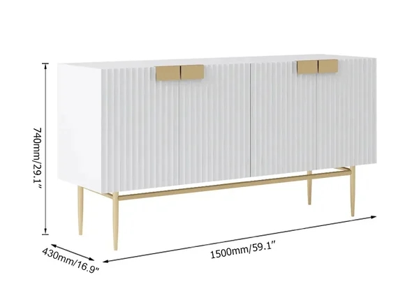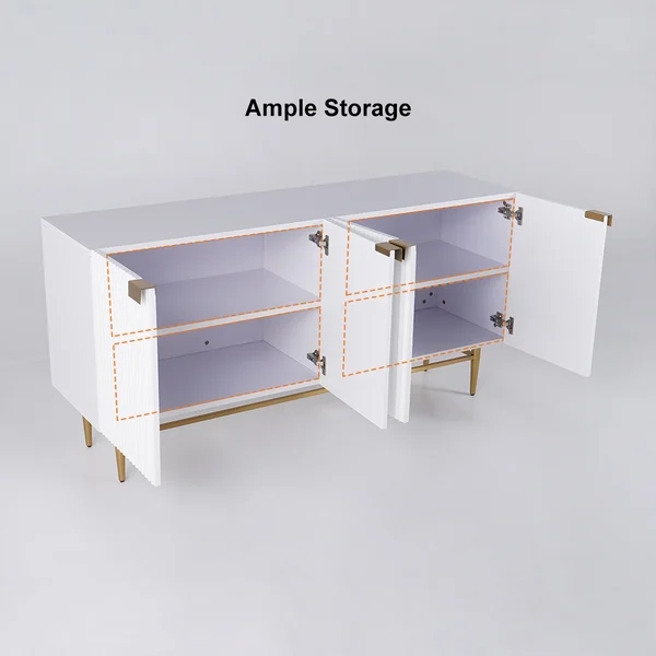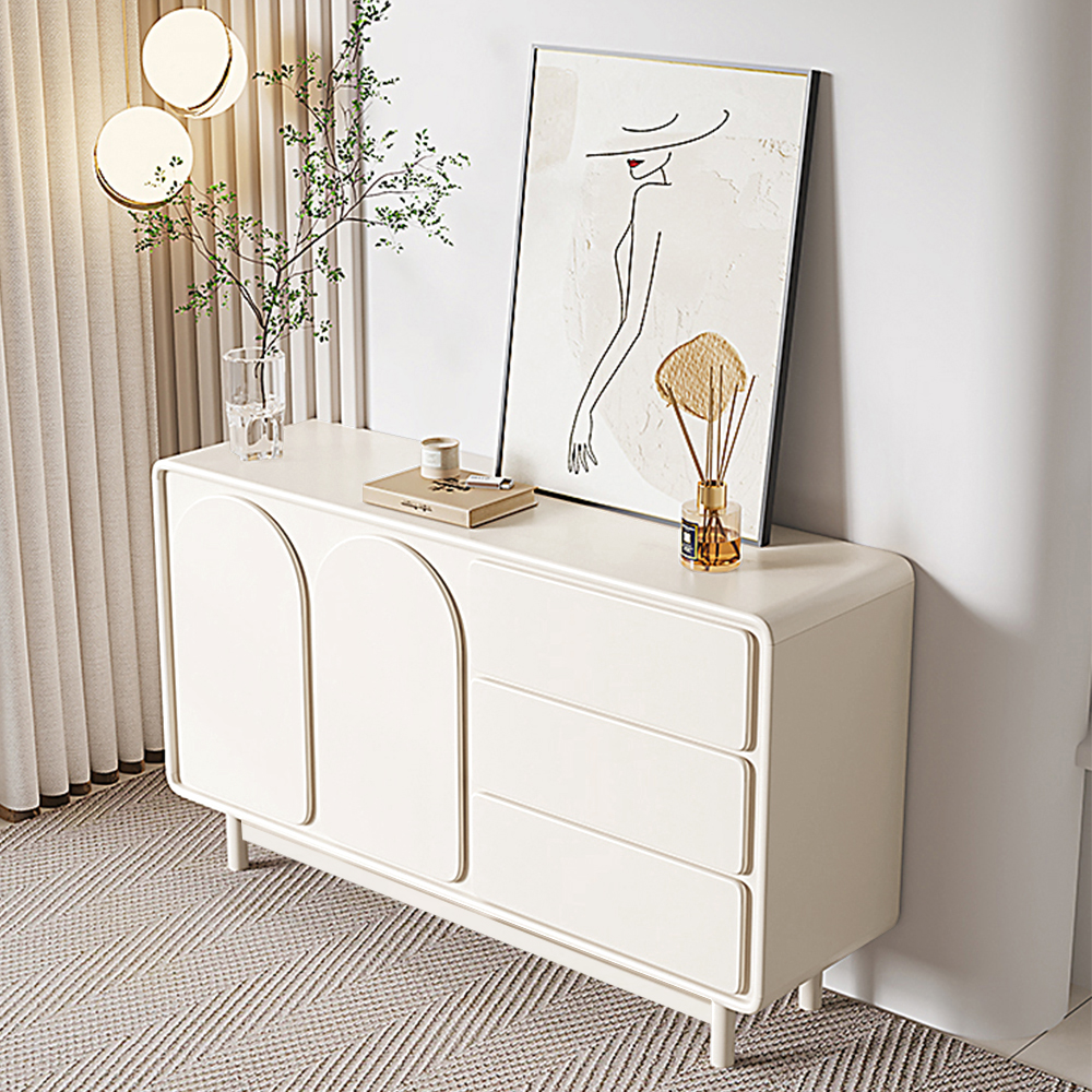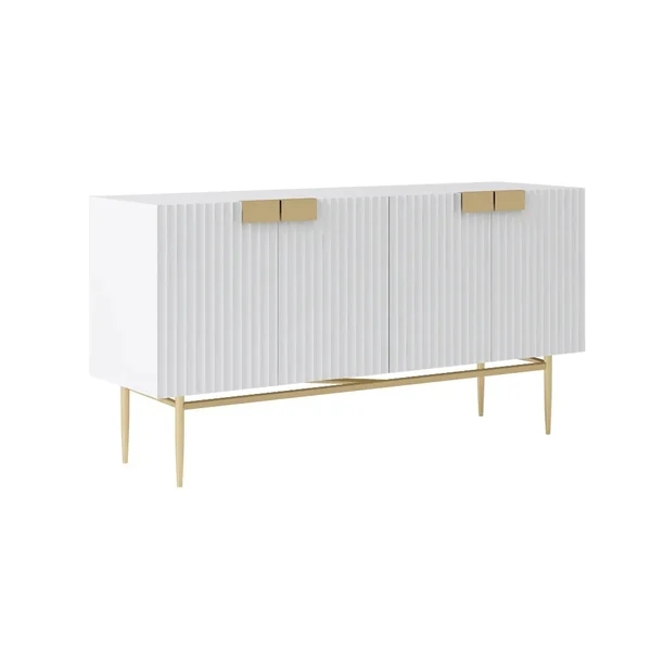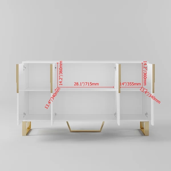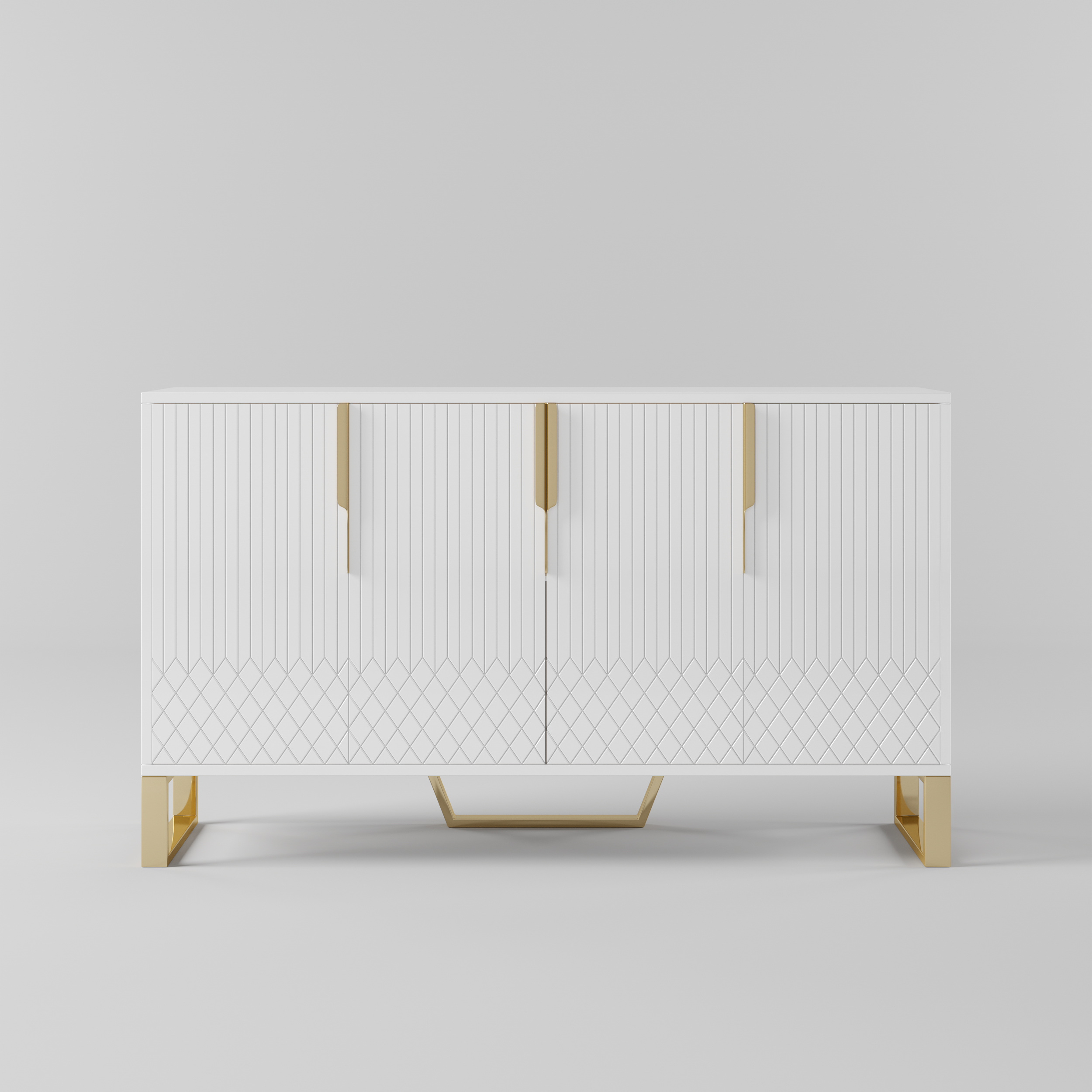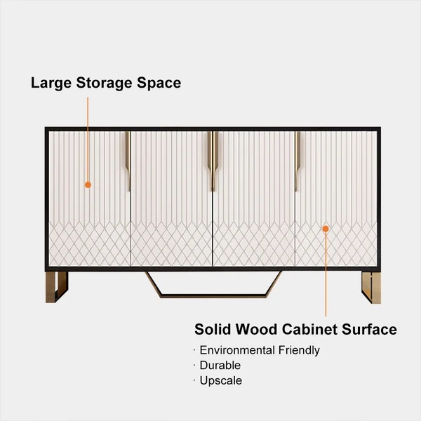 55.12" Modern Sideboard Buffet with Double Doors 3 Drawers, MDF Frame Solid Wood Legs, Assemble Needed, Cream White