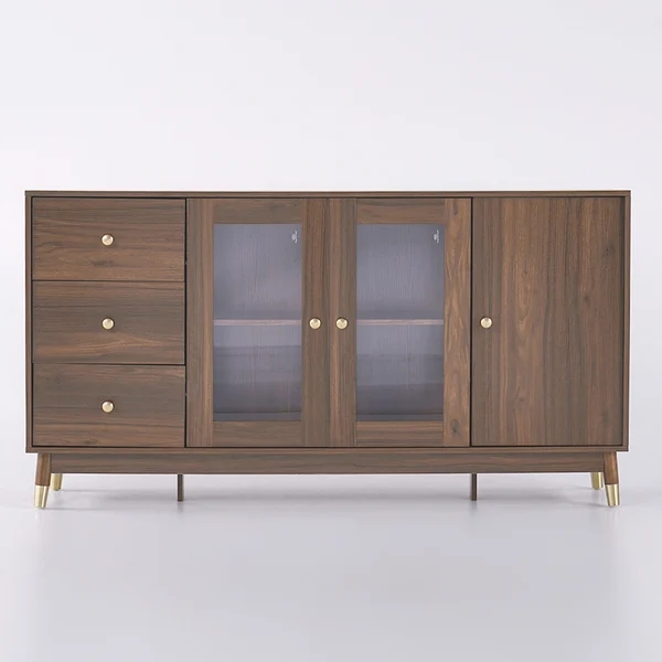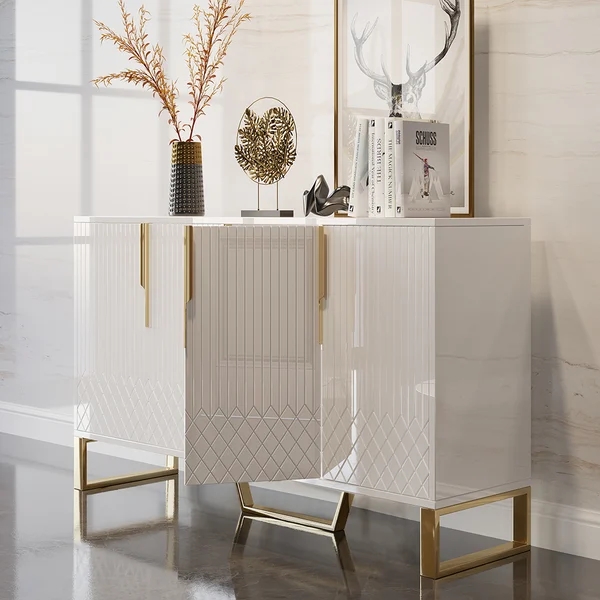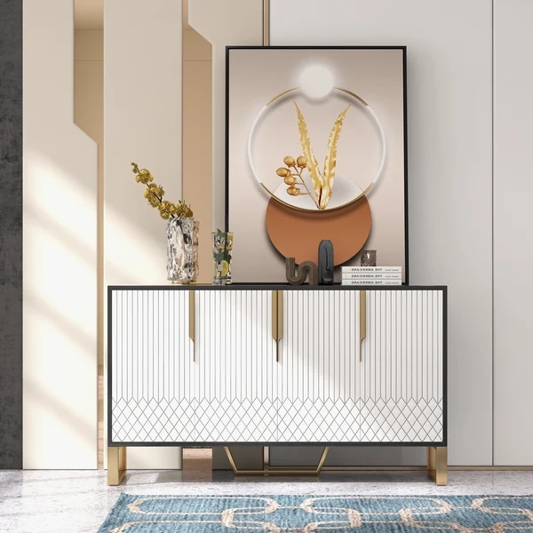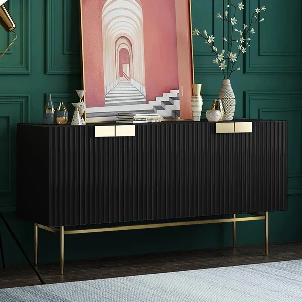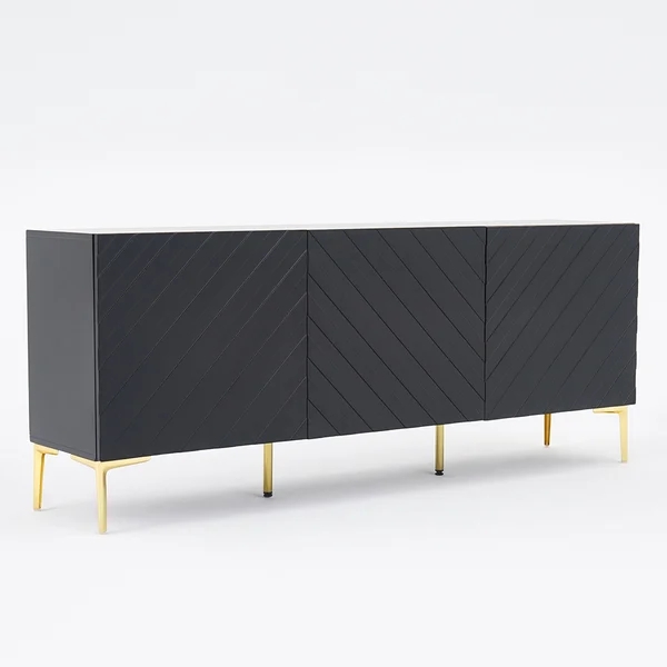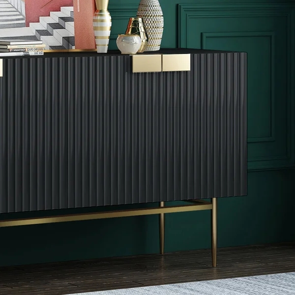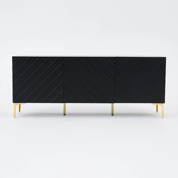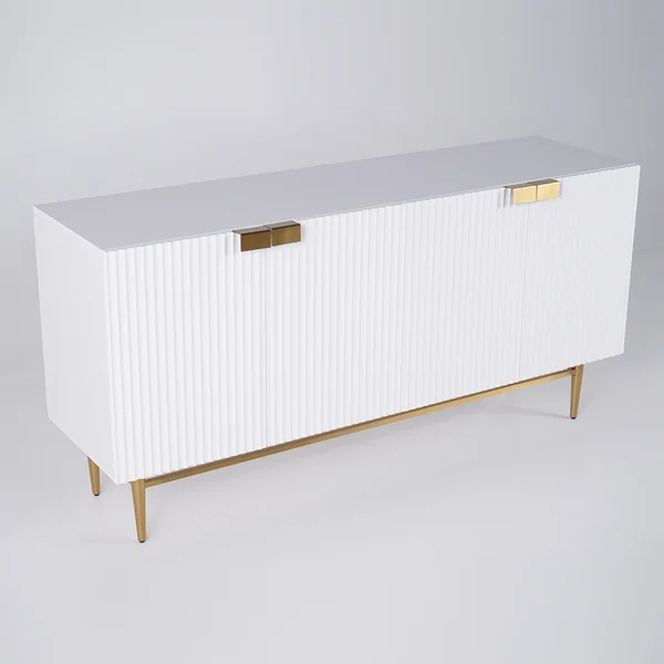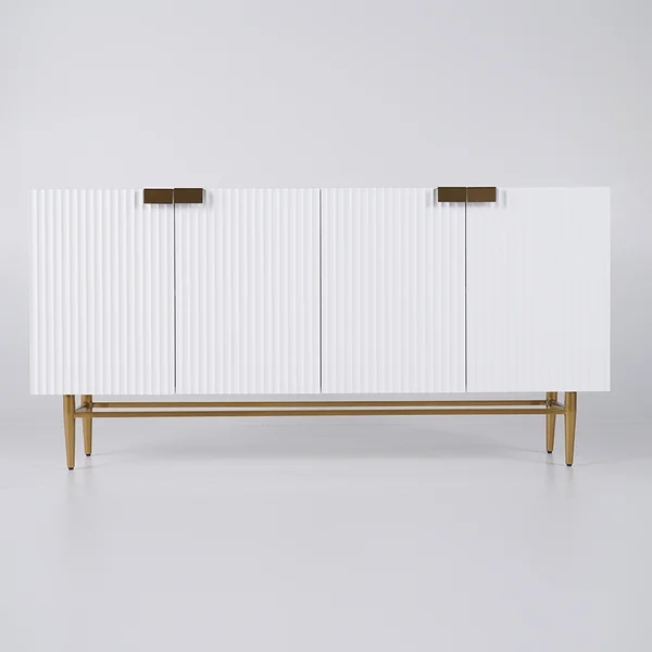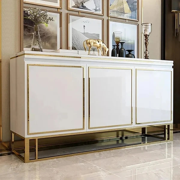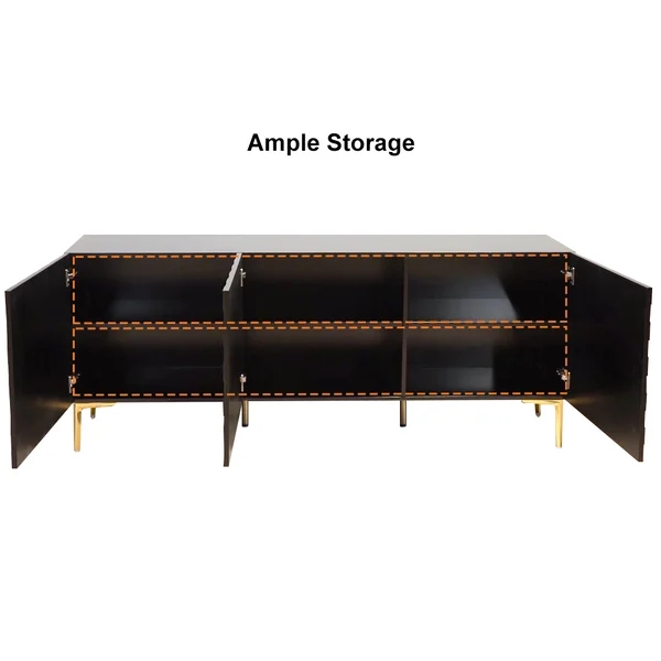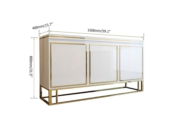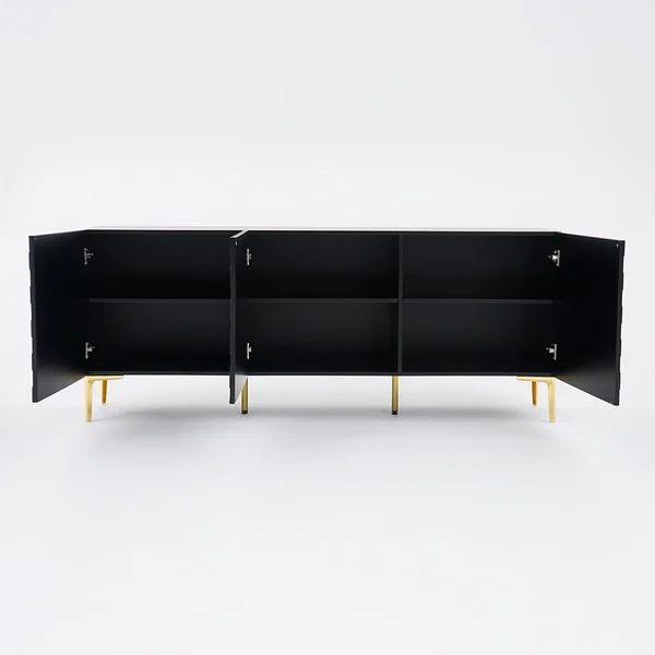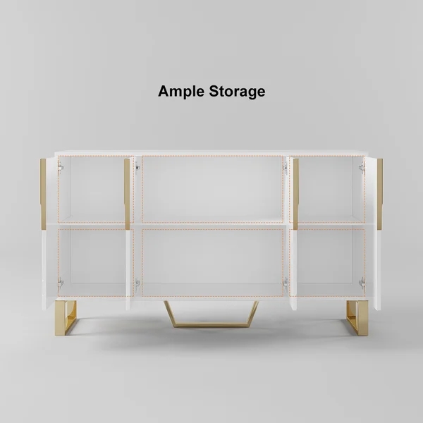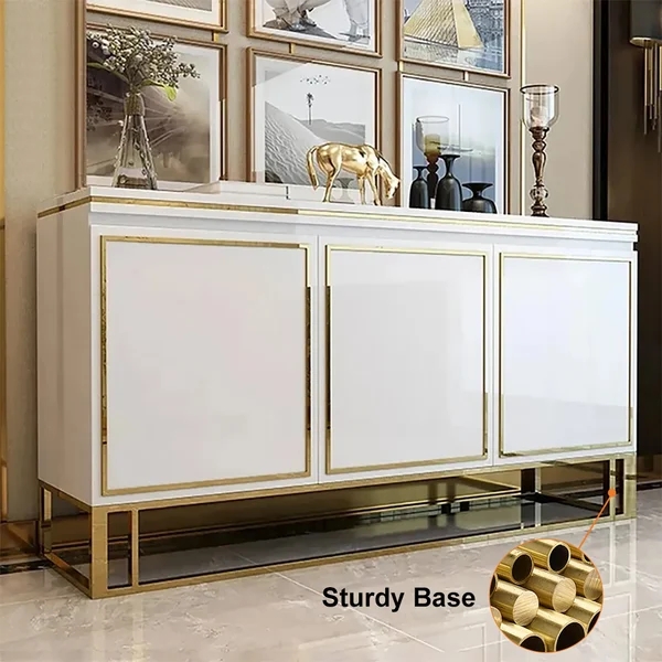 59" Modern Sideboard Sintered Stone Top Luxury Buffet Tempered Glass Doors in Large