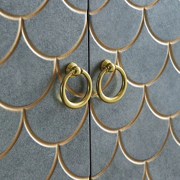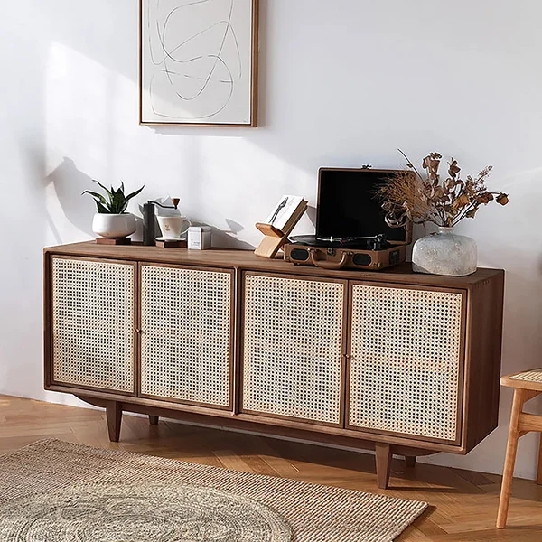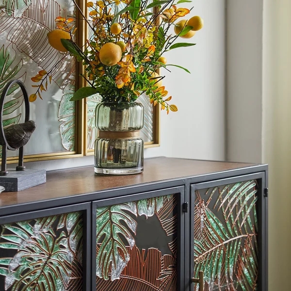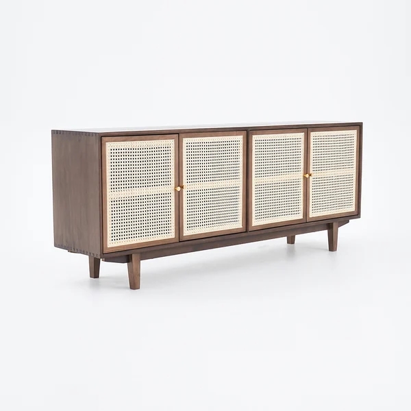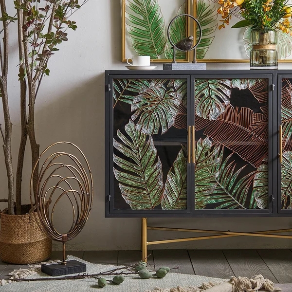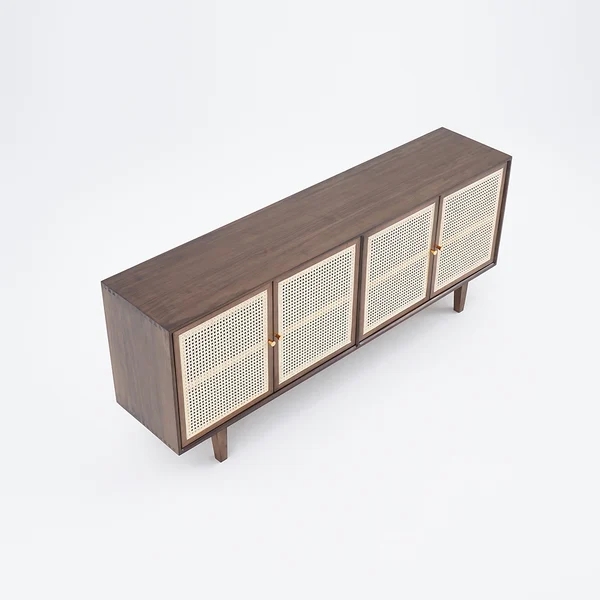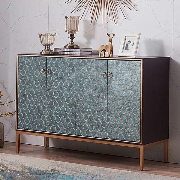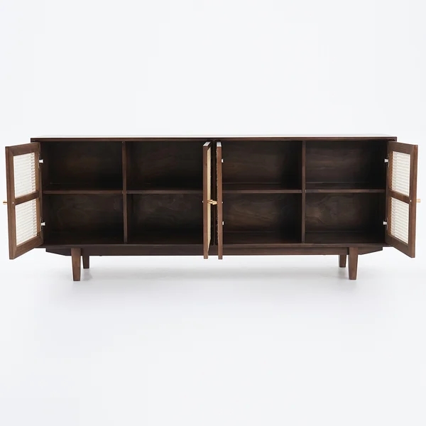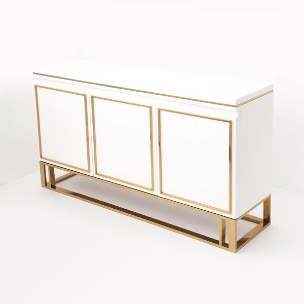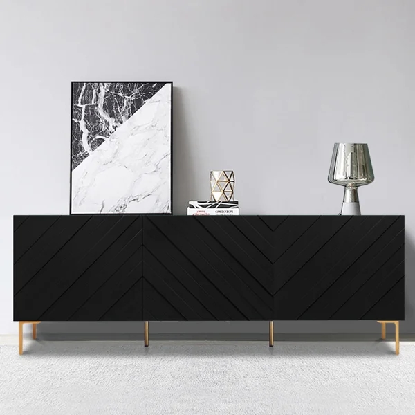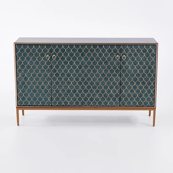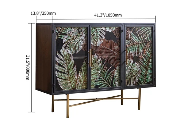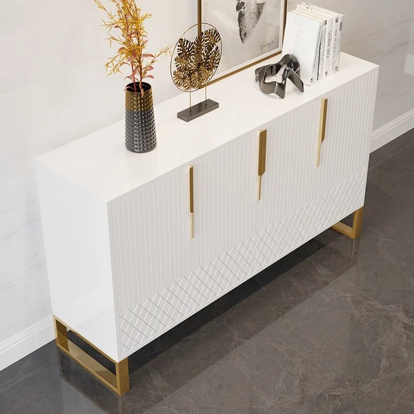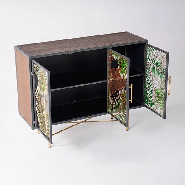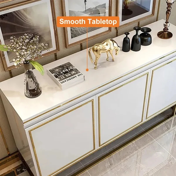 59" Modern Sideboard Sintered Stone Top Luxury Buffet Tempered Glass Doors in Large