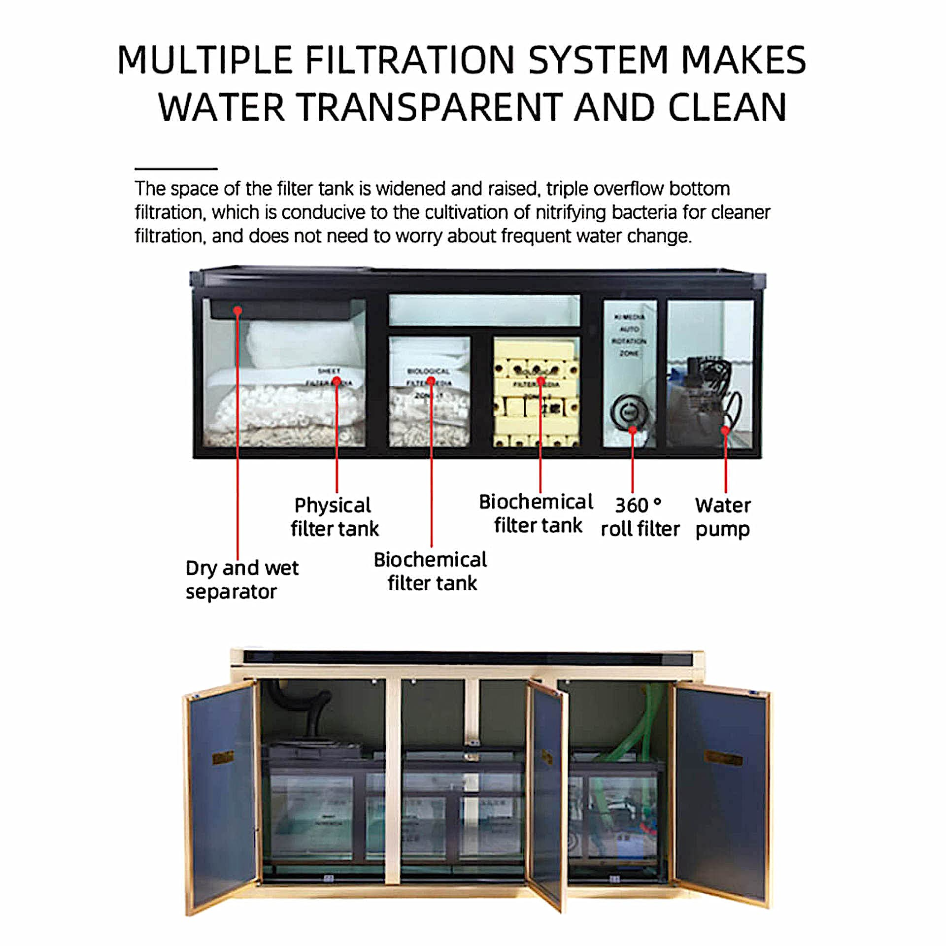 【Pet】170 Gallon Aquarium Fish Tank LED Light Pump Freshwater Filter Upright Fishtank Stand