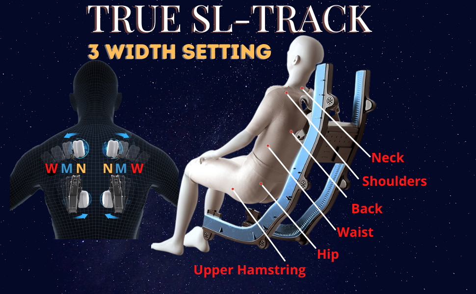 The FR-6KsL is equipped with the latest SL-Track frame design to provide the Ultimate Neck, Back, Waist, Shoulder, Buttocks, and hamstring Massage available.