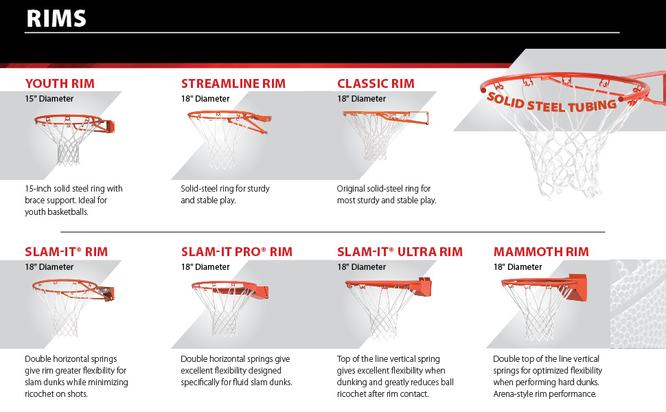 The basketball system comes with a 52-inch-square Shatter Guard backboard made of Makrolon polycarbonate, which is virtually unbreakable and several times stronger than acrylic. When combined with the heavy-duty steel frame and the sturdy steel Y-extension arms, the basketball goal looks and plays just like pro-style glass, with superior rebound effects and terrific stability. The system also includes a three-piece, 3.5-inch round pole with Lifetime's patented pneumatic Action Grip® height mechanism. To change the pole's height--it adjusts from 7.5 to 10 feet in infinite increments--simply activate the Power Lift with one hand and push it to the correct height. And Lifetime knows that dunking and above-the-rim play are a huge part of modern basketball, which is why the basketball goal includes a Slam-It rim. The solid-steel rim features double-compression springs that give way during dunks to protect the player, then spring back once released.