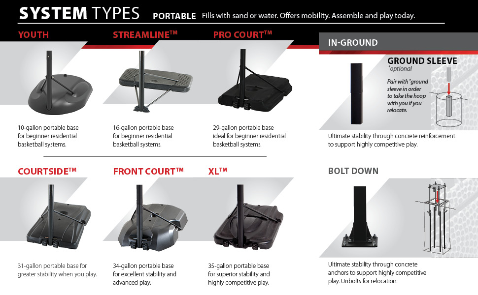 Best bang for your buck. I researched a lot of these. This is a great for adults and young basketball stars in the making. Don't bother dumping a ton of money into a portable glass setup. If you want glass board I recommend getting a permanent solution. For the most part I put this together all by myself. There were a few times I needed my wife's hand to hold something steady. Instructions were super easy to read. Having the right tools makes a difference. With all that being said it took me about 3-4 hours to get this done. Once you are done, move the setup near to where you want to have it stand before you fill the base with sand. Once you flip it, it will take at least 2-3 strong guys to tip it to move again. I highly recommend using sand. A few of my neighbors put water in theirs (different brand and model) and in one the water evaporated over time, and in the other the water became ice and cracked the base open in the winter. When the winds blew, it wrecked both of them as there was no weight to hold it from tipping. Lucky for them it happened in bad weather and not when their kids were playing on it. Sand is the best way to go as it is not going to evaporate or cause damage to the base. Take a 2-Litter pop bottle, cut it in half, and use mouth side down as a funnel to pour the sand it. Makes it quick and easy.
